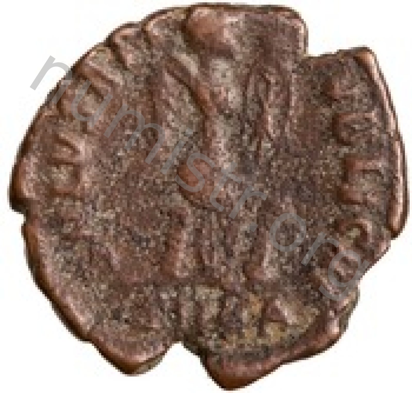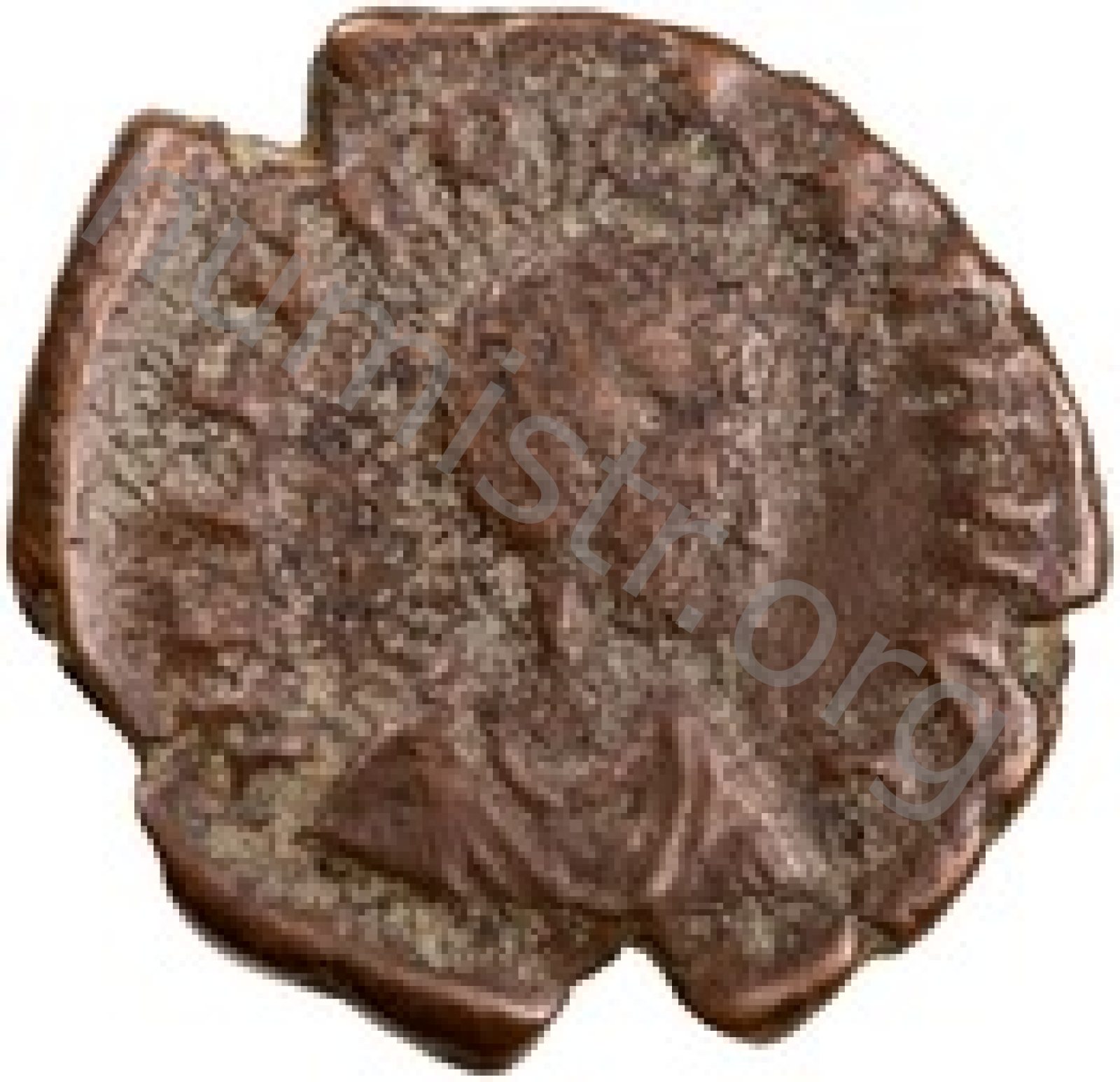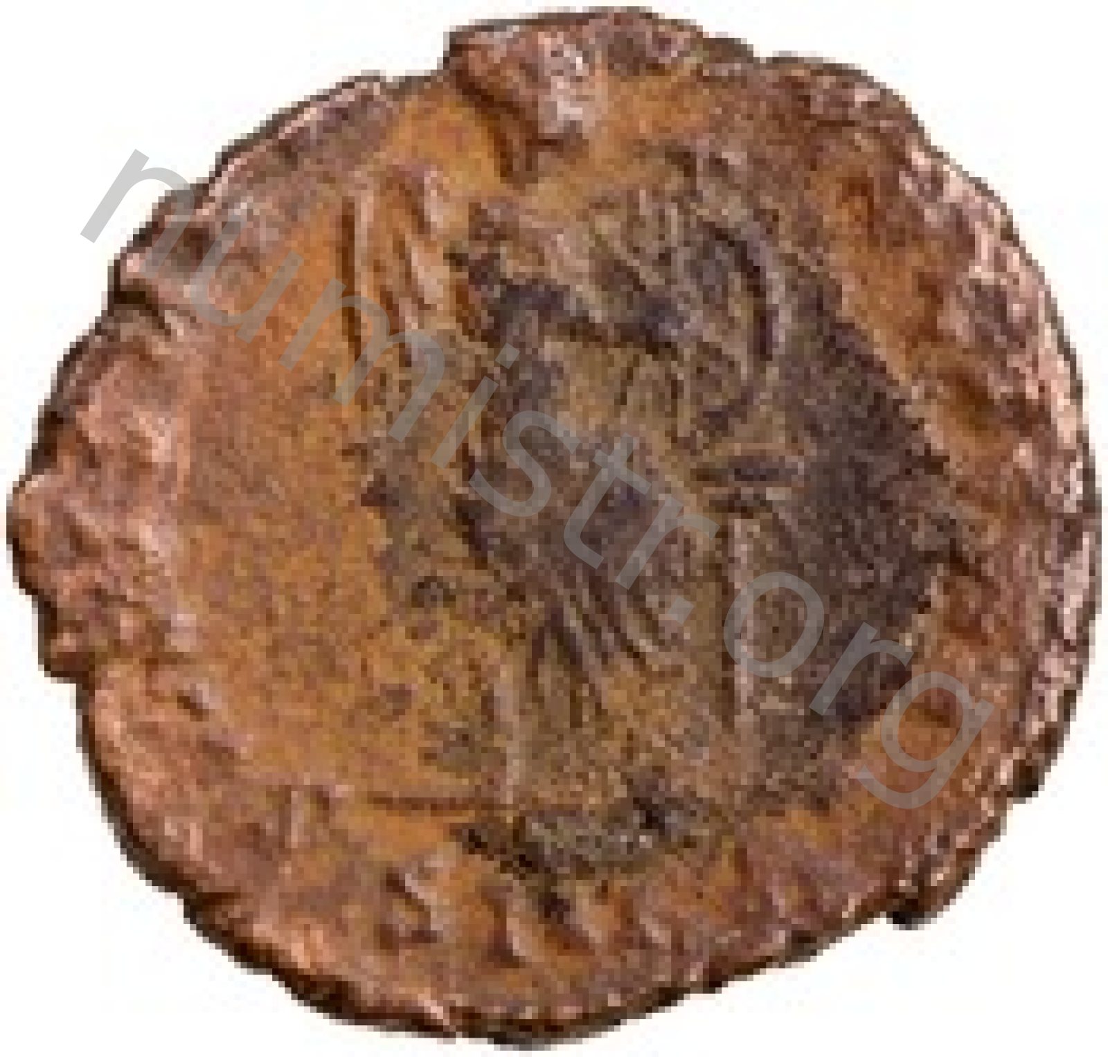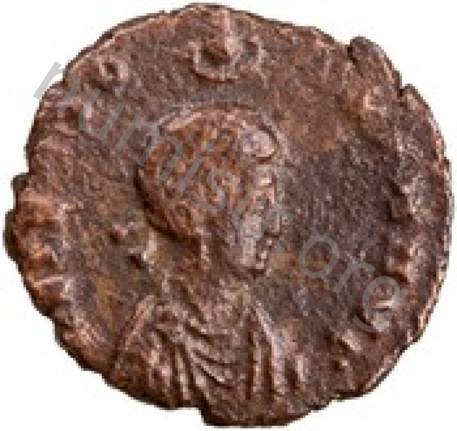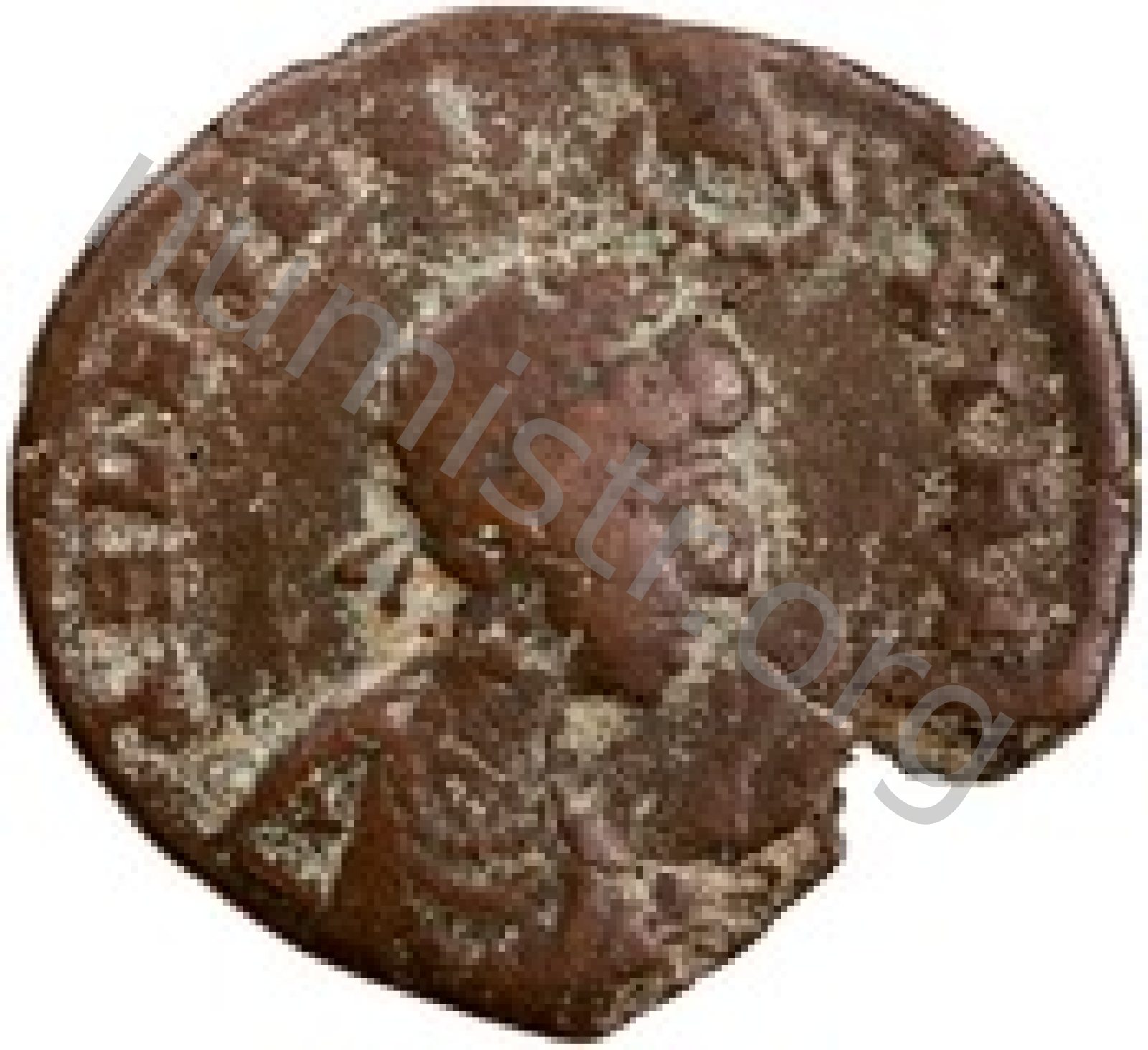 Bust of Eudoxia pearl-diademed draped right wearing necklace and earrings crowned by Hand of God -[en]