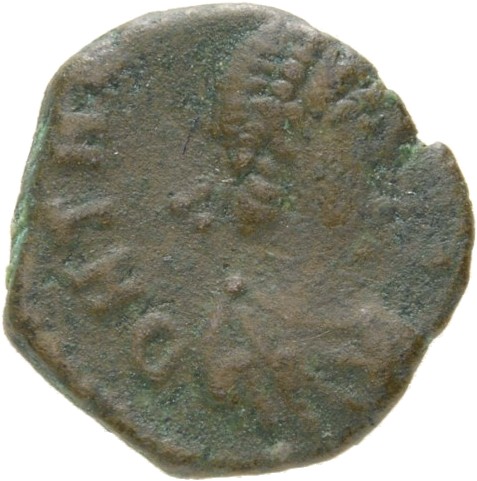 II. Theodosius'un inci taçlı zırhlı ve sağa bakan büstü