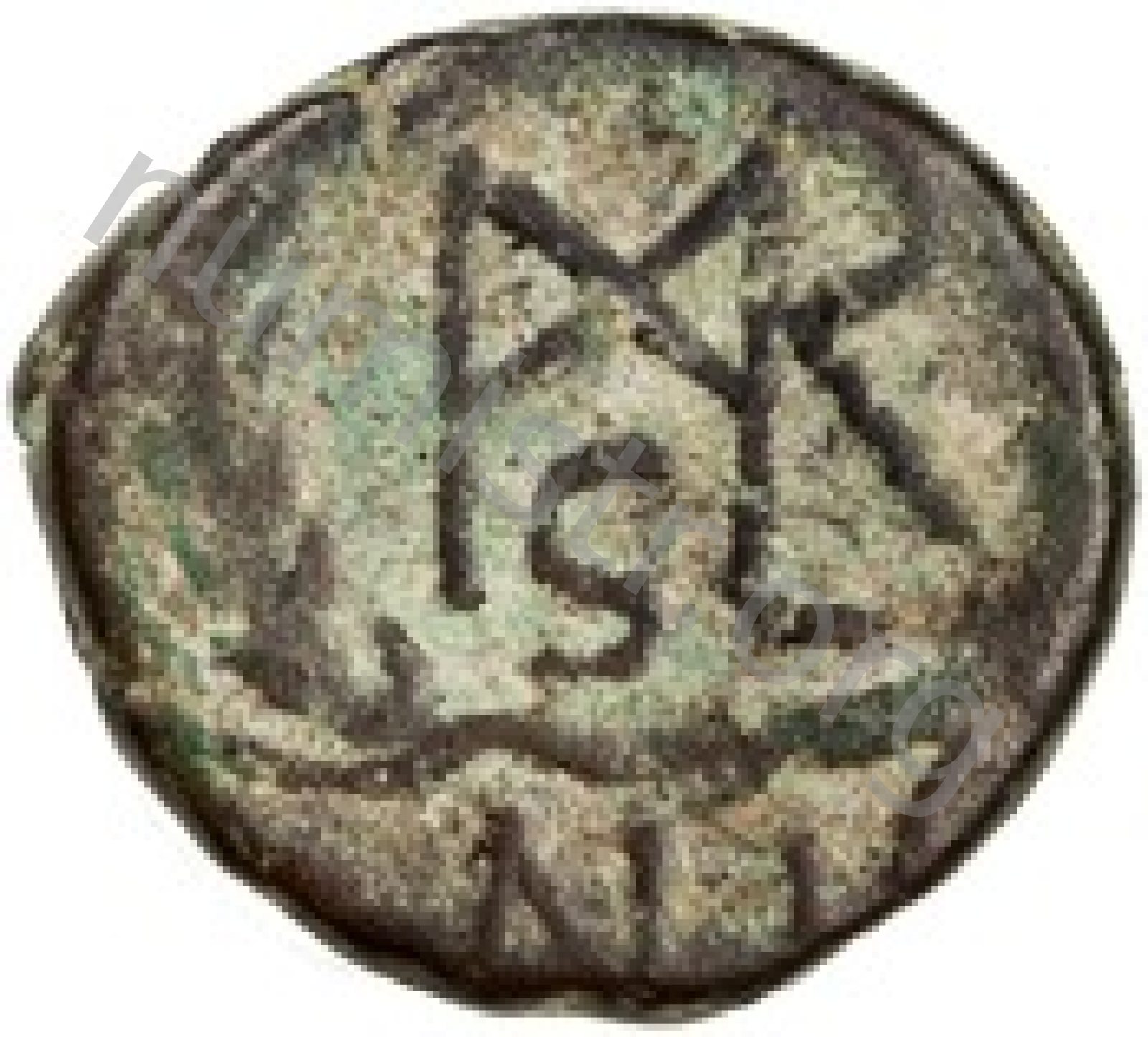 Marcian monogramı 2 tam çelenk içinde + yukarıda