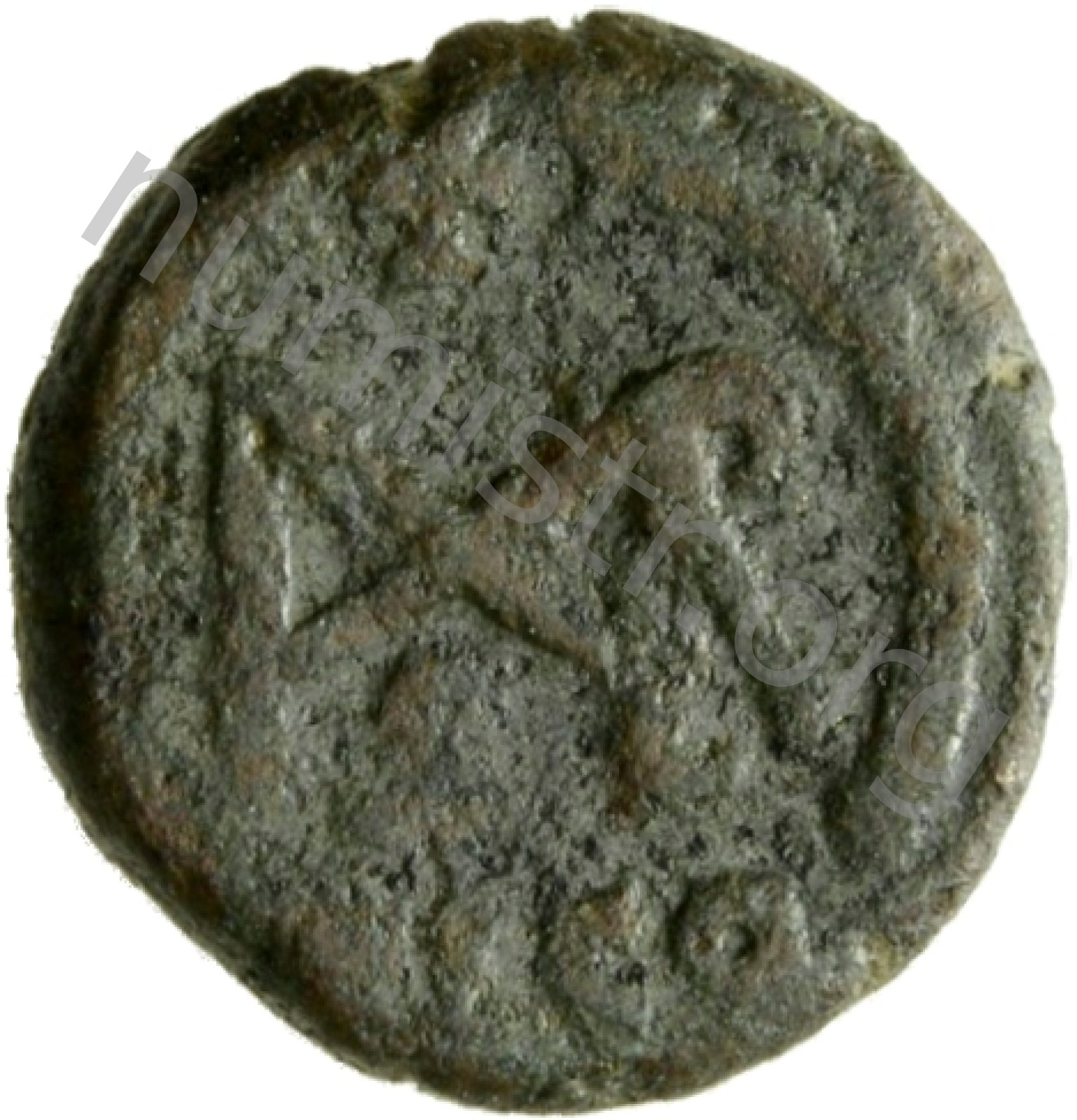 Darphane işaretiyle kırılmış çelenk içindeki Marcian monogramı 2 + yukarıda