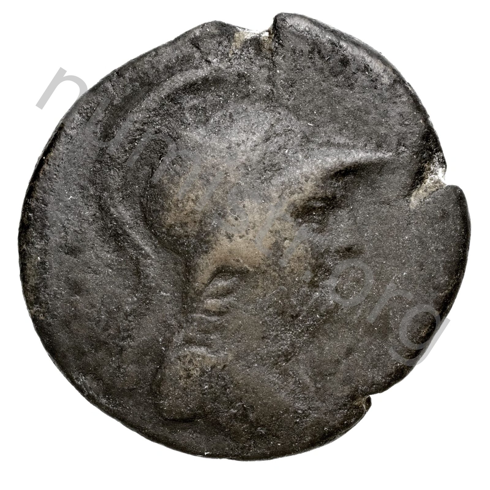 Bust of Athena wearing a crested Corinthian helmet and an aegis -[en]