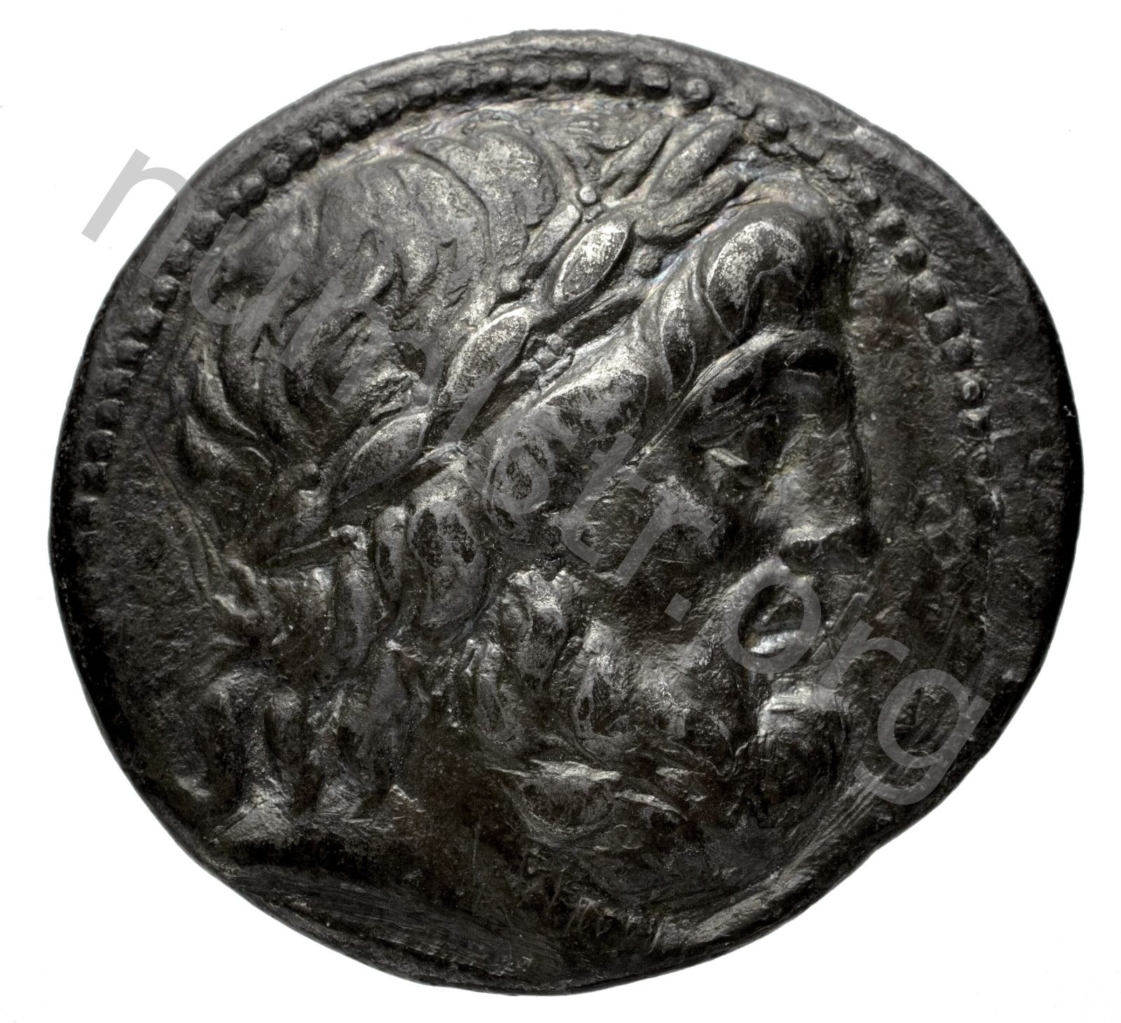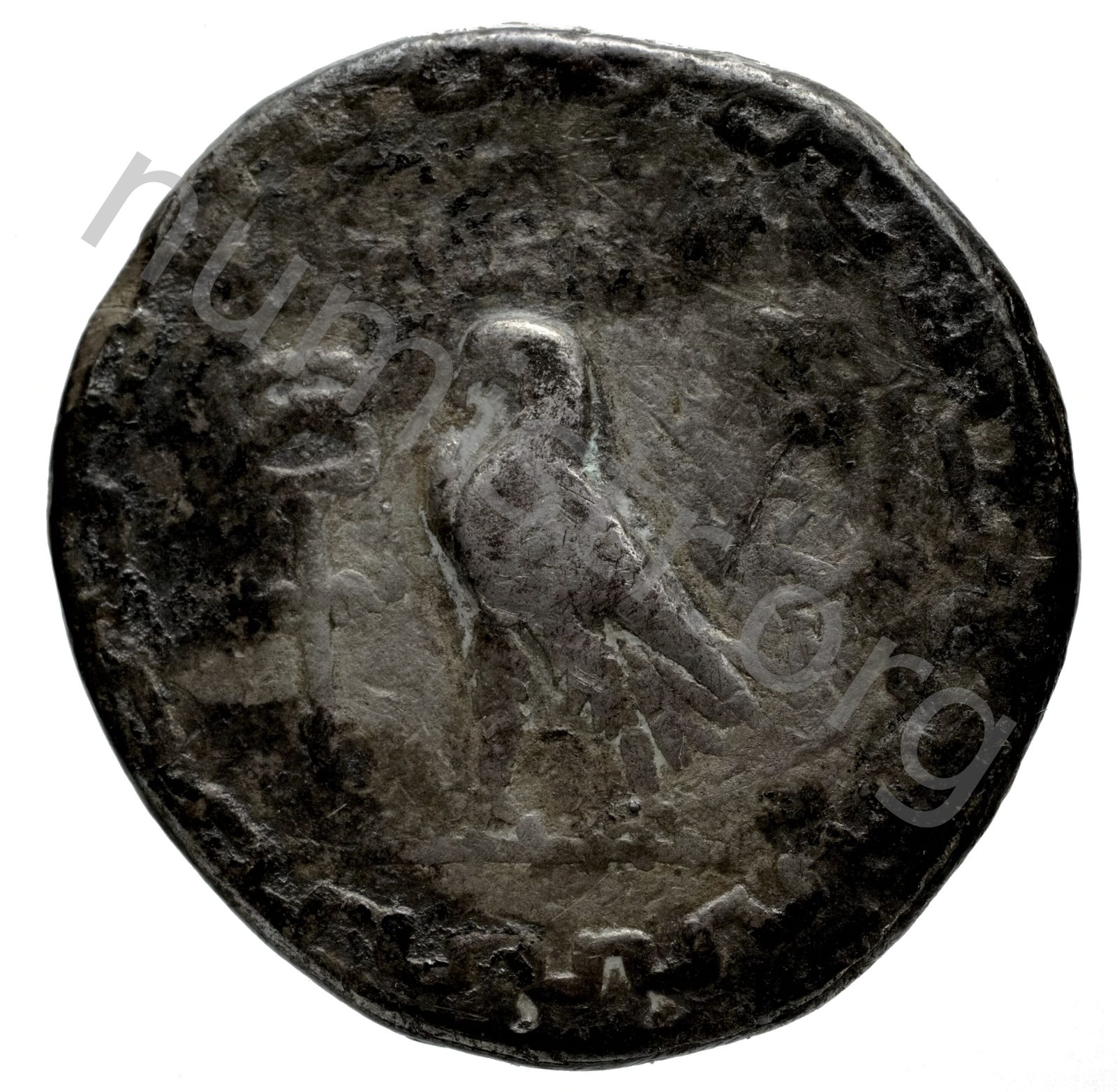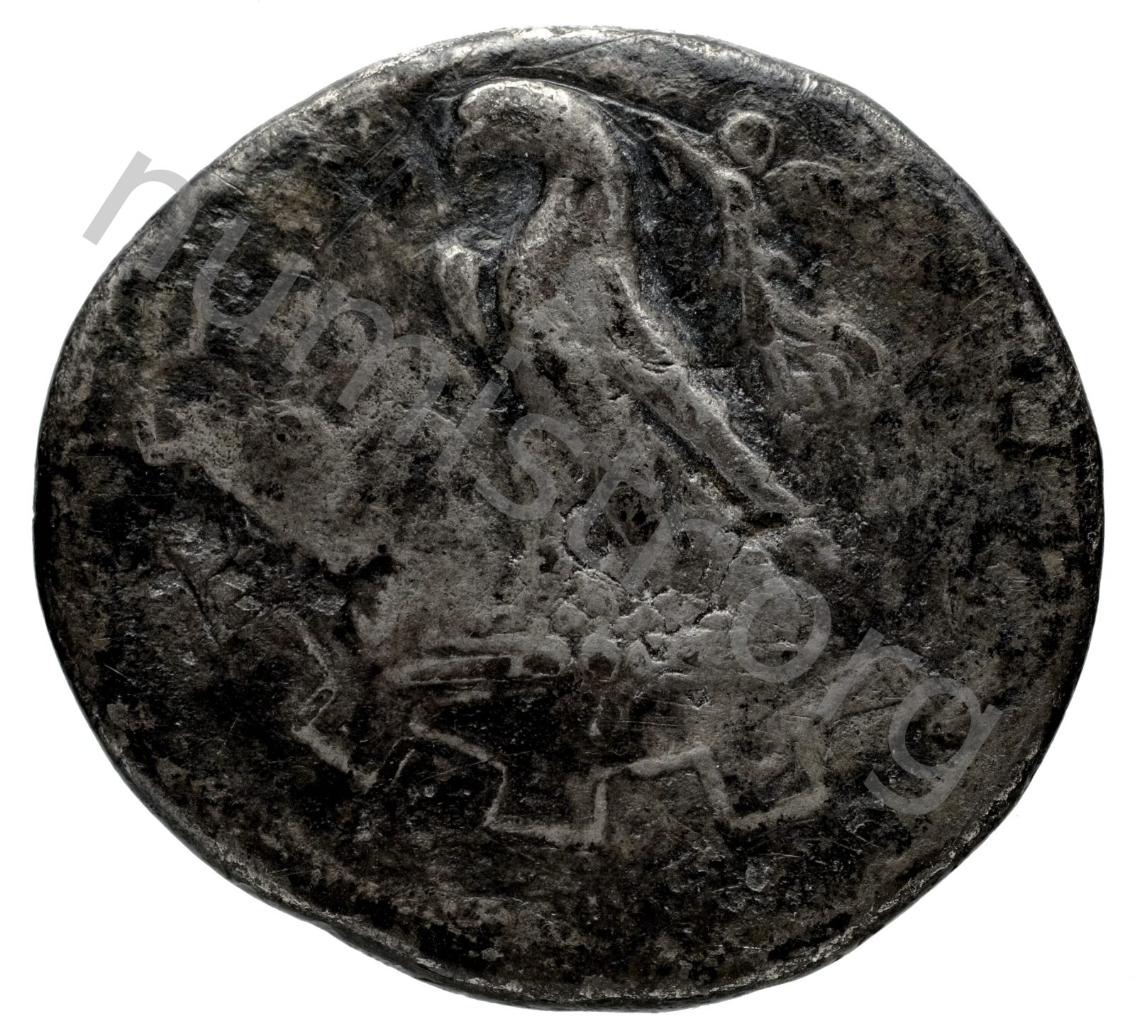Eagle standing on a thunderbolt; meander pattern around -[en]