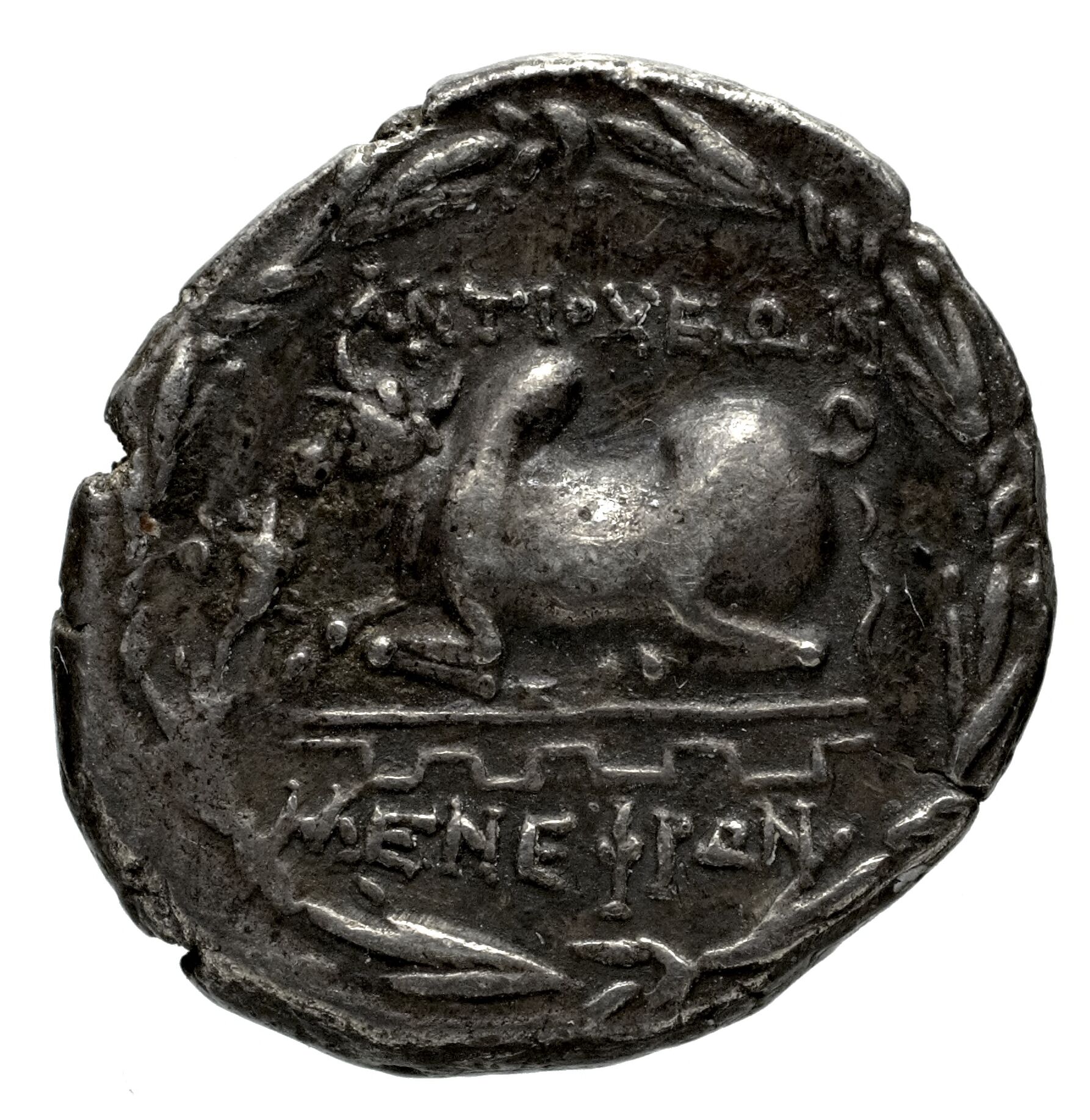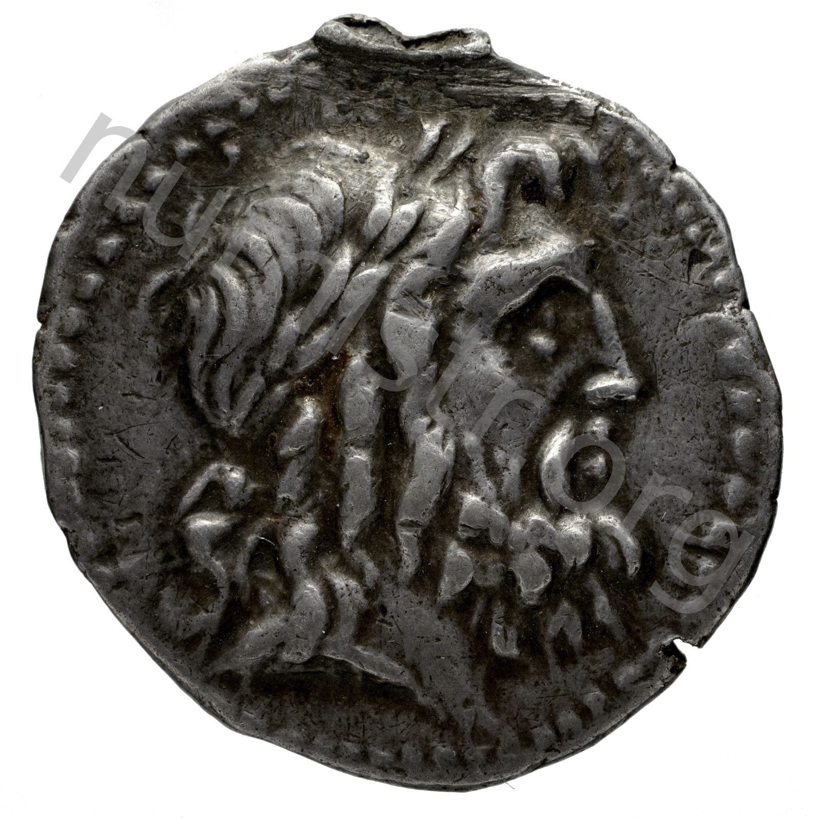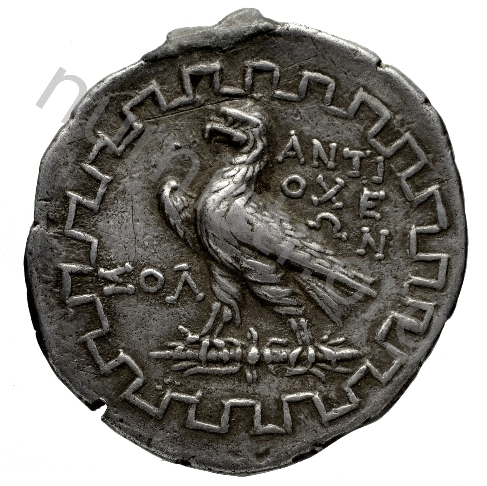 Eagle standing on a thunderbolt; meander pattern around -[en]