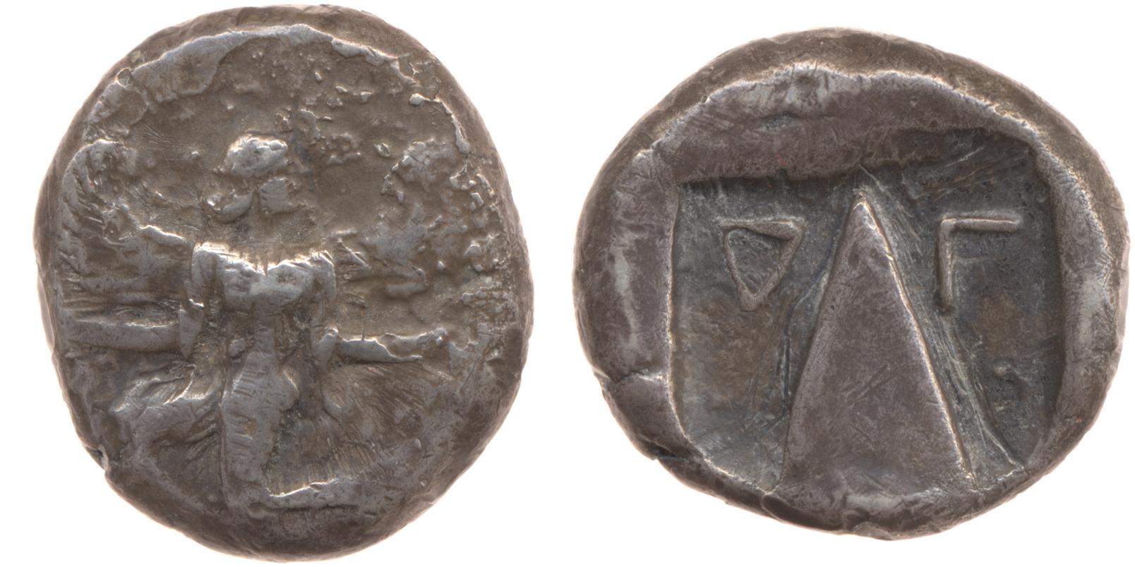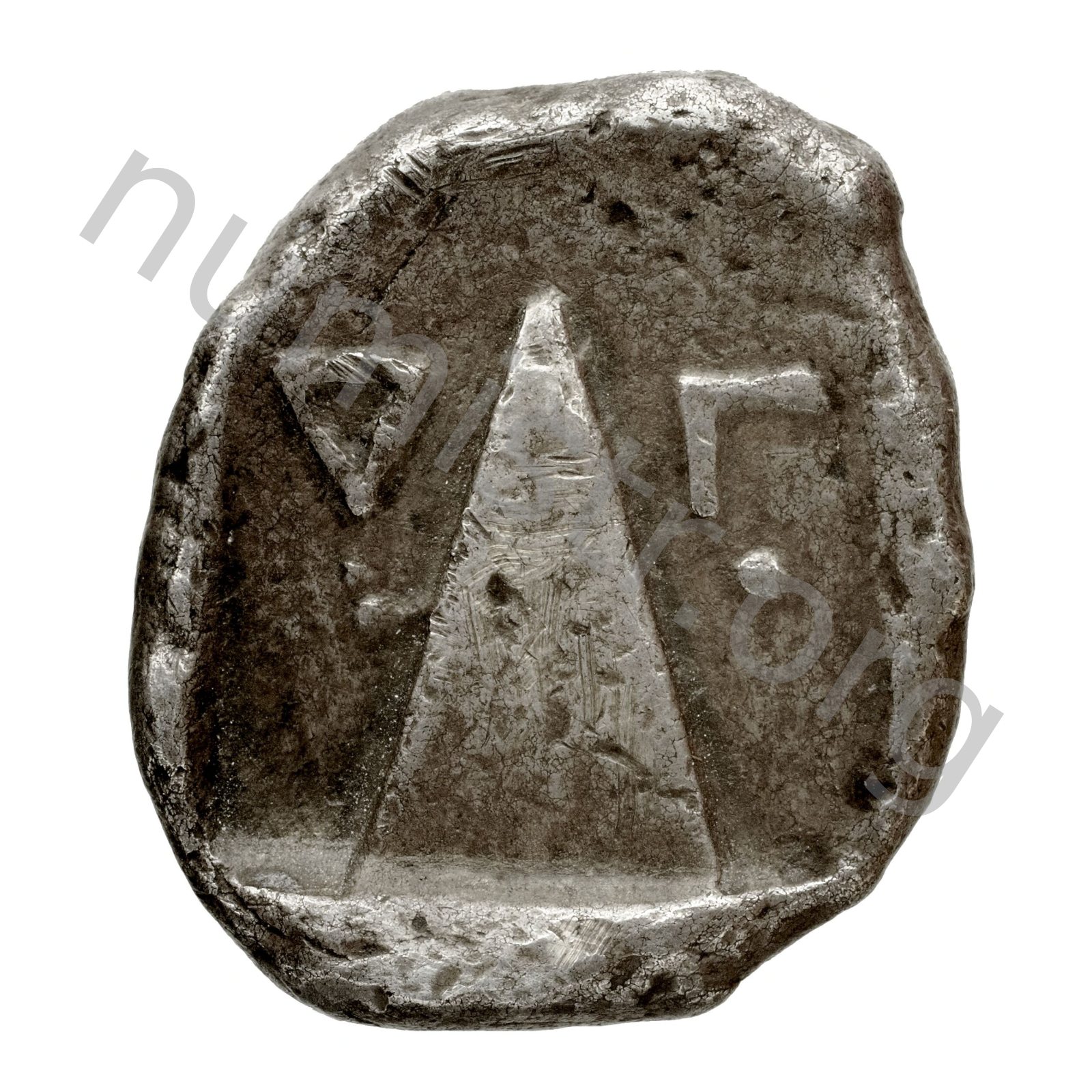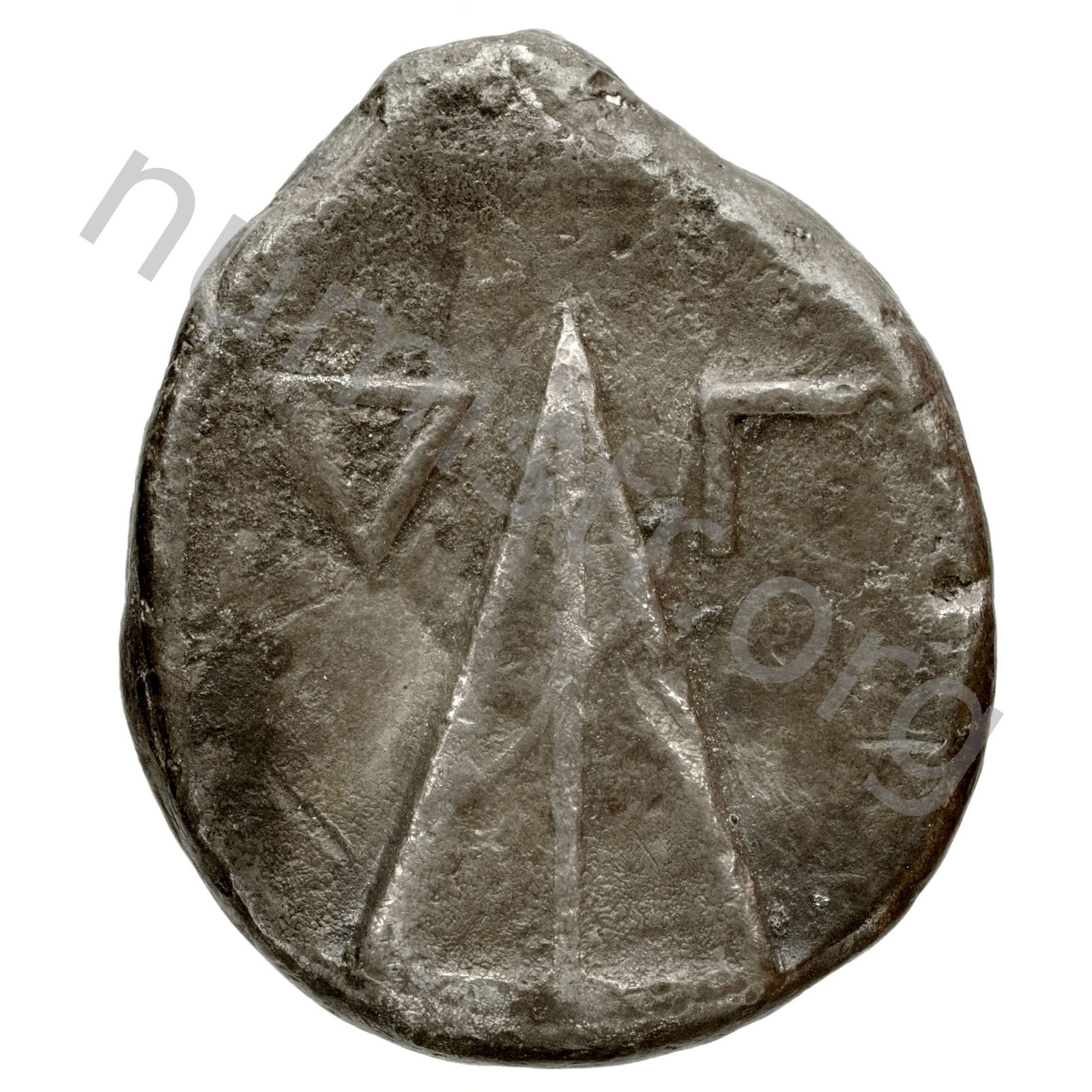 Baetyl decorated with a globule in an incuse square; legend -[en]