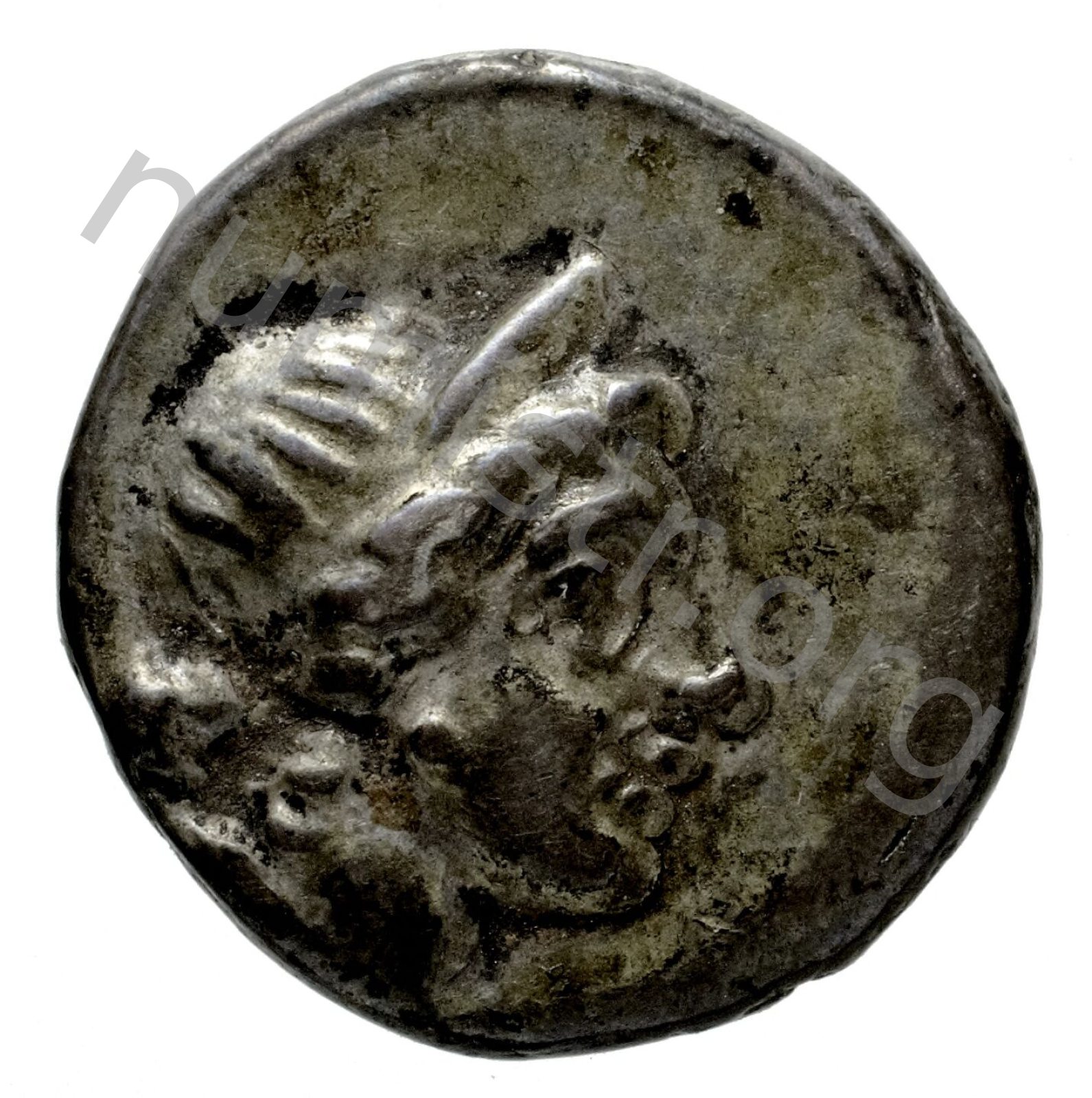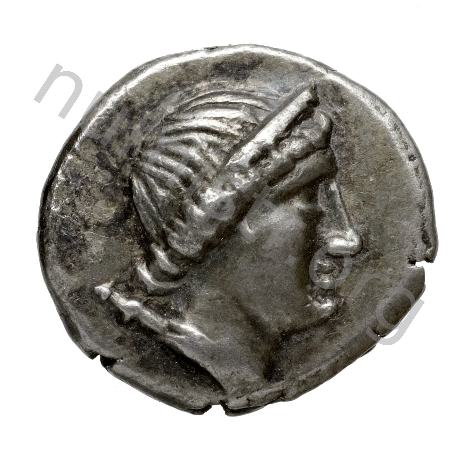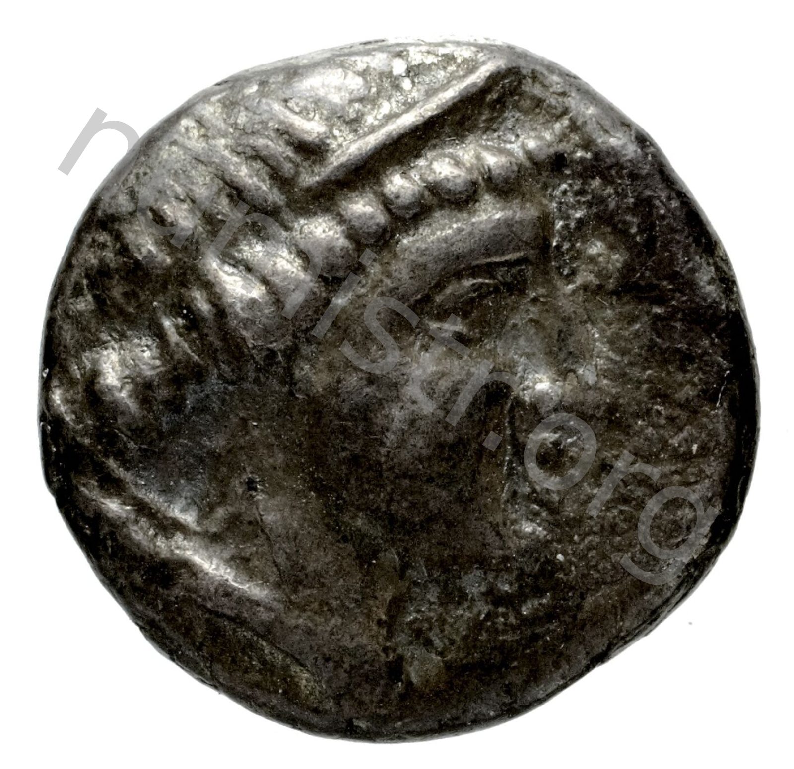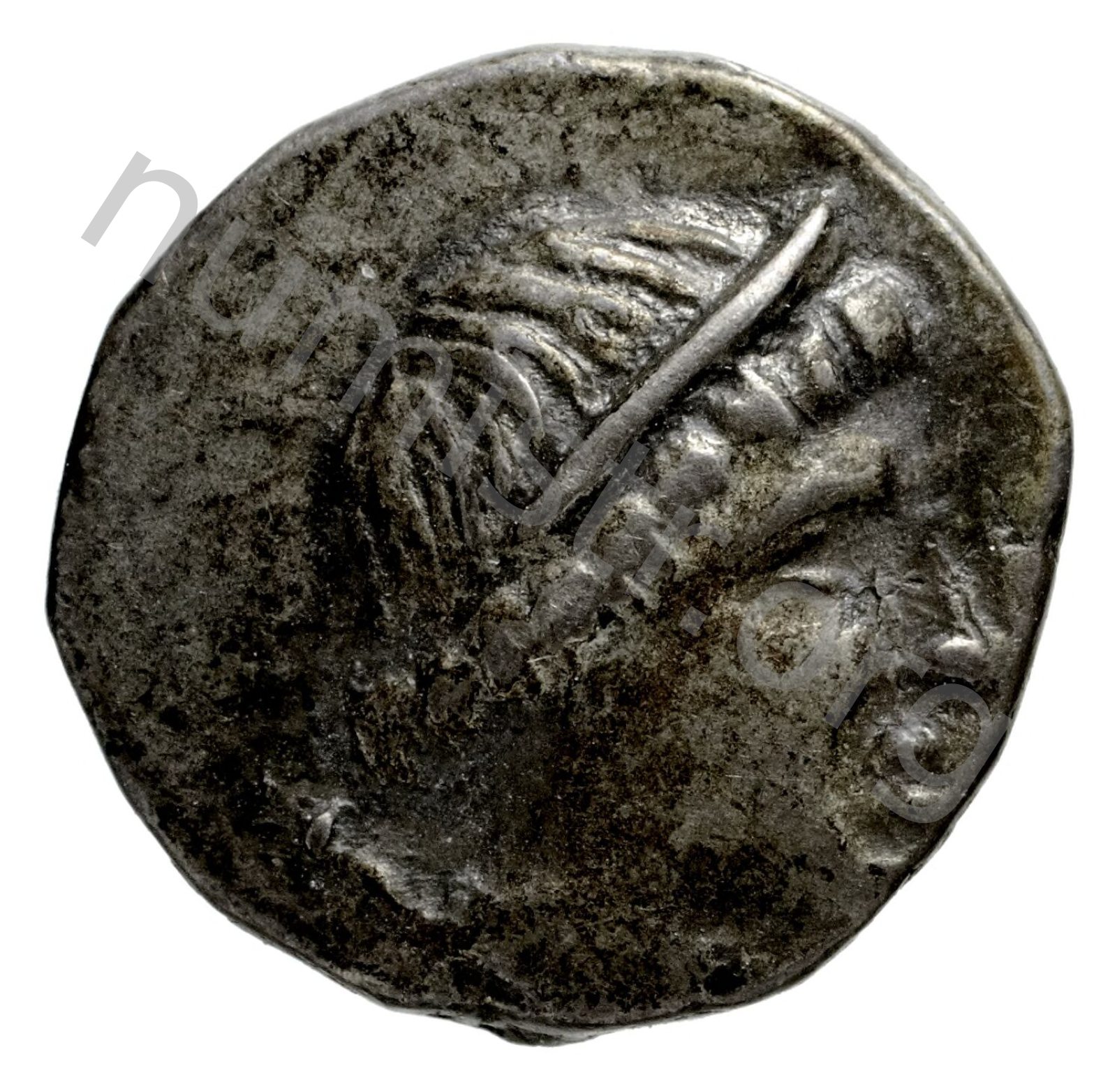 Head of Artemis wearing a stephane (crown); in the left field quiver -[en]