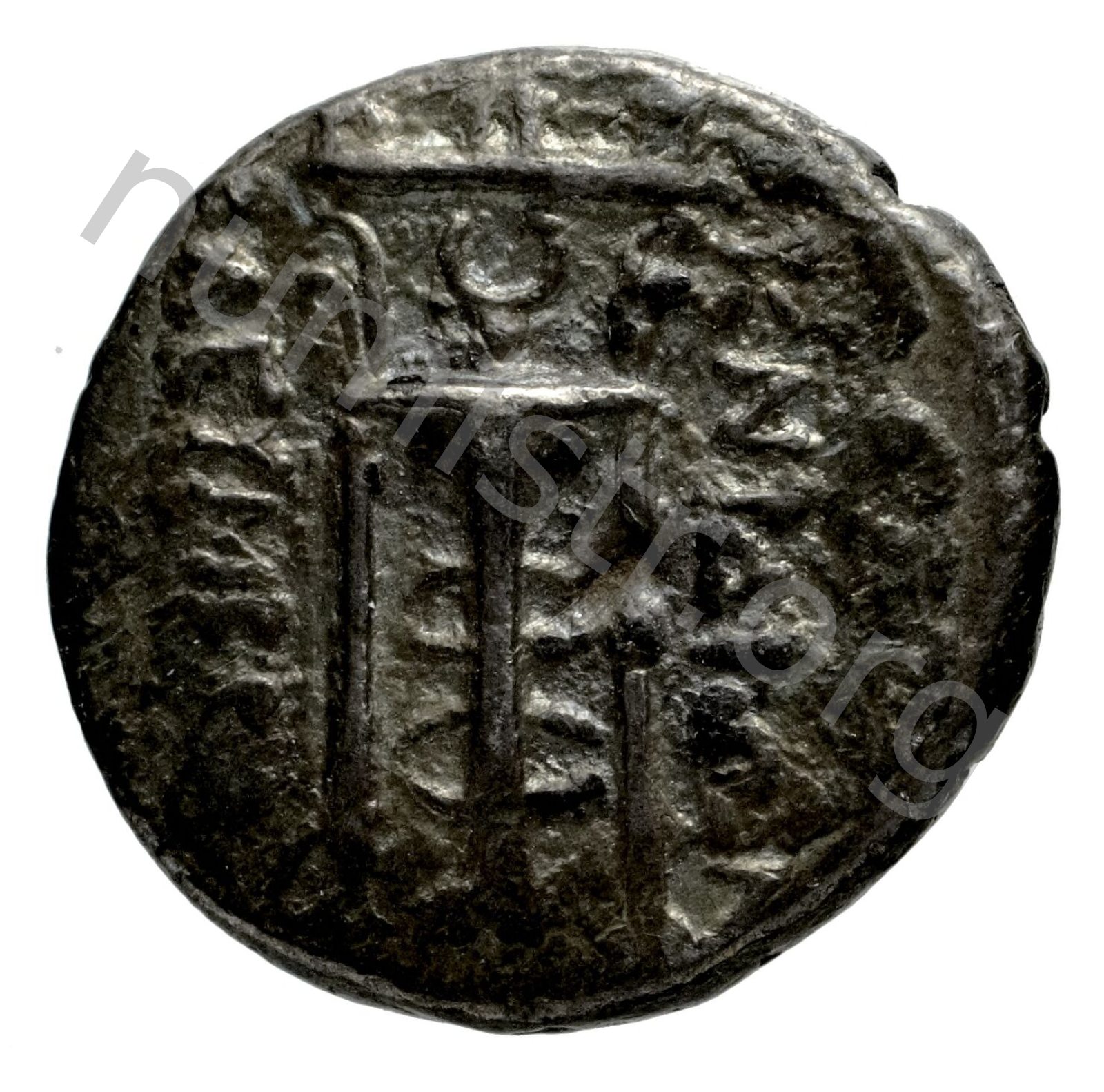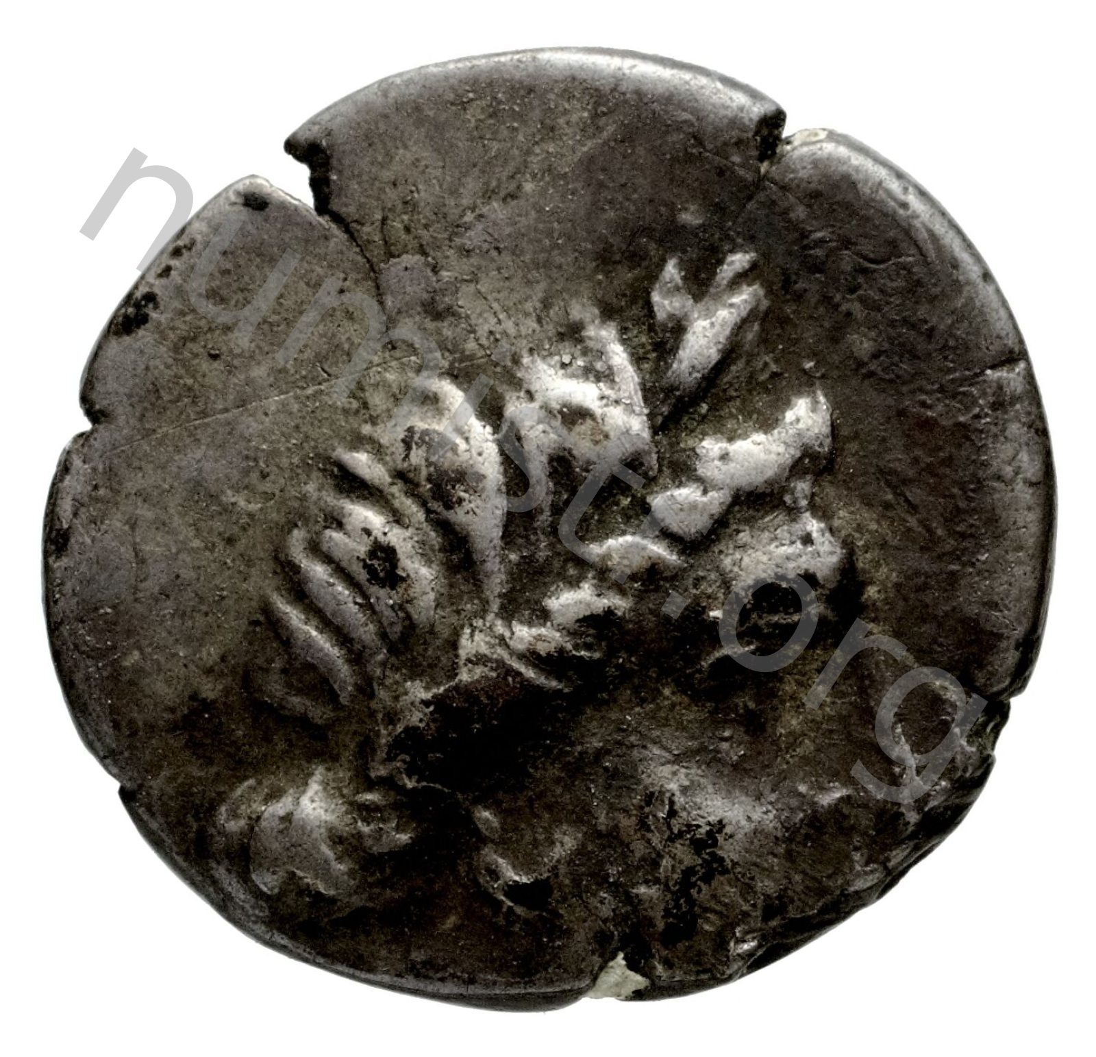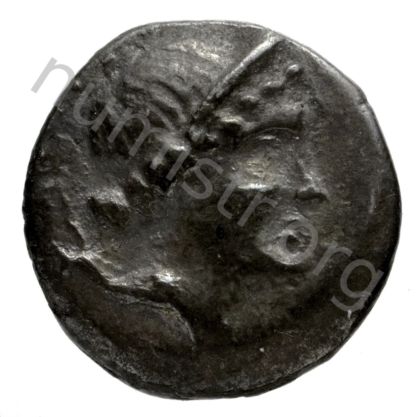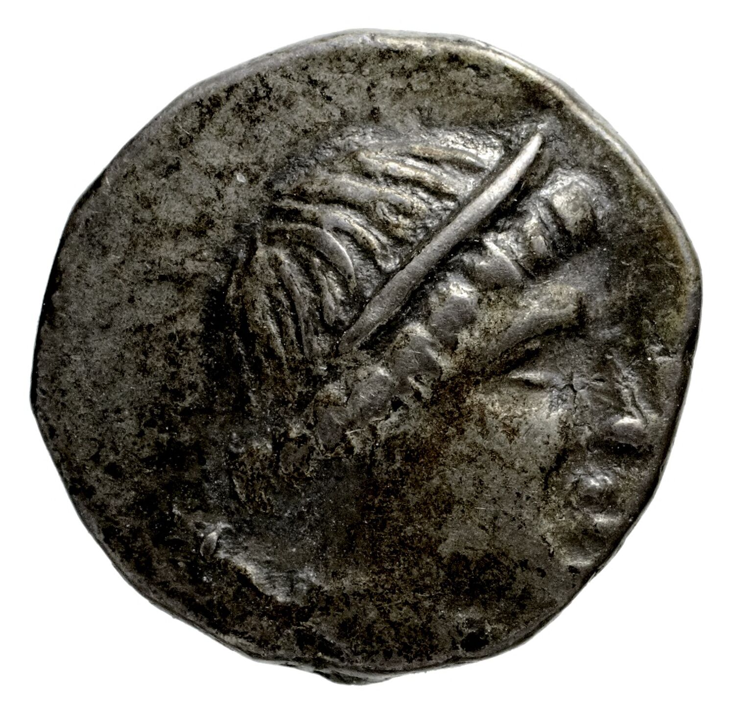 Head of Artemis wearing a stephane (crown); in the left field quiver -[en]
