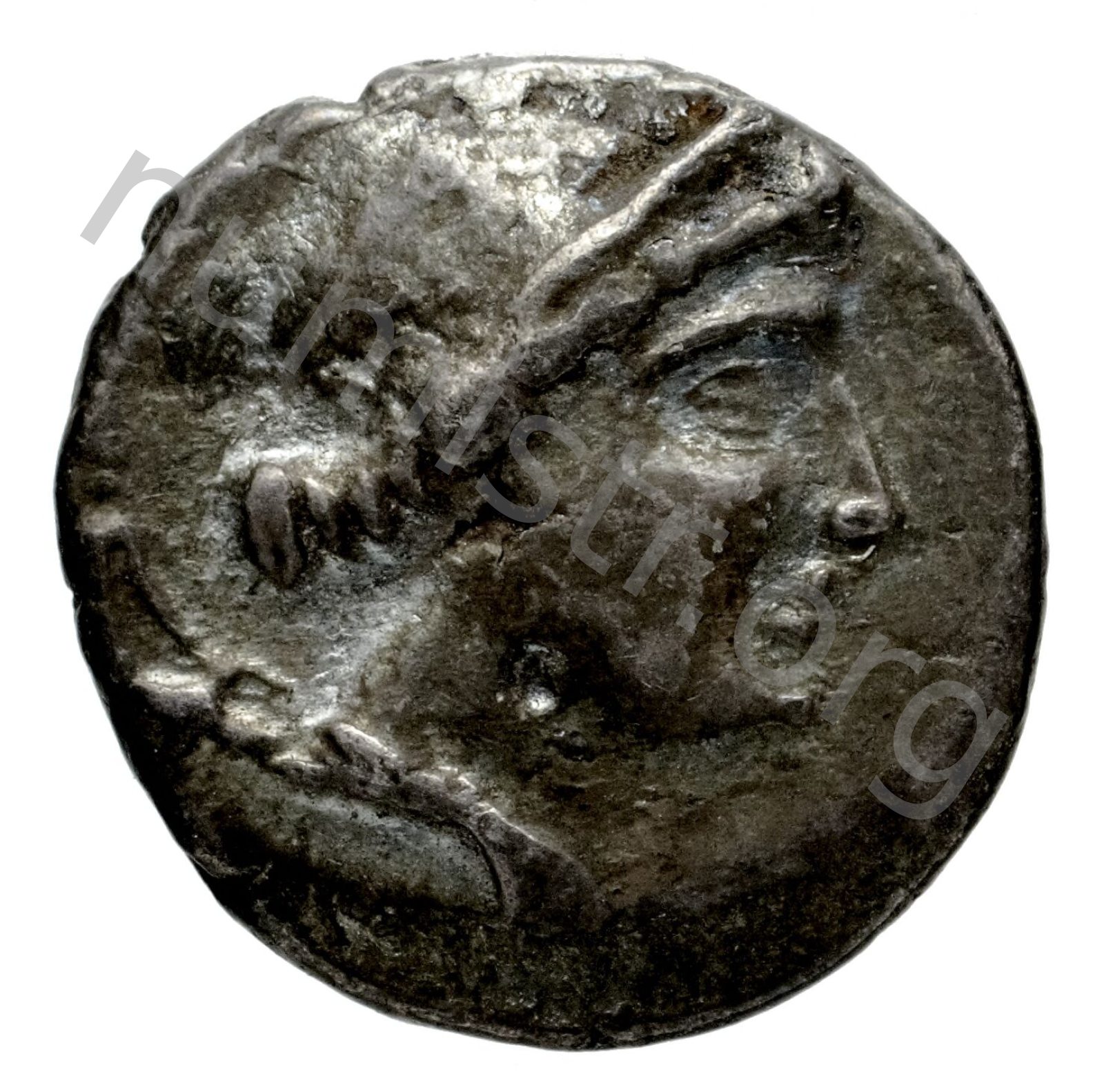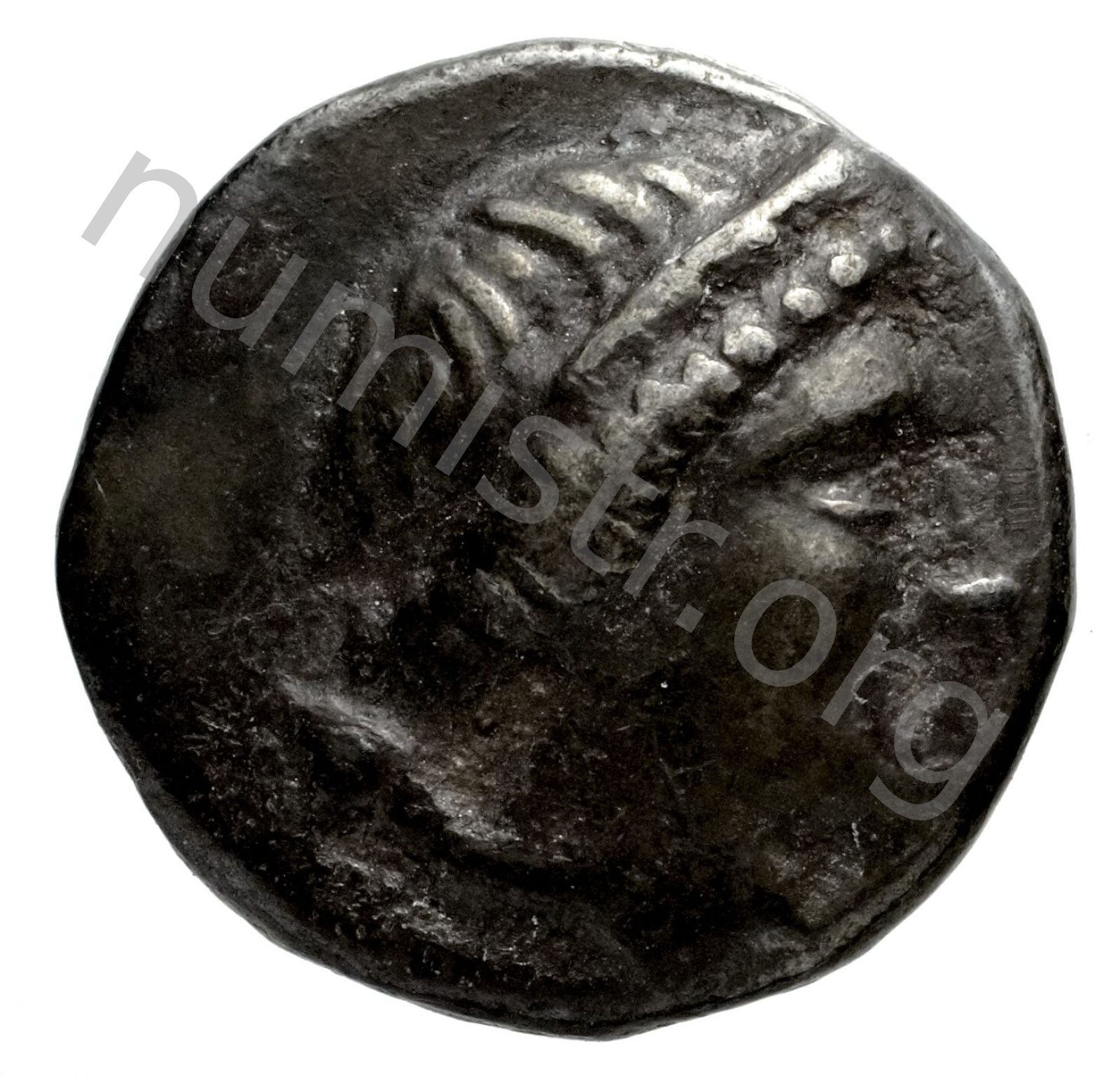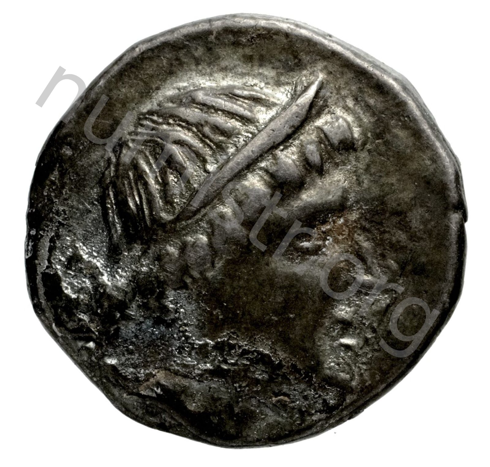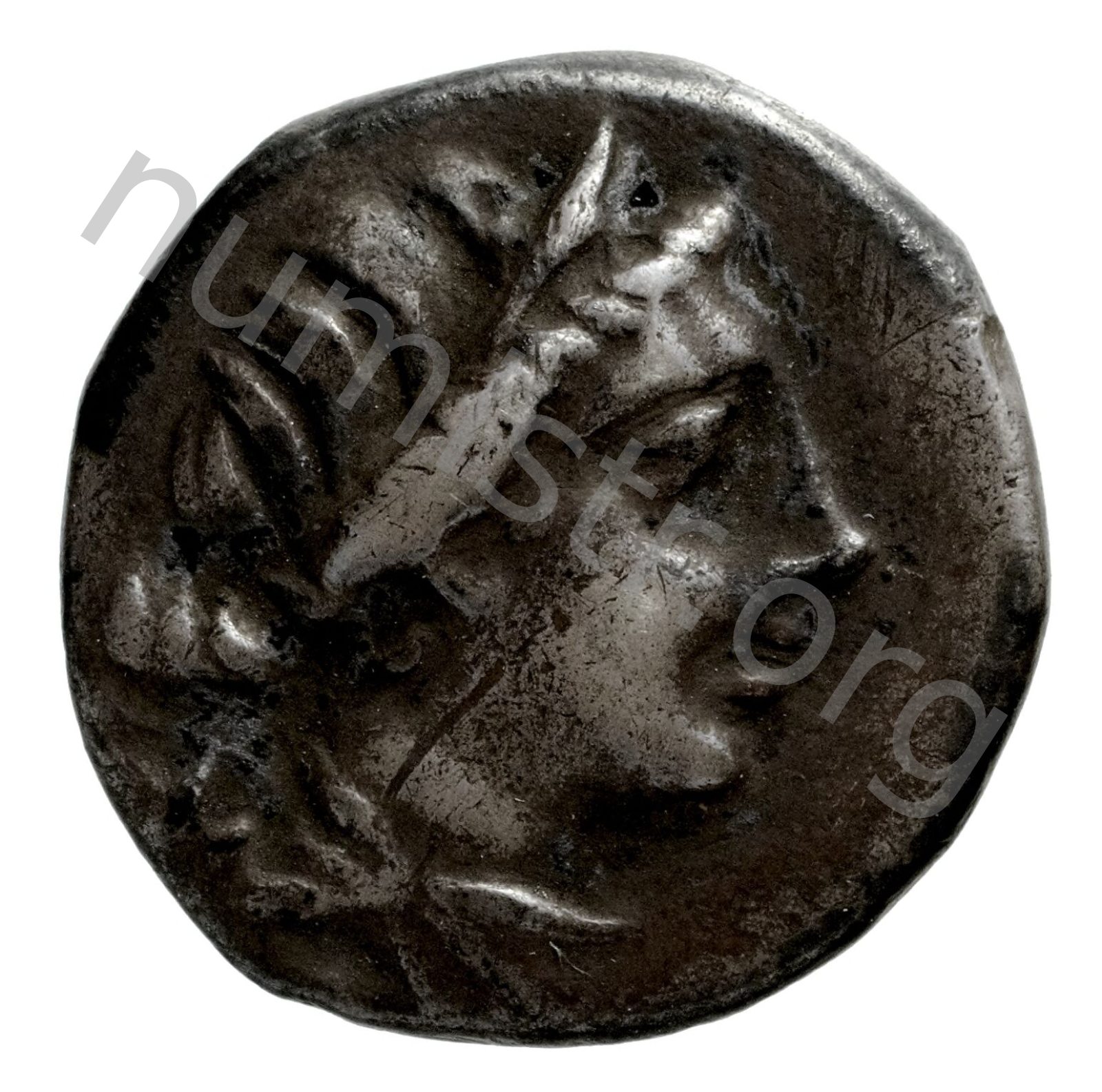 Stephane (taç) takan Artemis başı; sol alanda sadak