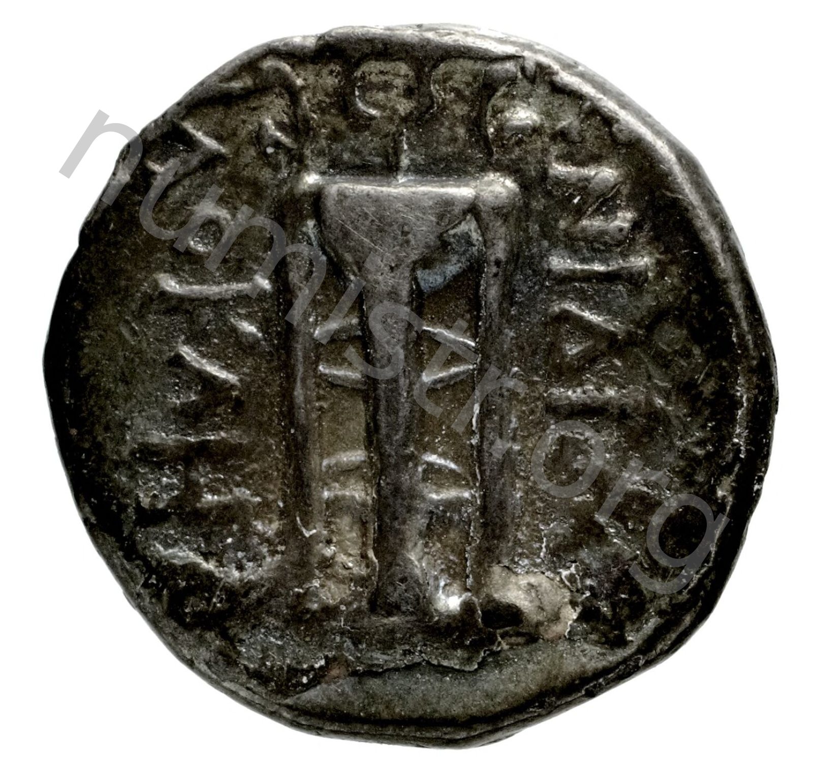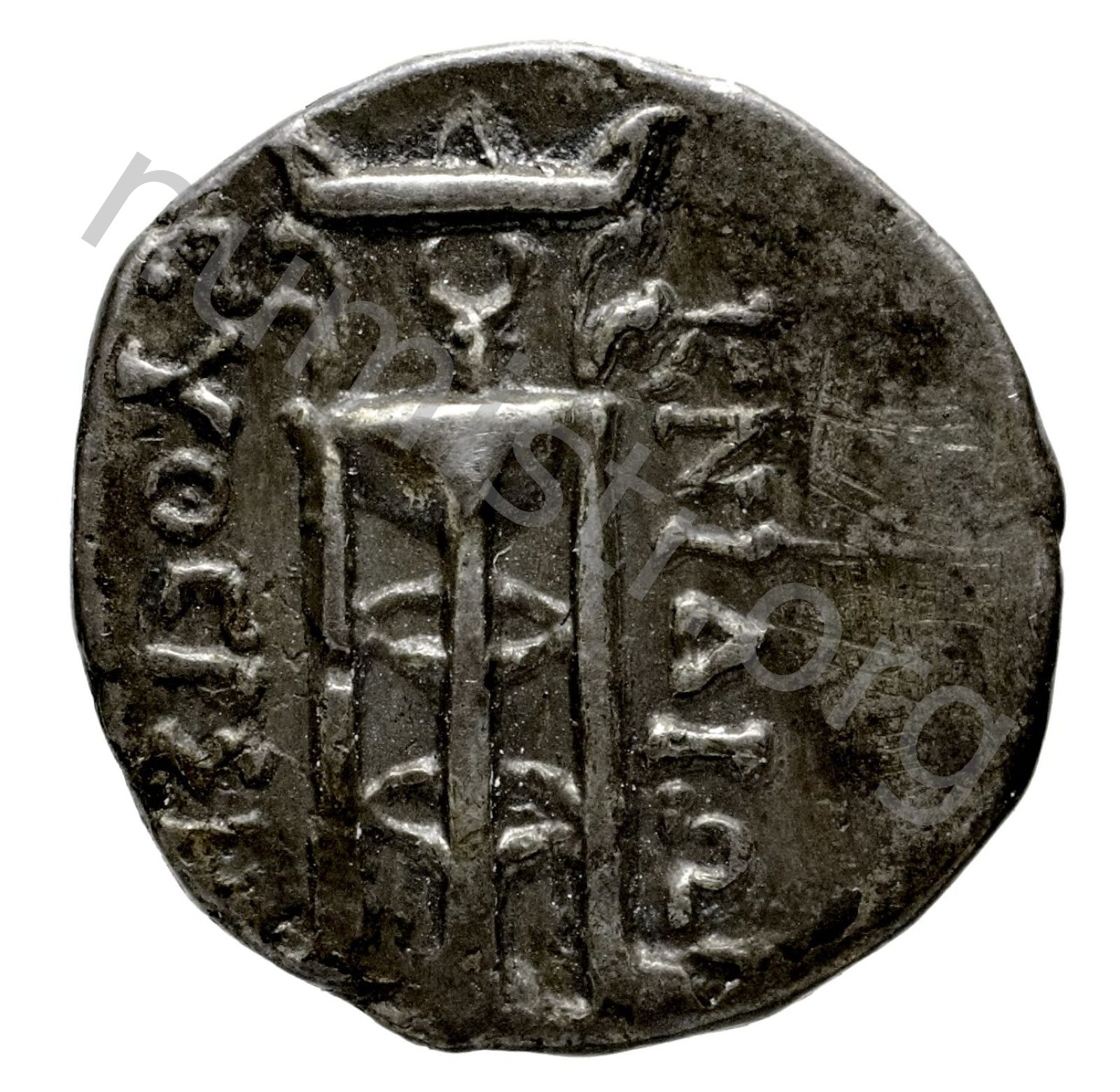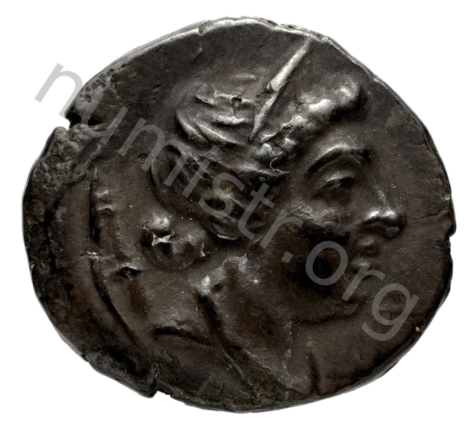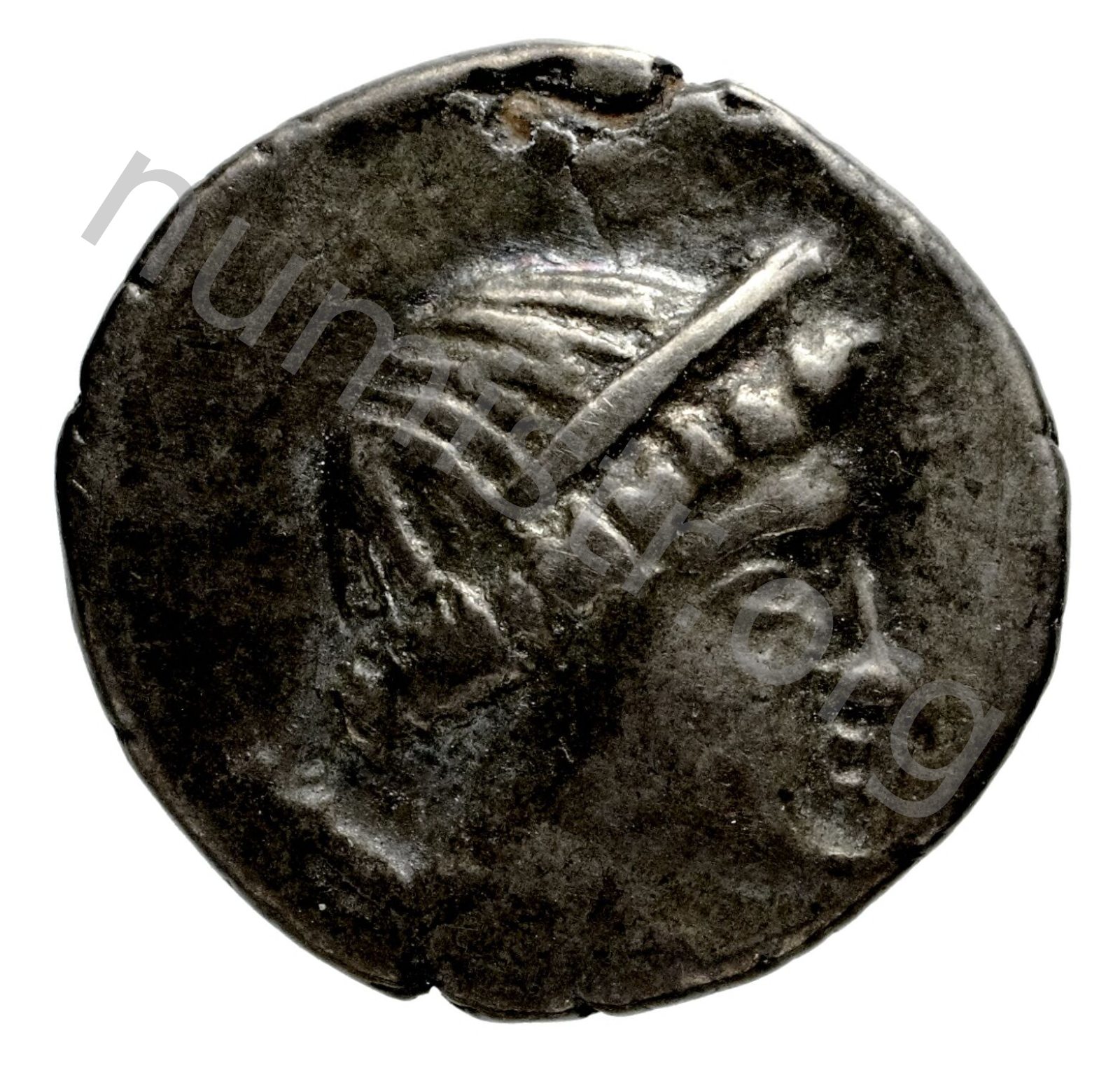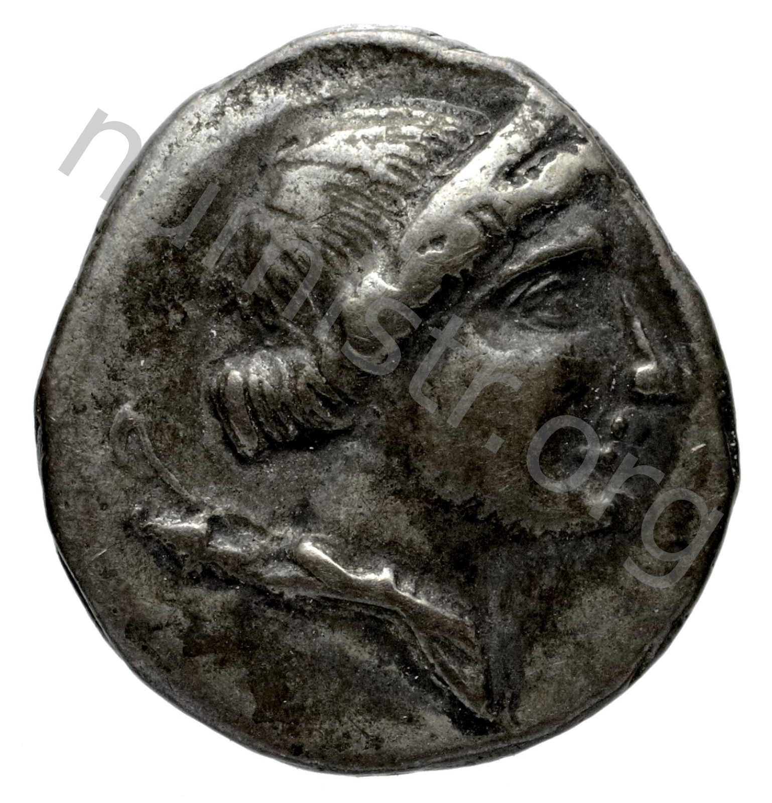 Stephane (taç) takan Artemis başı; sol alanda sadak