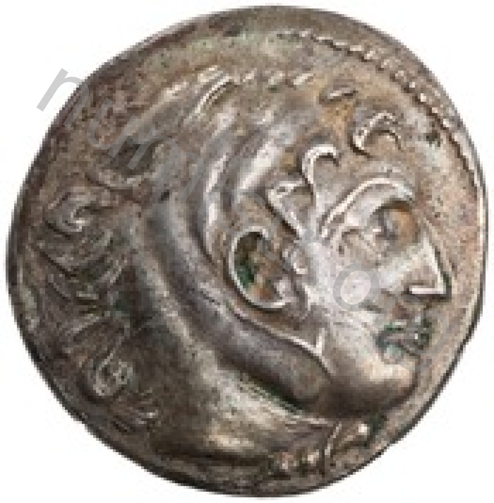 Head of beardless Heracles right wearing lion skin headdress -[en]