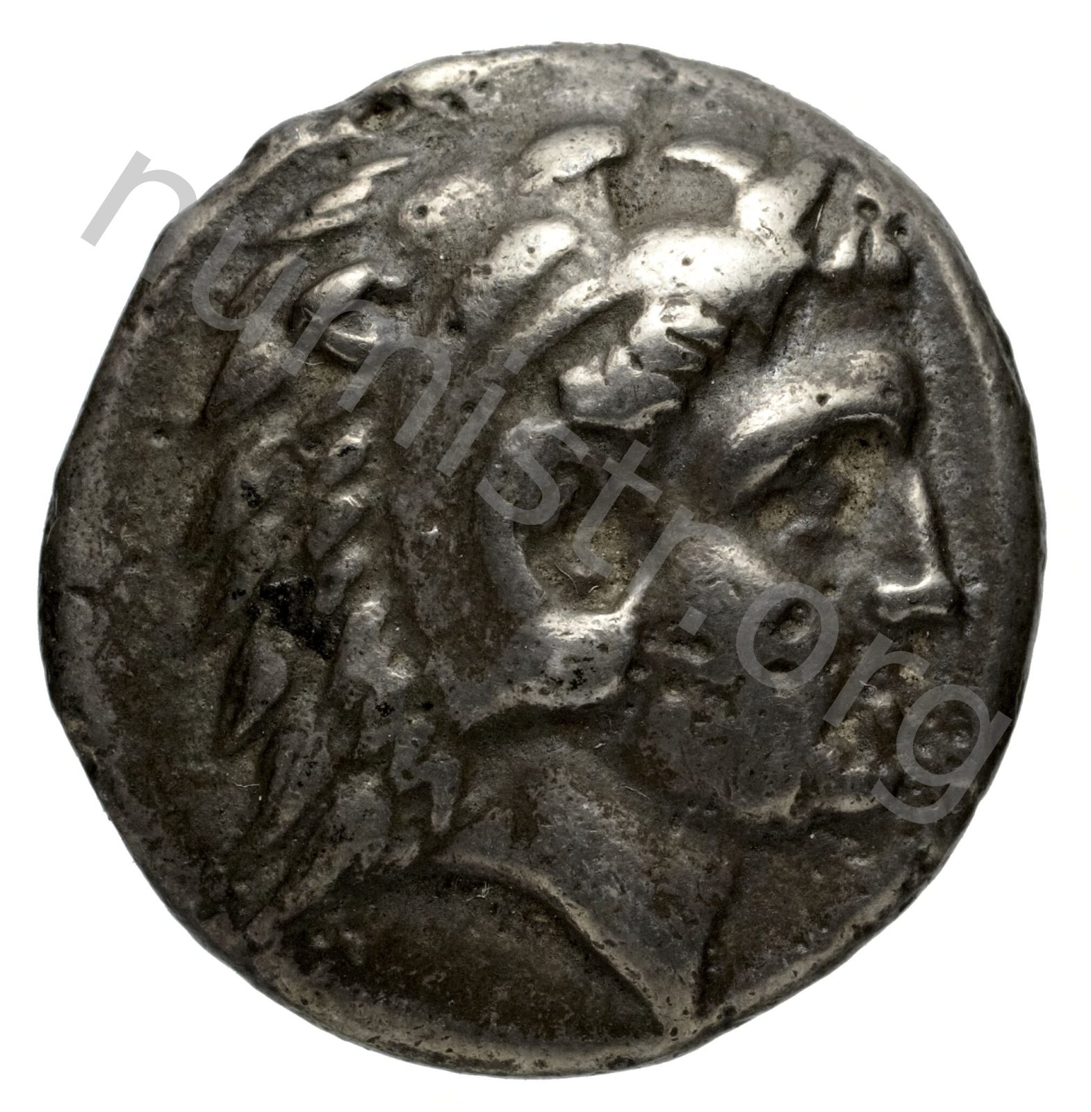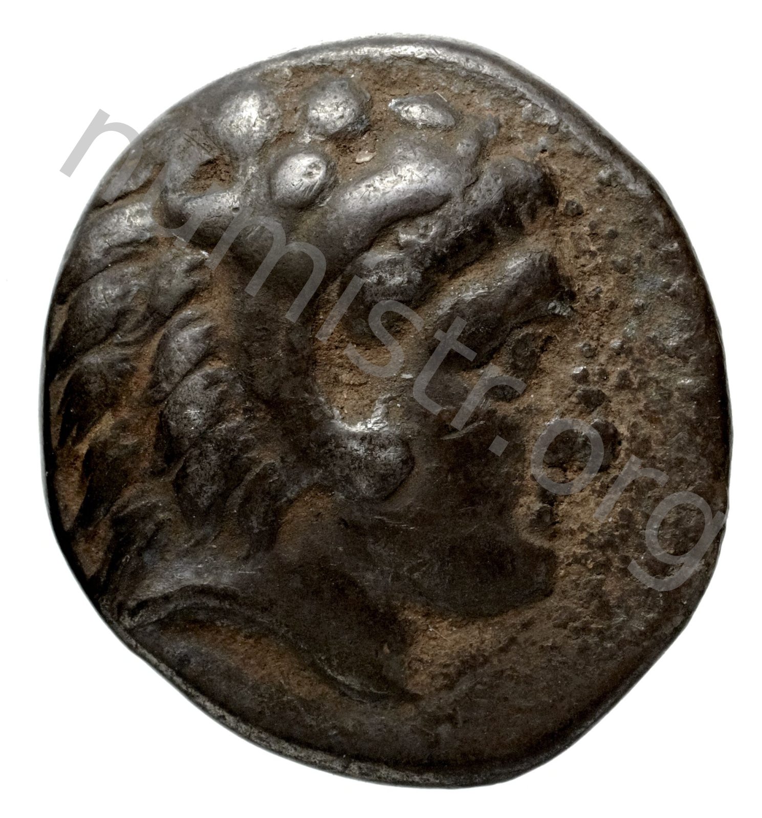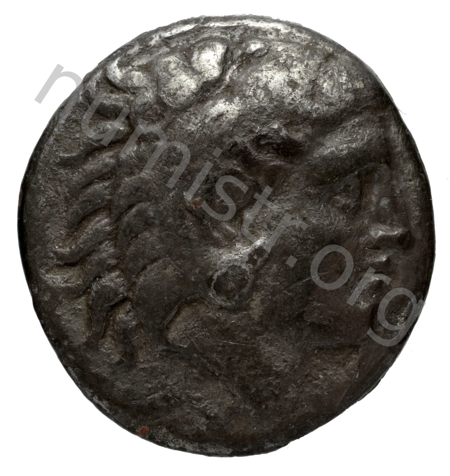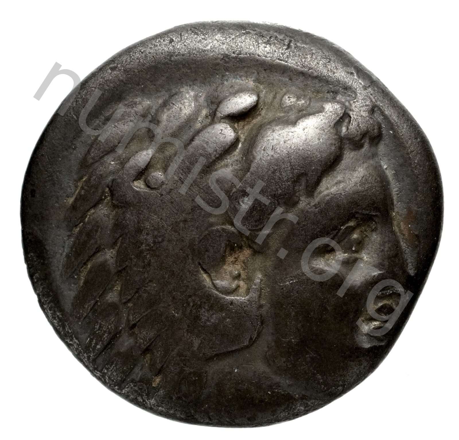 Crab and club; between its pincers a silkworm; all in an incuse square -[en]