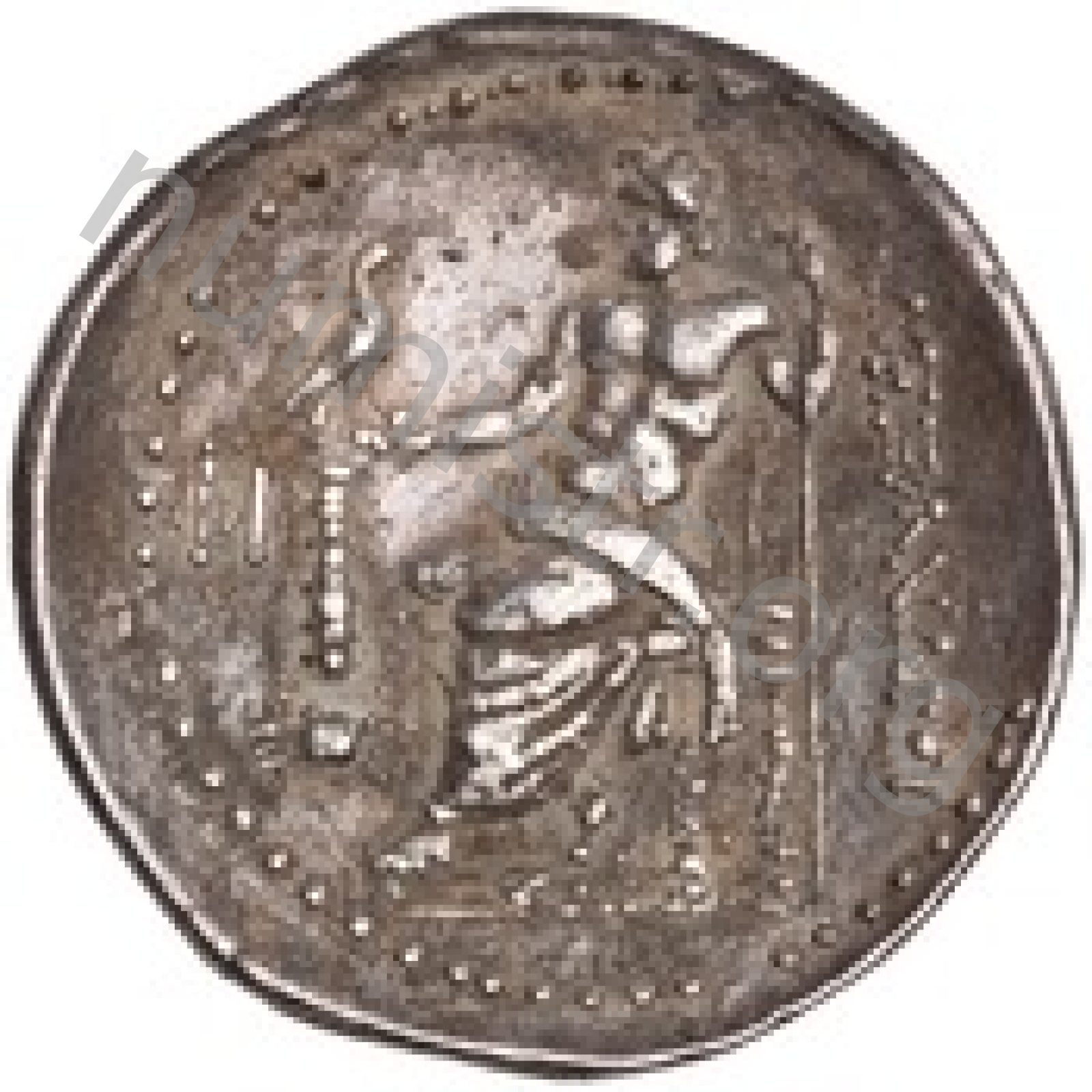 Zeus tabure-tahtta oturuyor sol elinde kartal sağ elinde asa var.