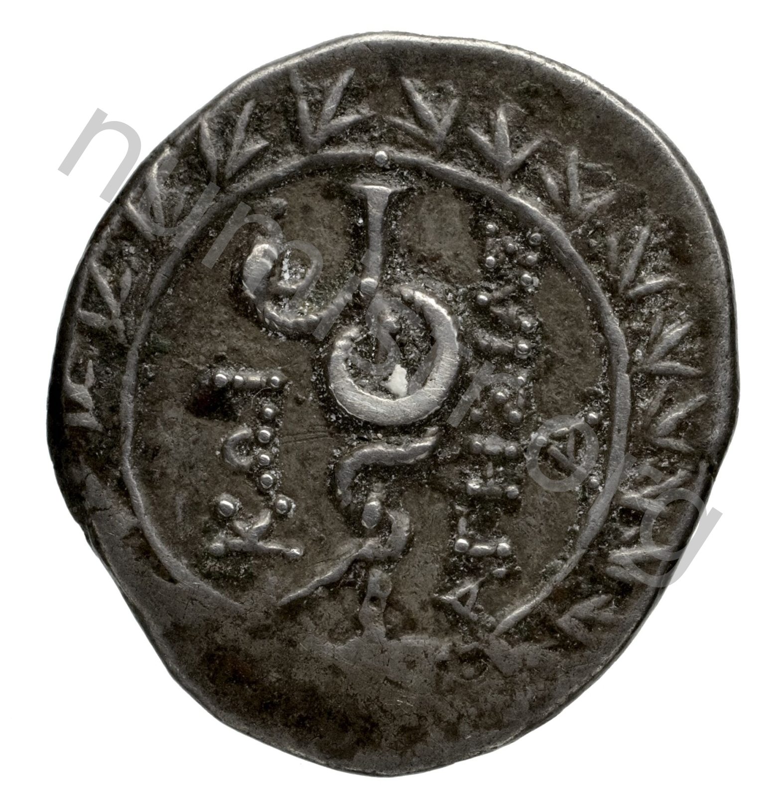 Serpent wrapped around a rhabdos (ritual sceptre) in a wreath -[en]