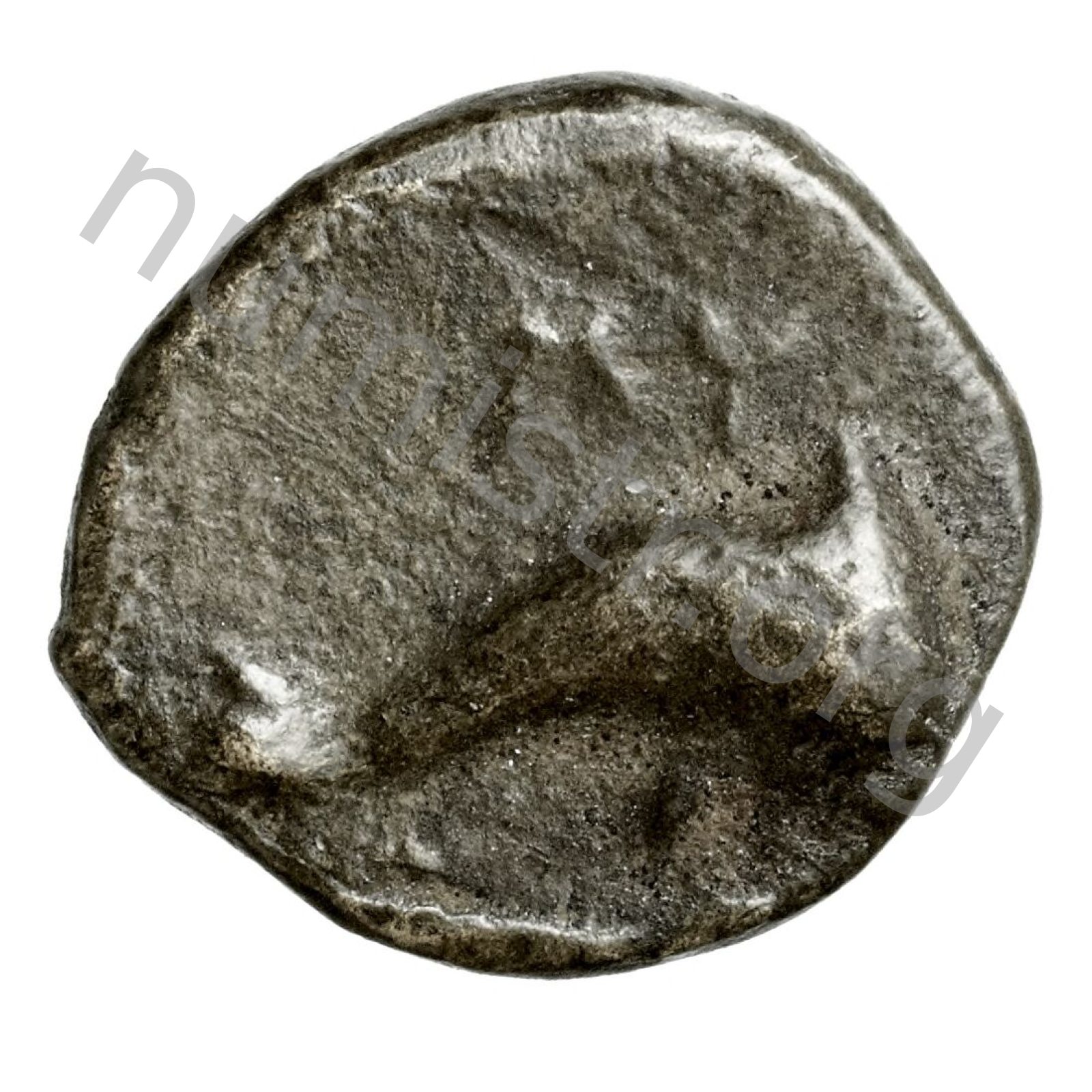Sol koluna örttüğü himation (pelerin) ve bir chiton giyen Zeus Osogo elinde üç dişli bir mızrak ve bir kartal tutuyor.