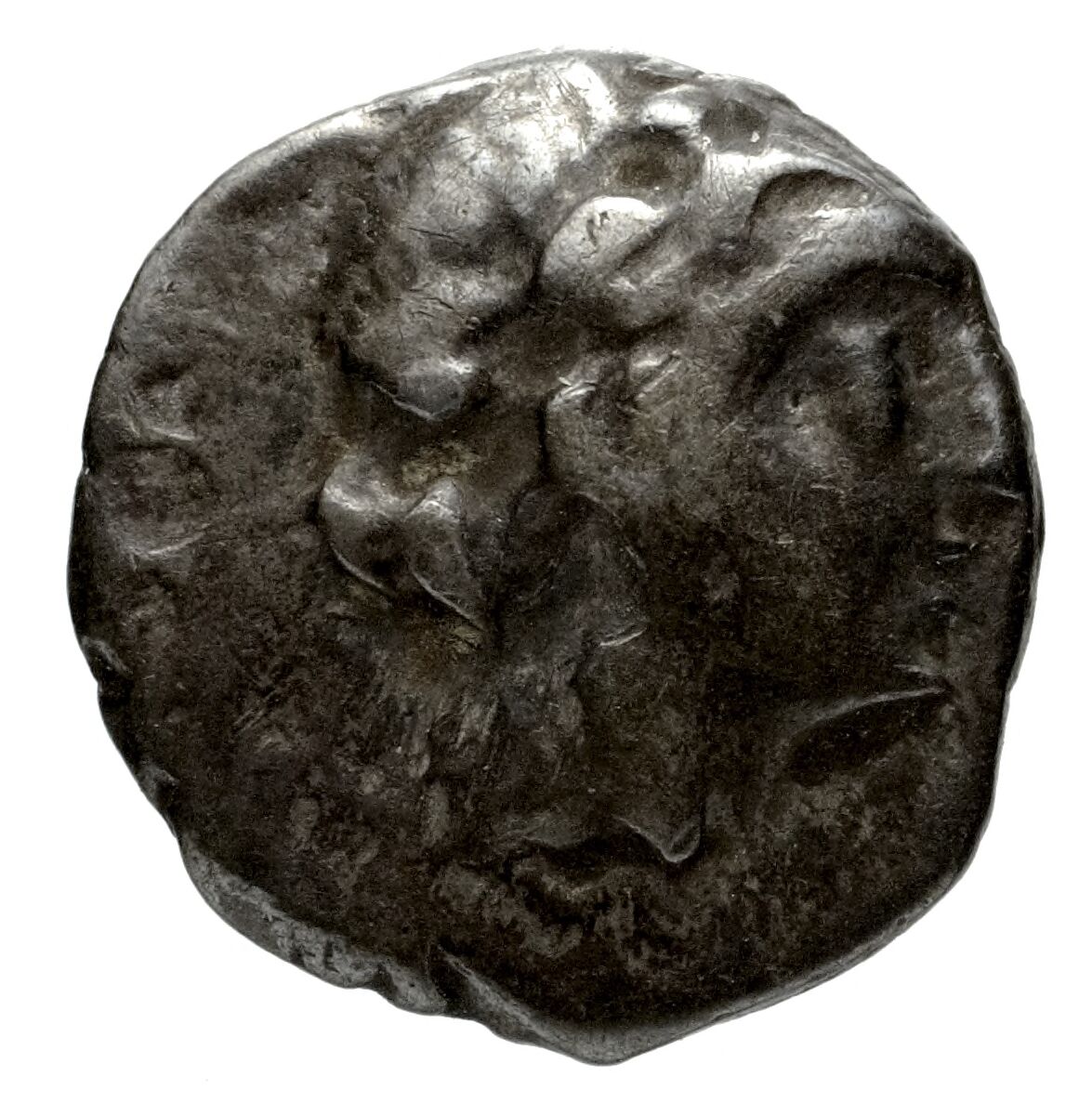 Basileion (feathered and horned wreath of Hathor); in the lower field two corn-ears -[en]