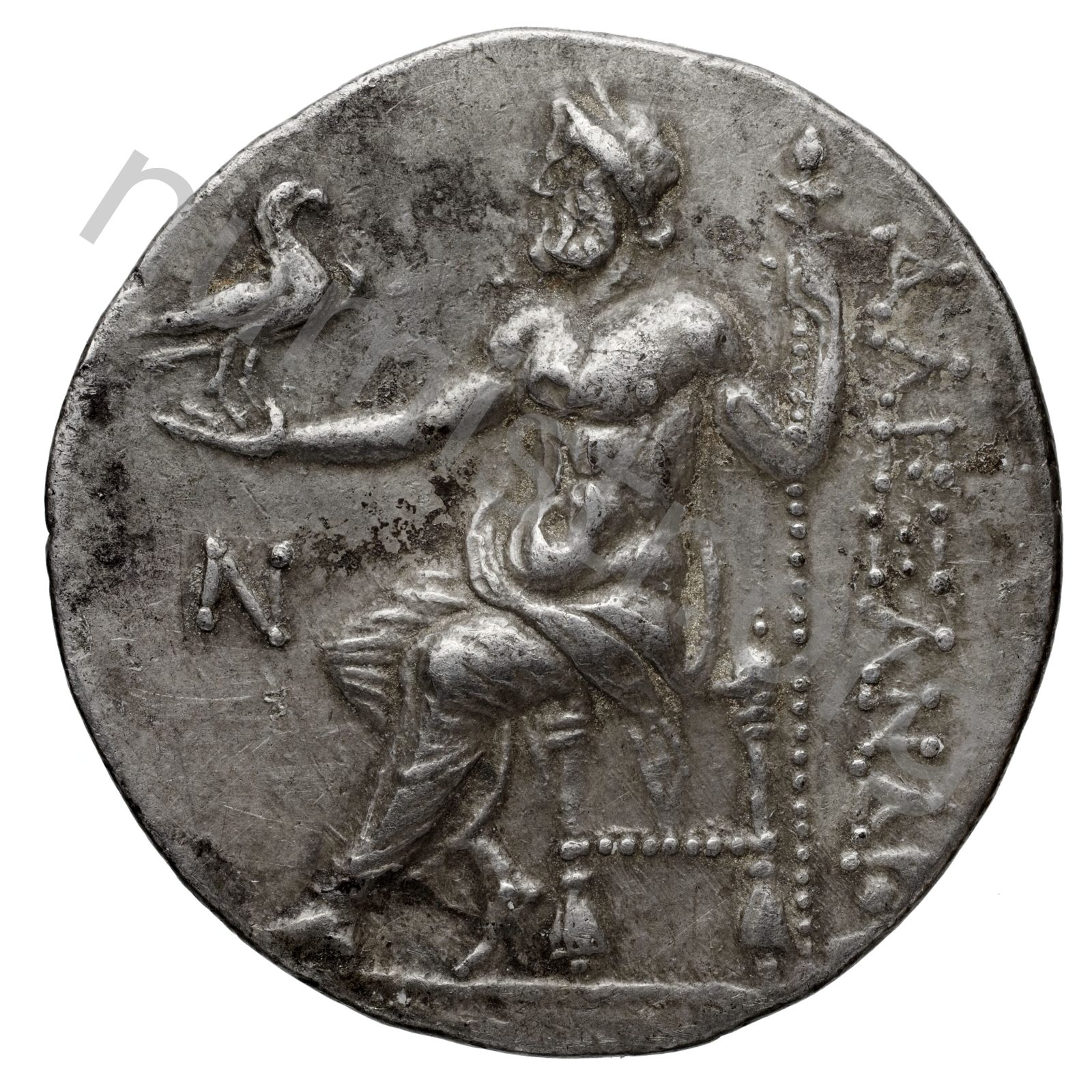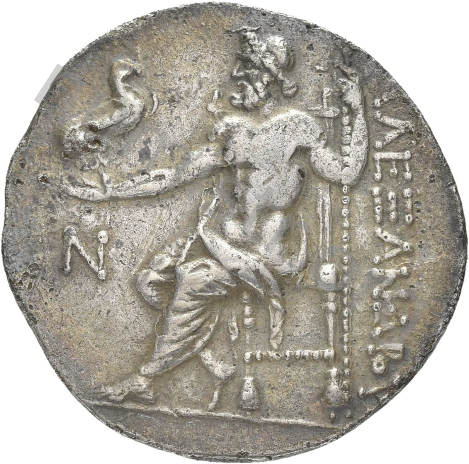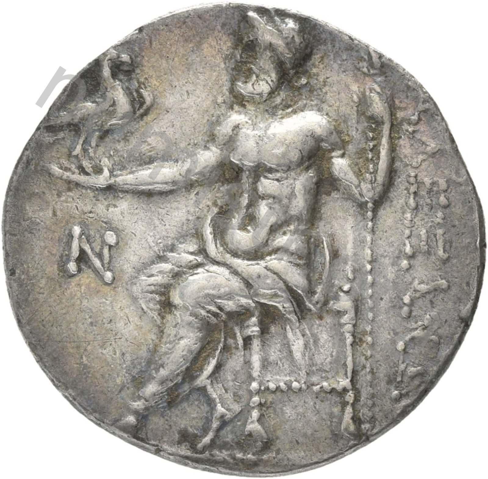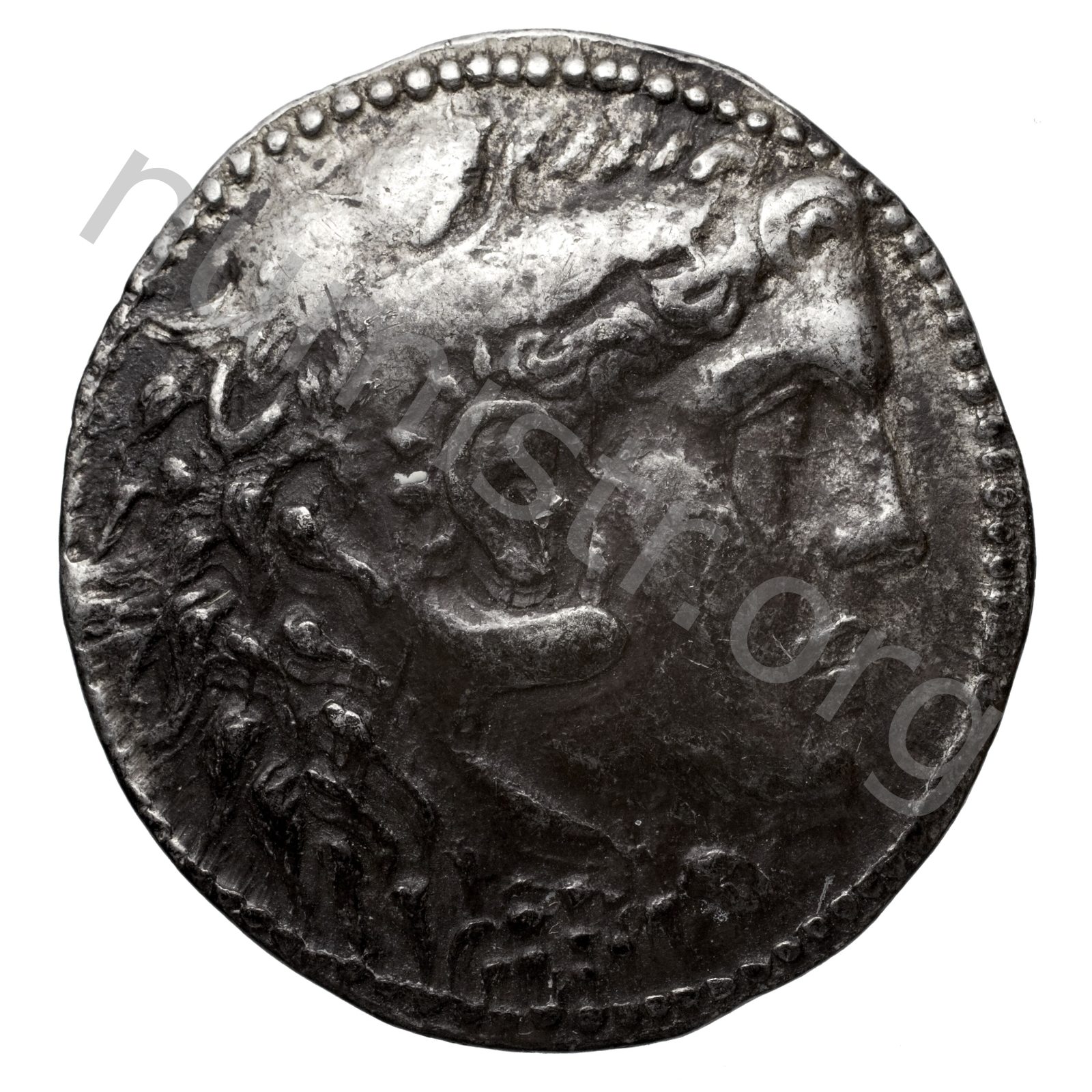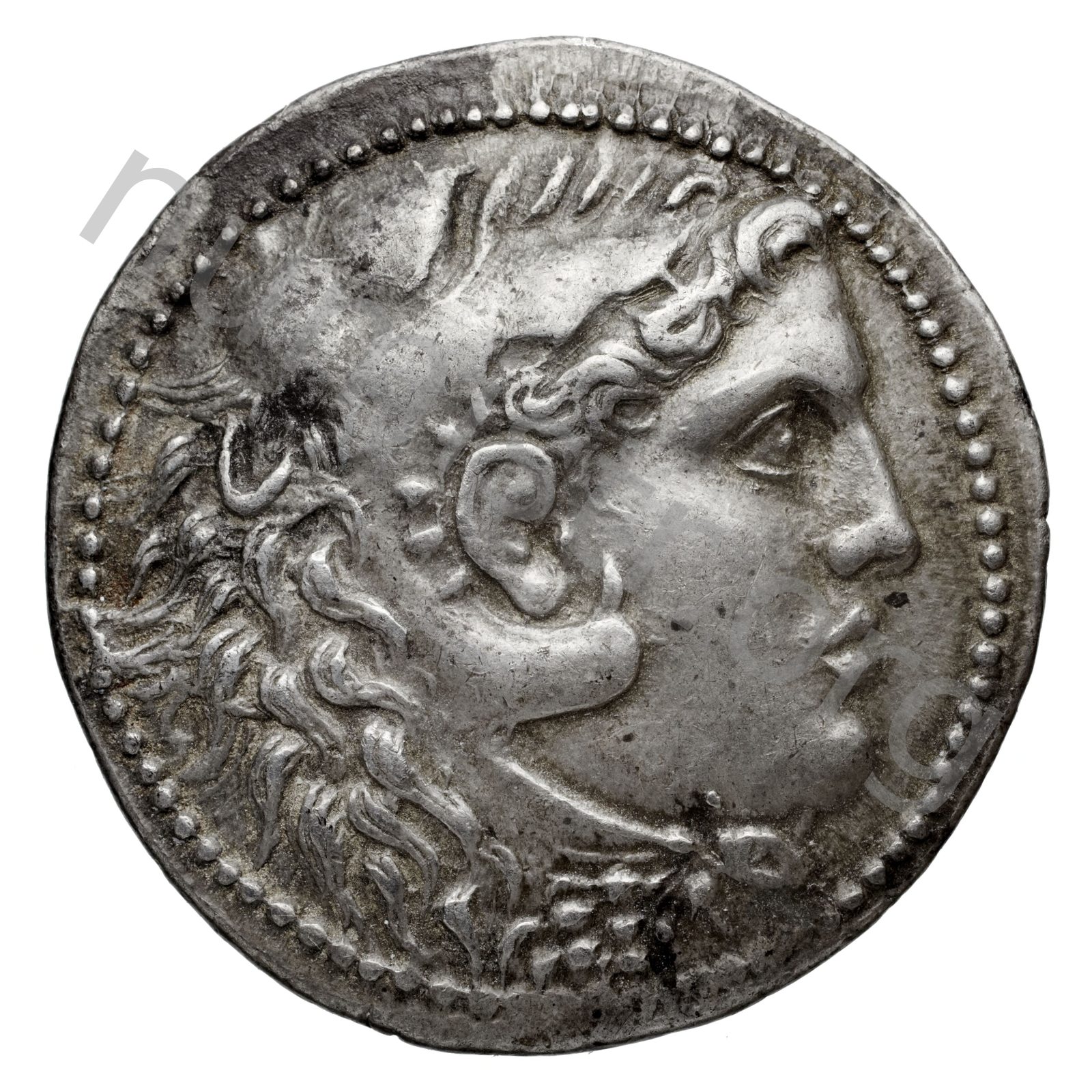 Head of beardless Heracles right wearing lion skin headdress -[en]