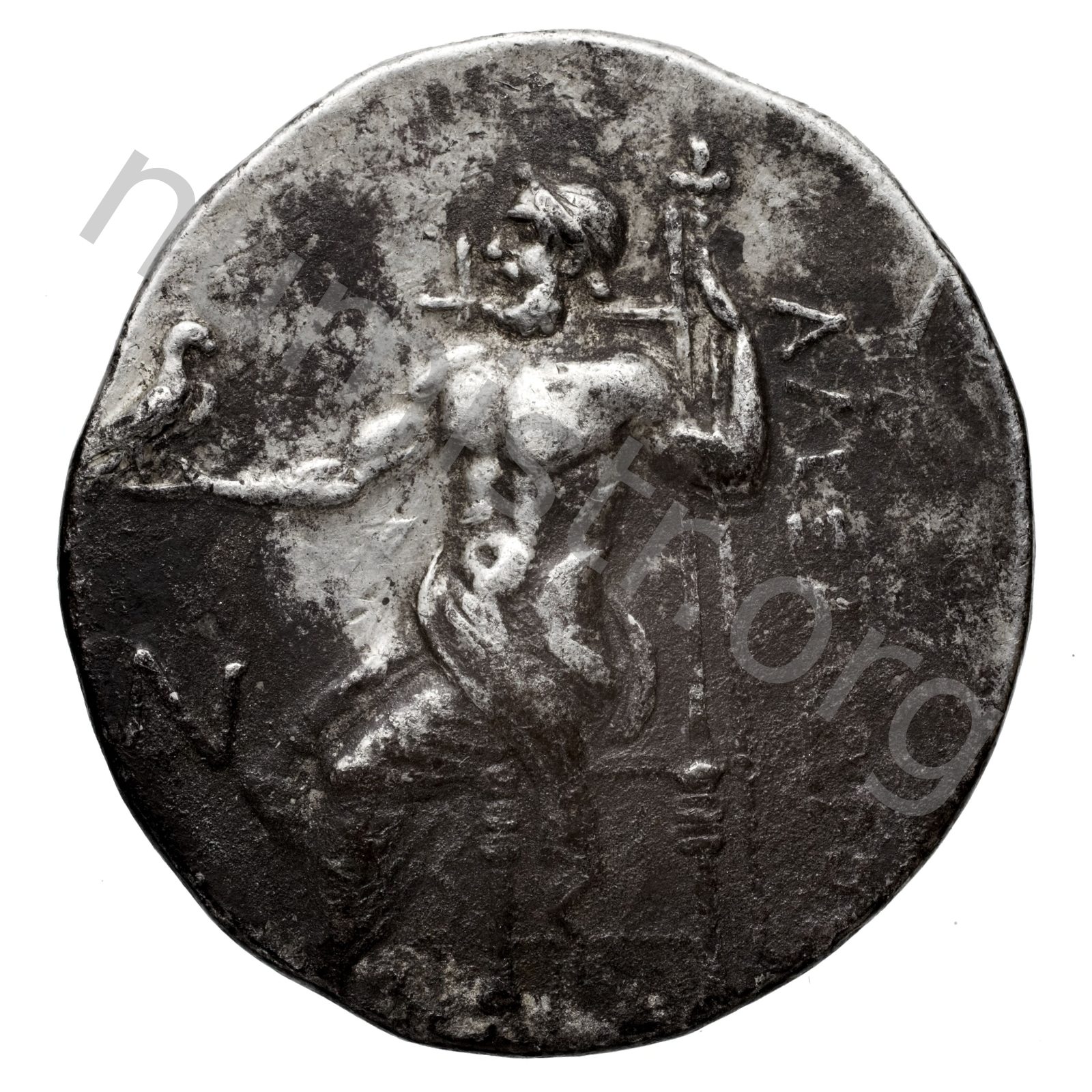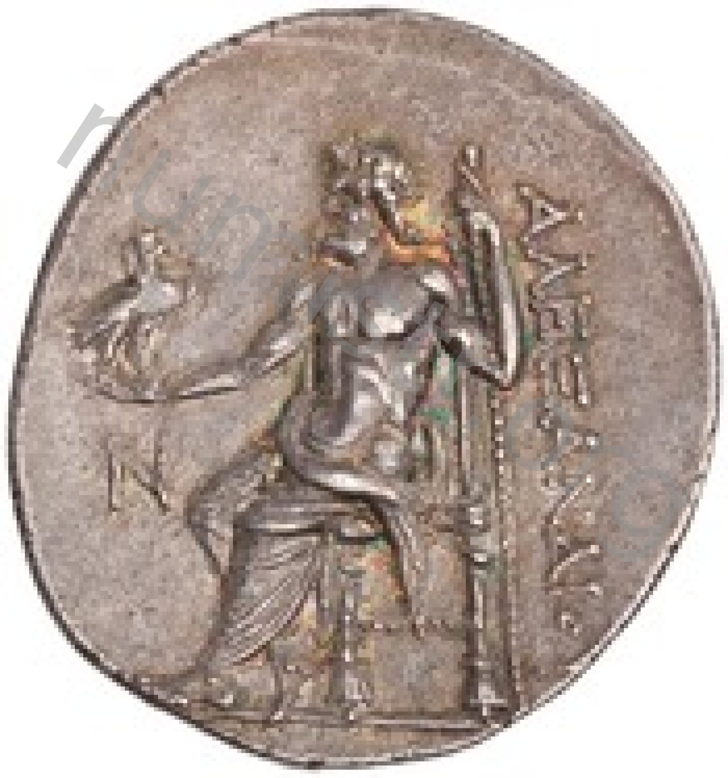Zeus tabure-tahtta oturuyor sol elinde kartal sağ elinde asa var.