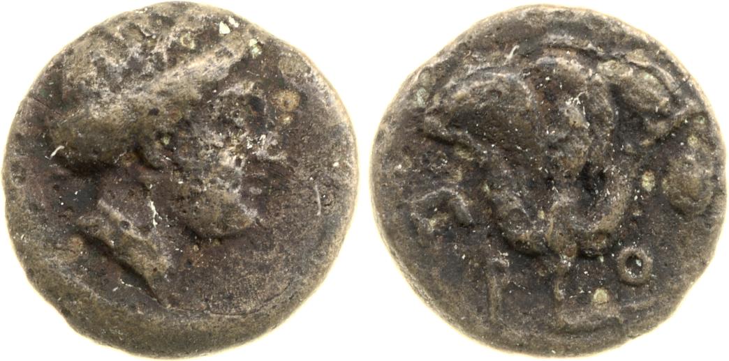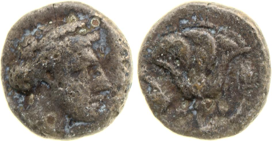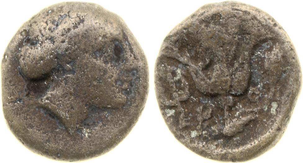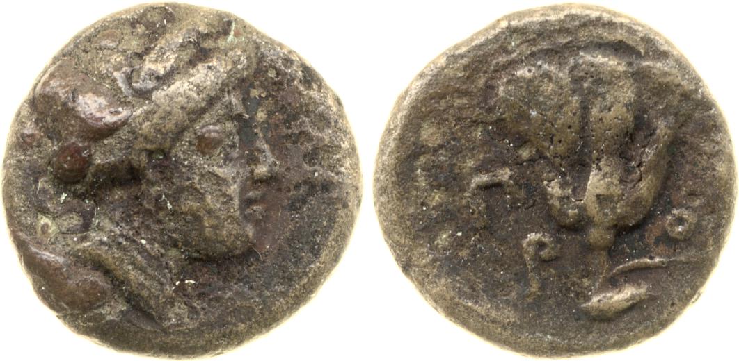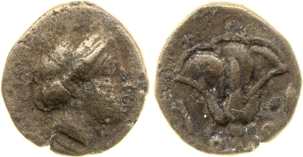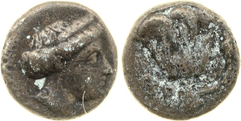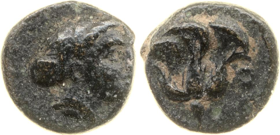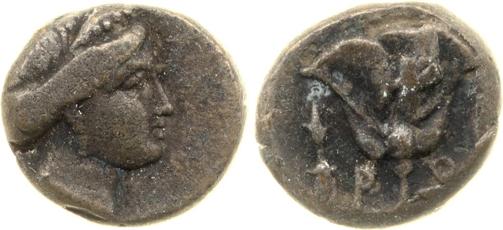 Head of Rhodos wearing a stephane (crown) and adorned with earrings -[en]