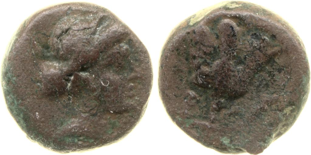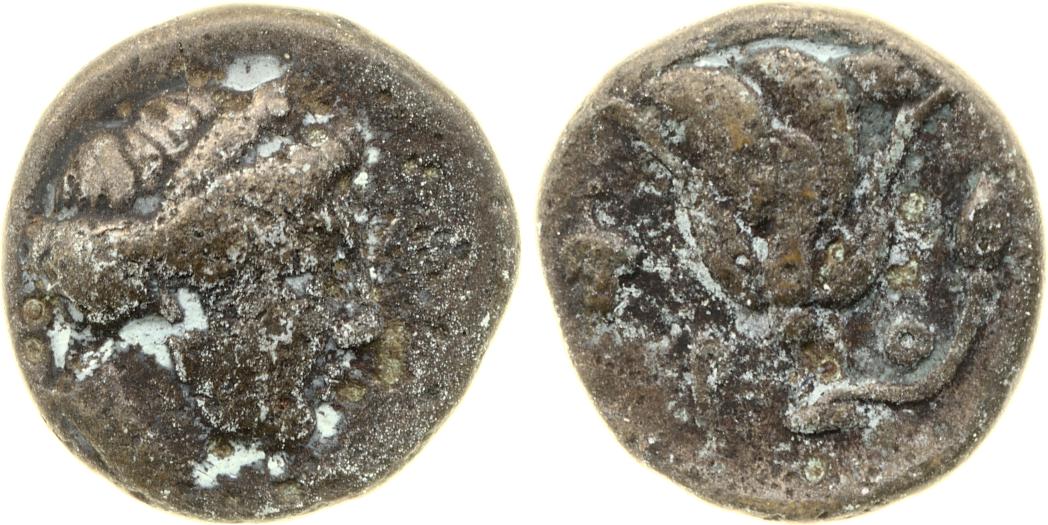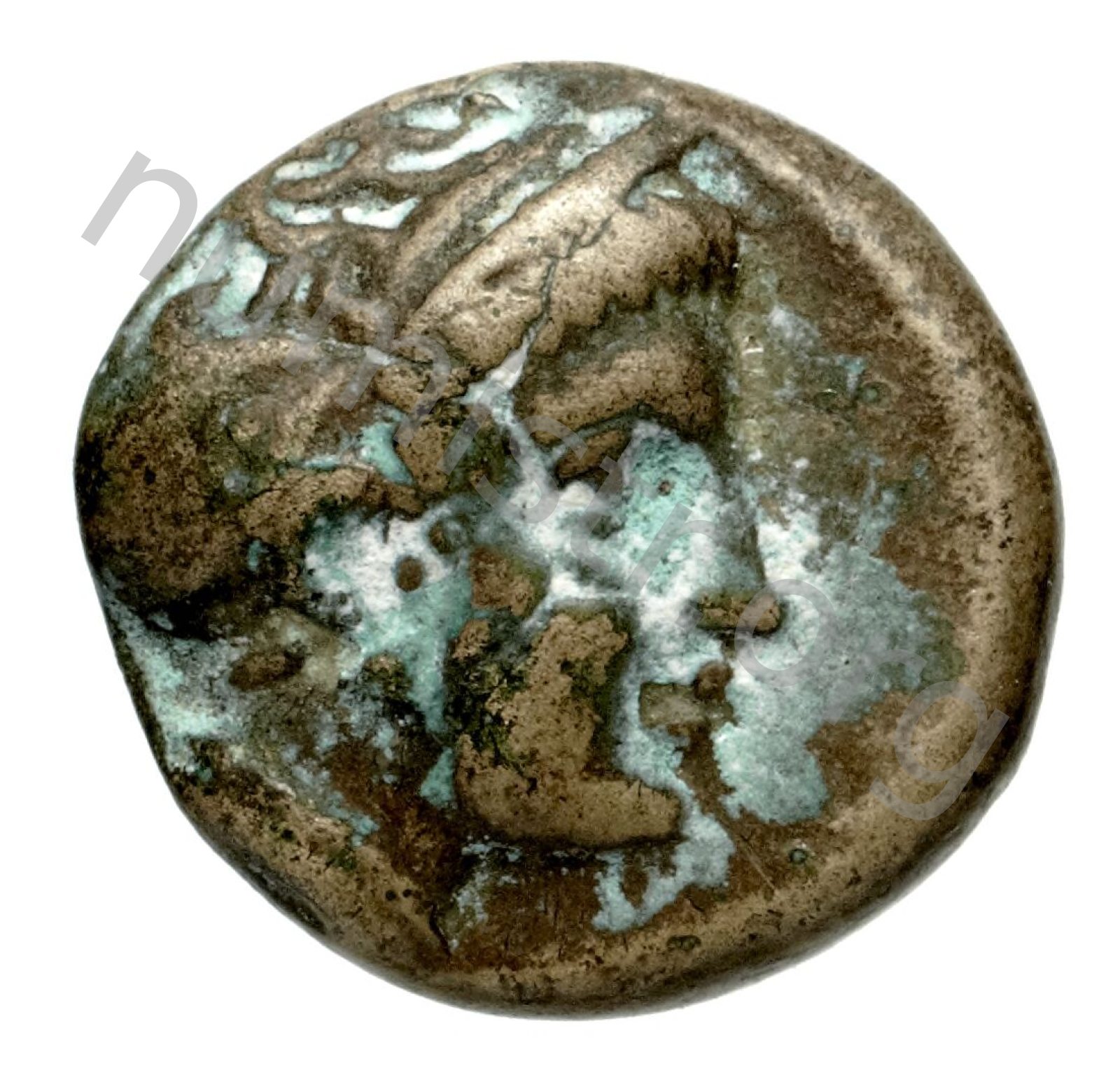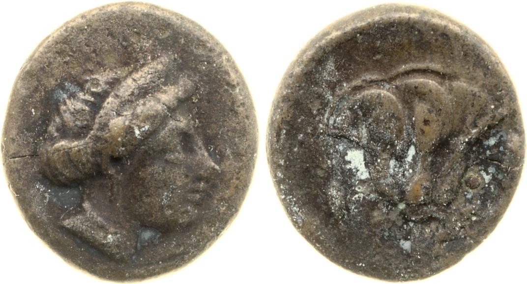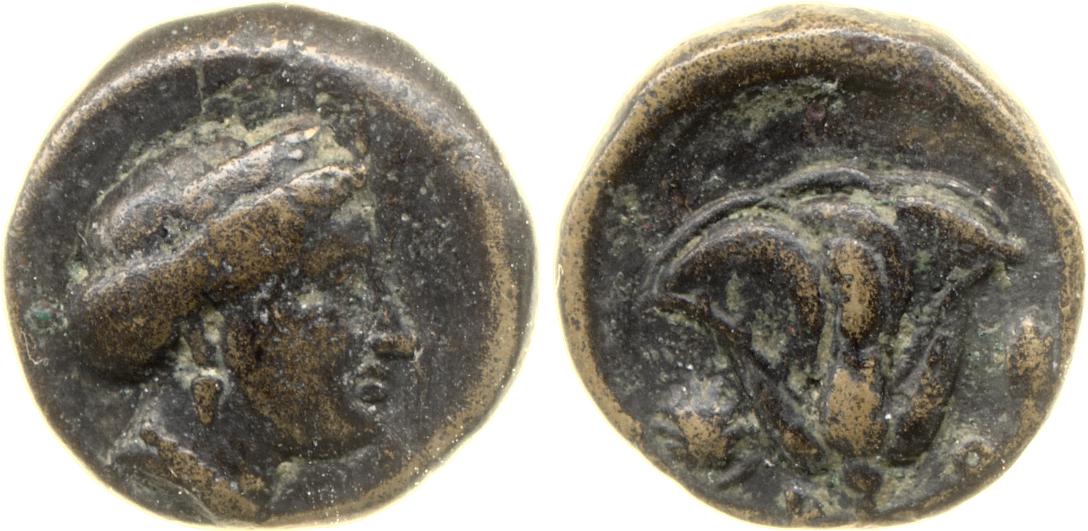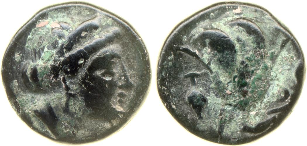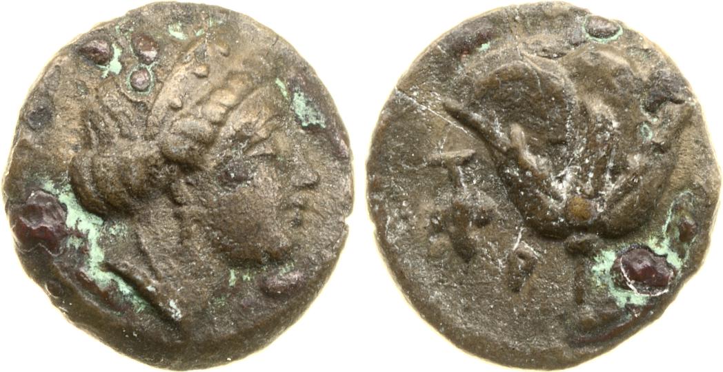 Head of Rhodos wearing a stephane (crown) and adorned with earrings -[en]