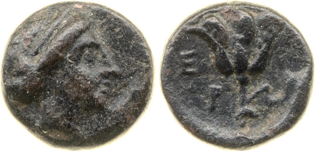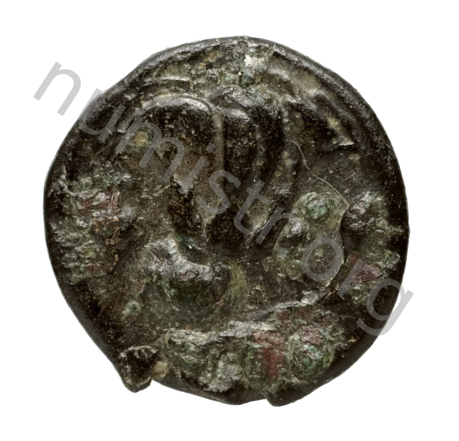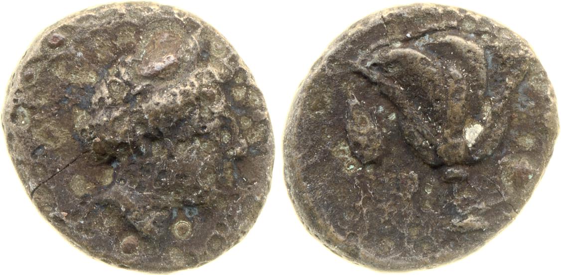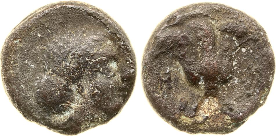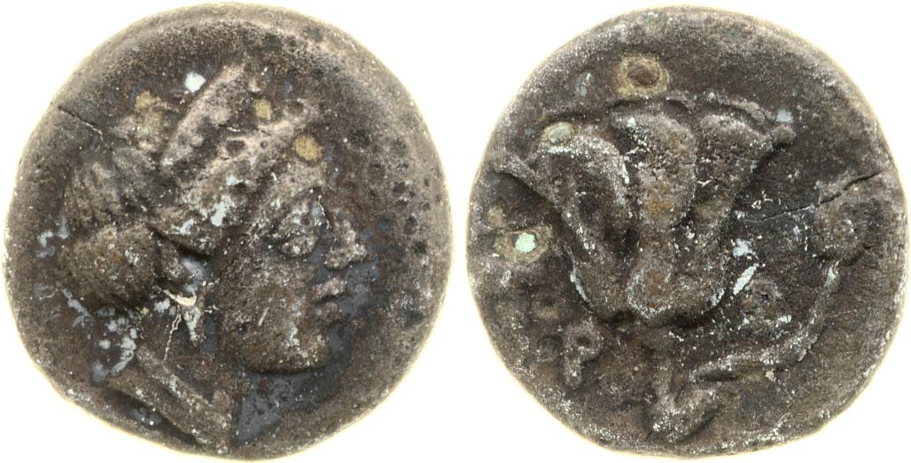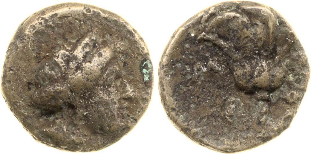 Head of Rhodos wearing a stephane (crown) and adorned with earrings -[en]