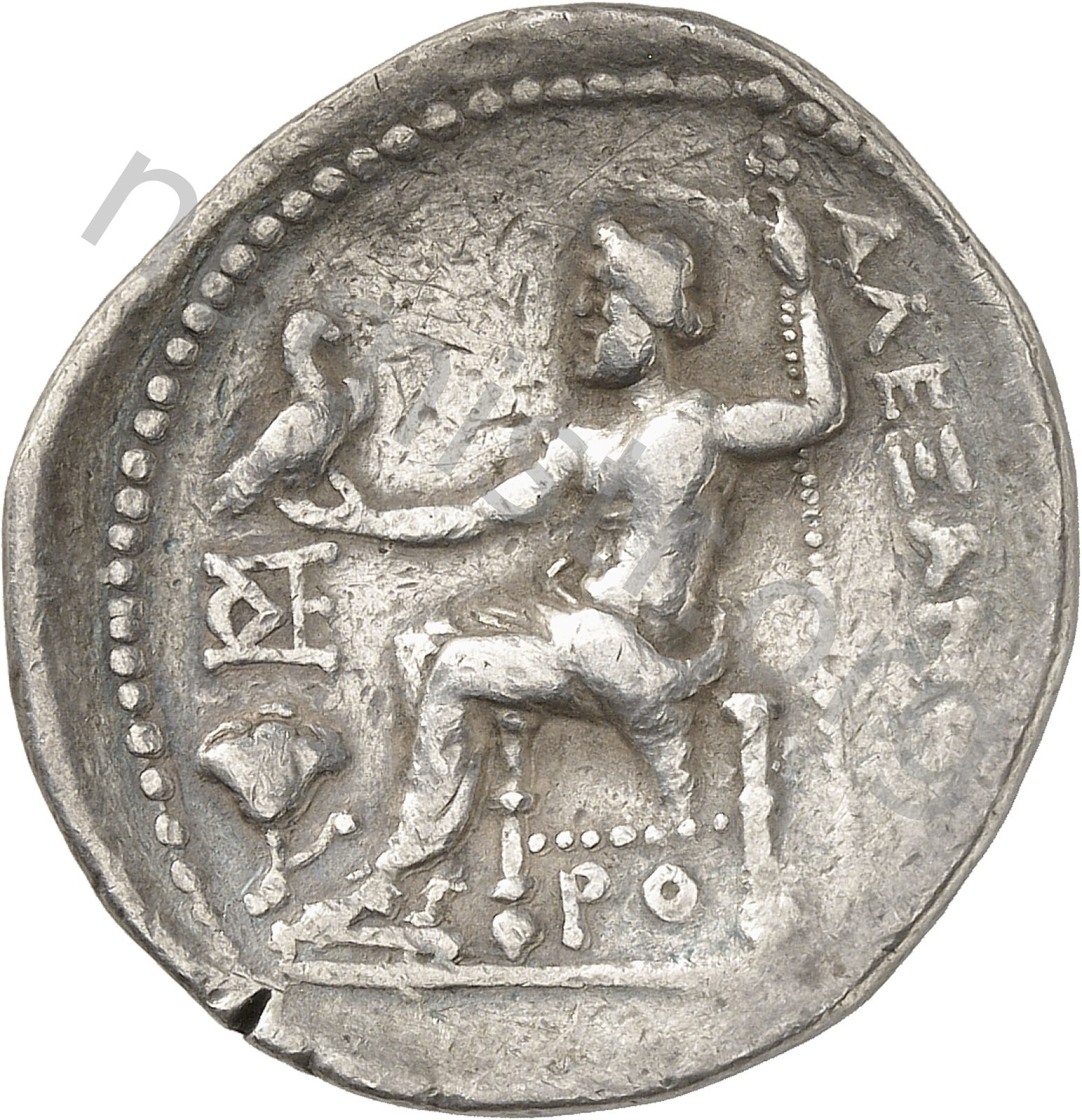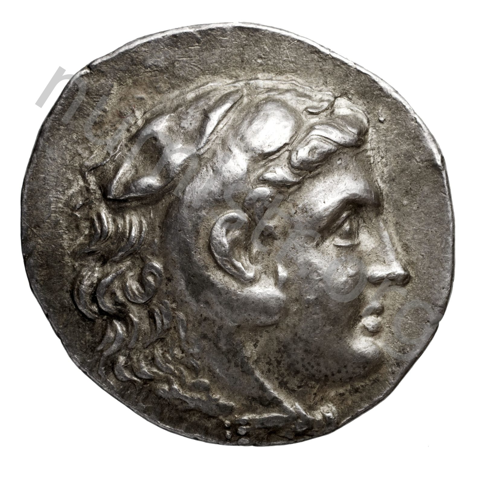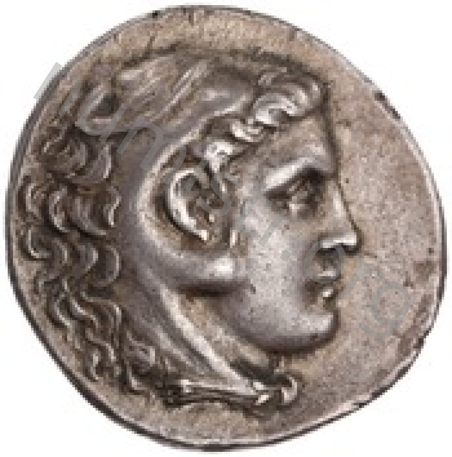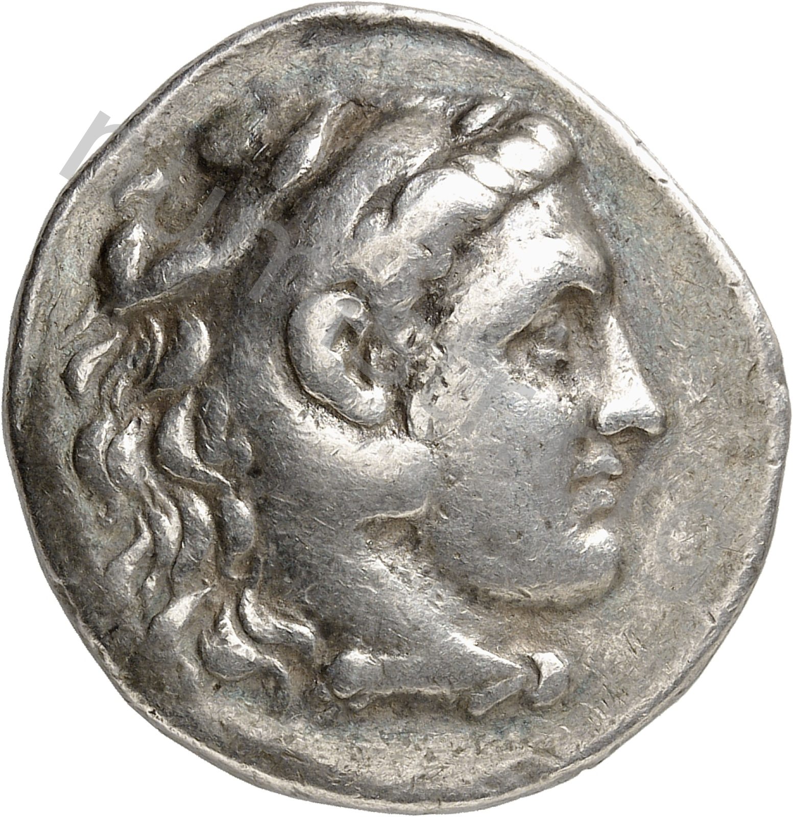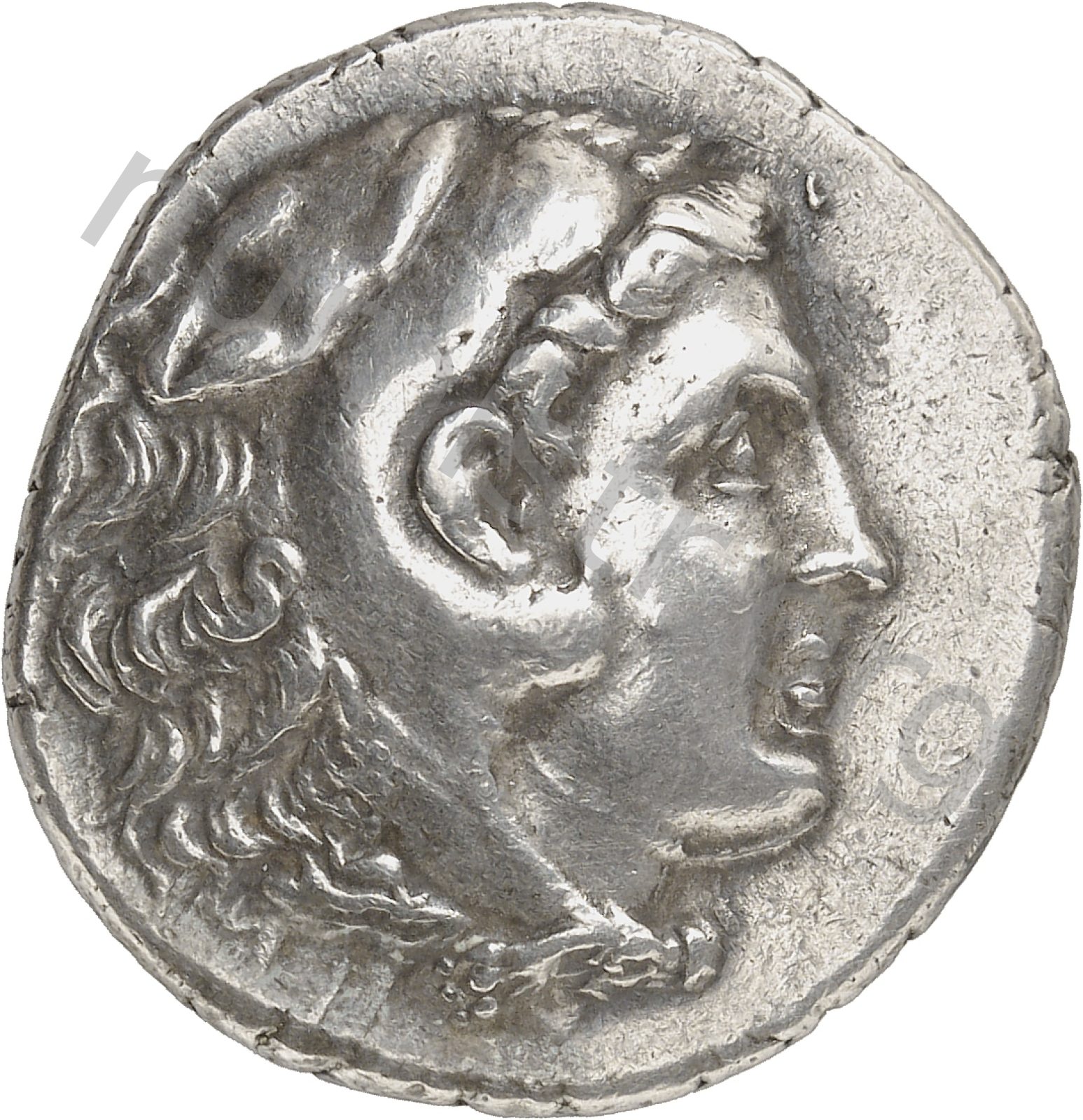 Head of beardless Heracles right wearing lion skin headdress -[en]