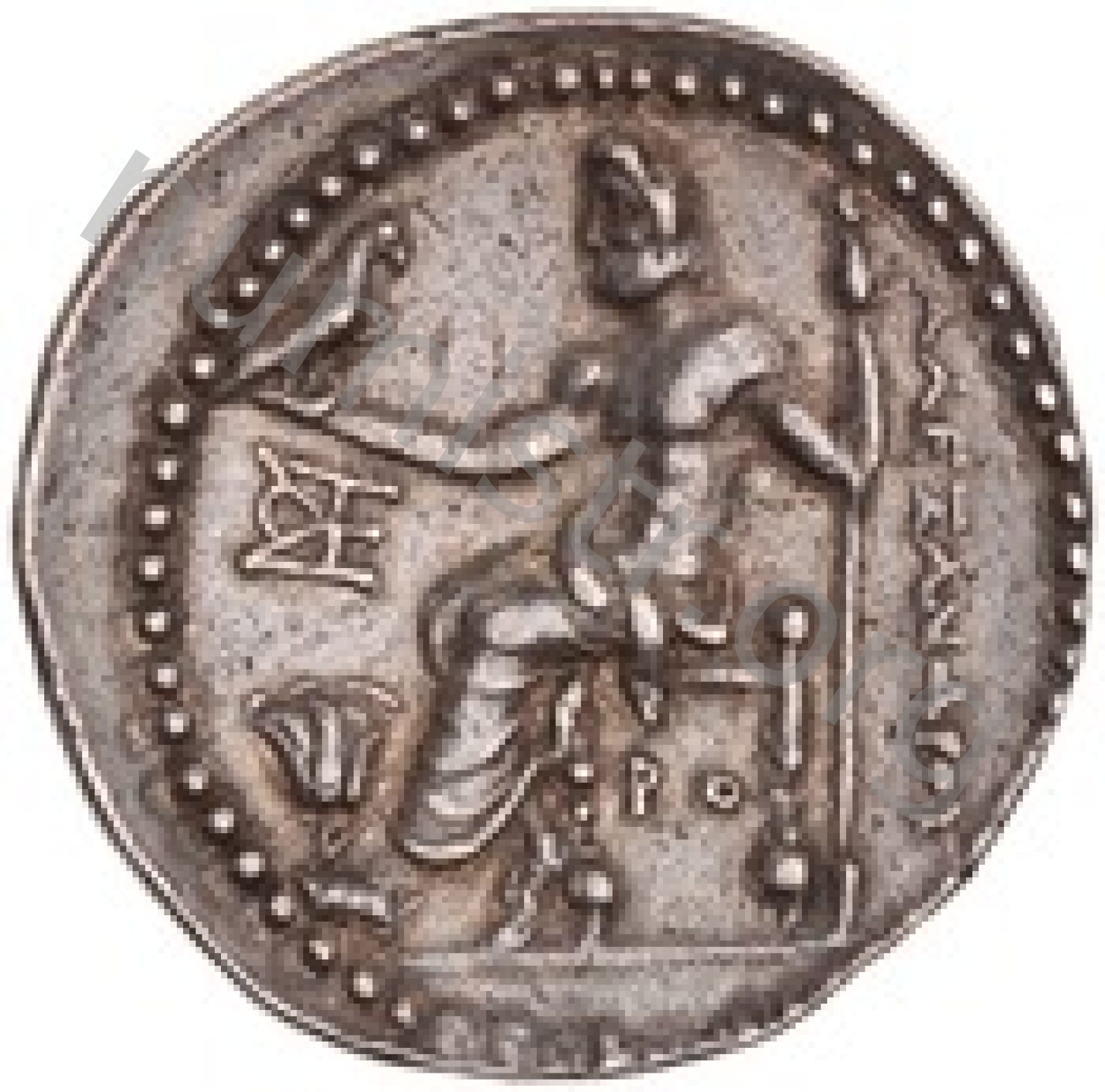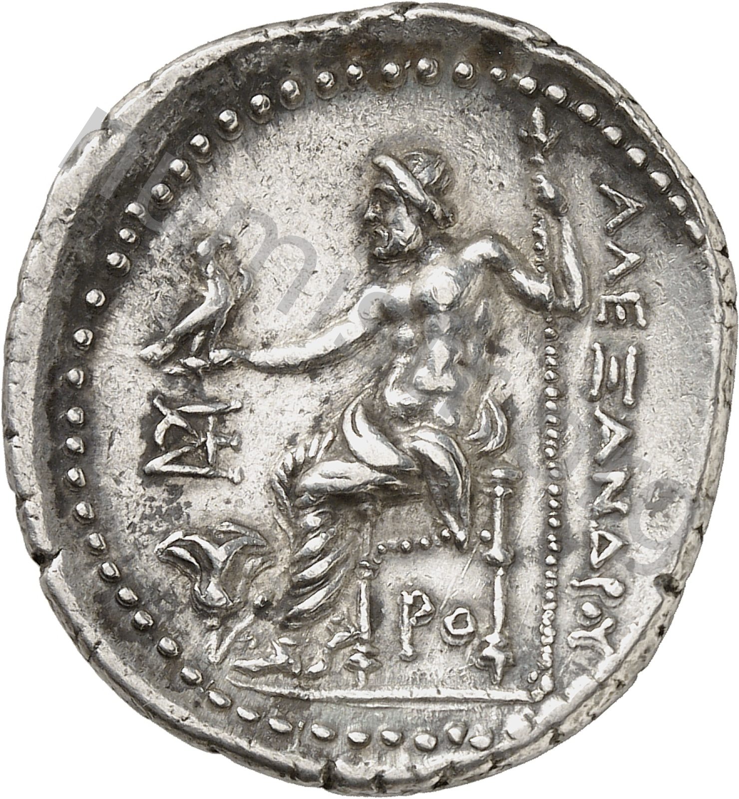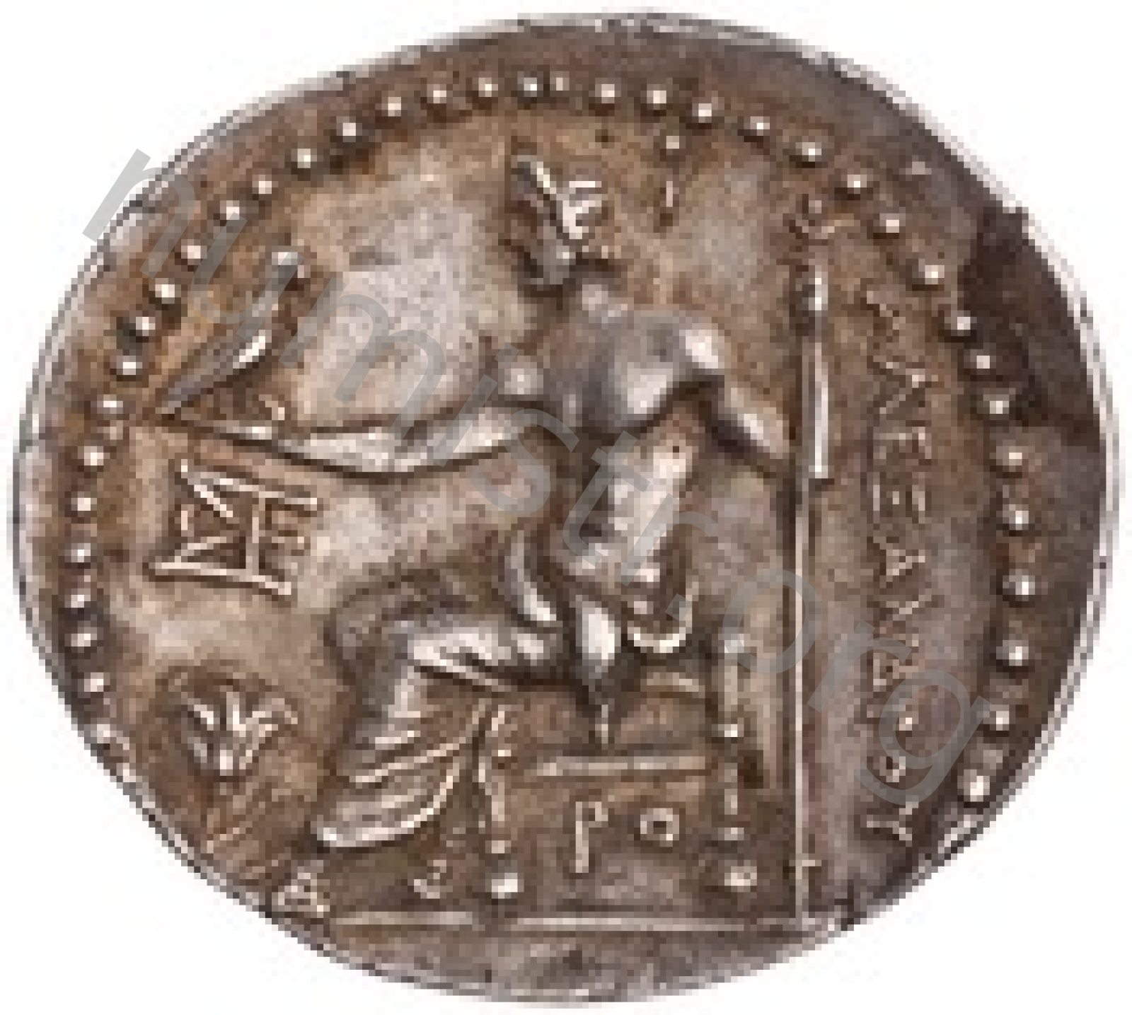 Zeus seated on stool-throne left eagle on outstretched right hand sceptre in left hand -[en]