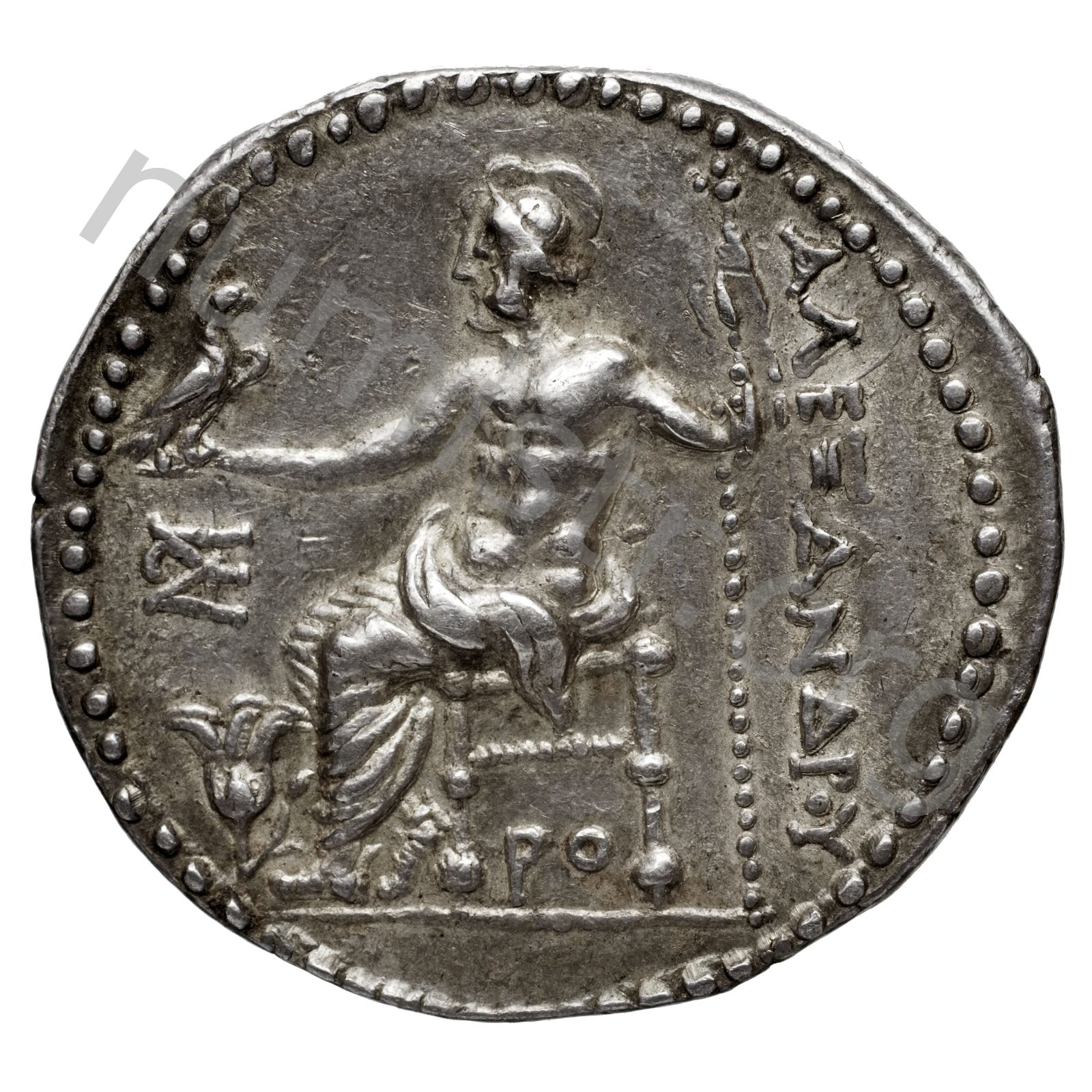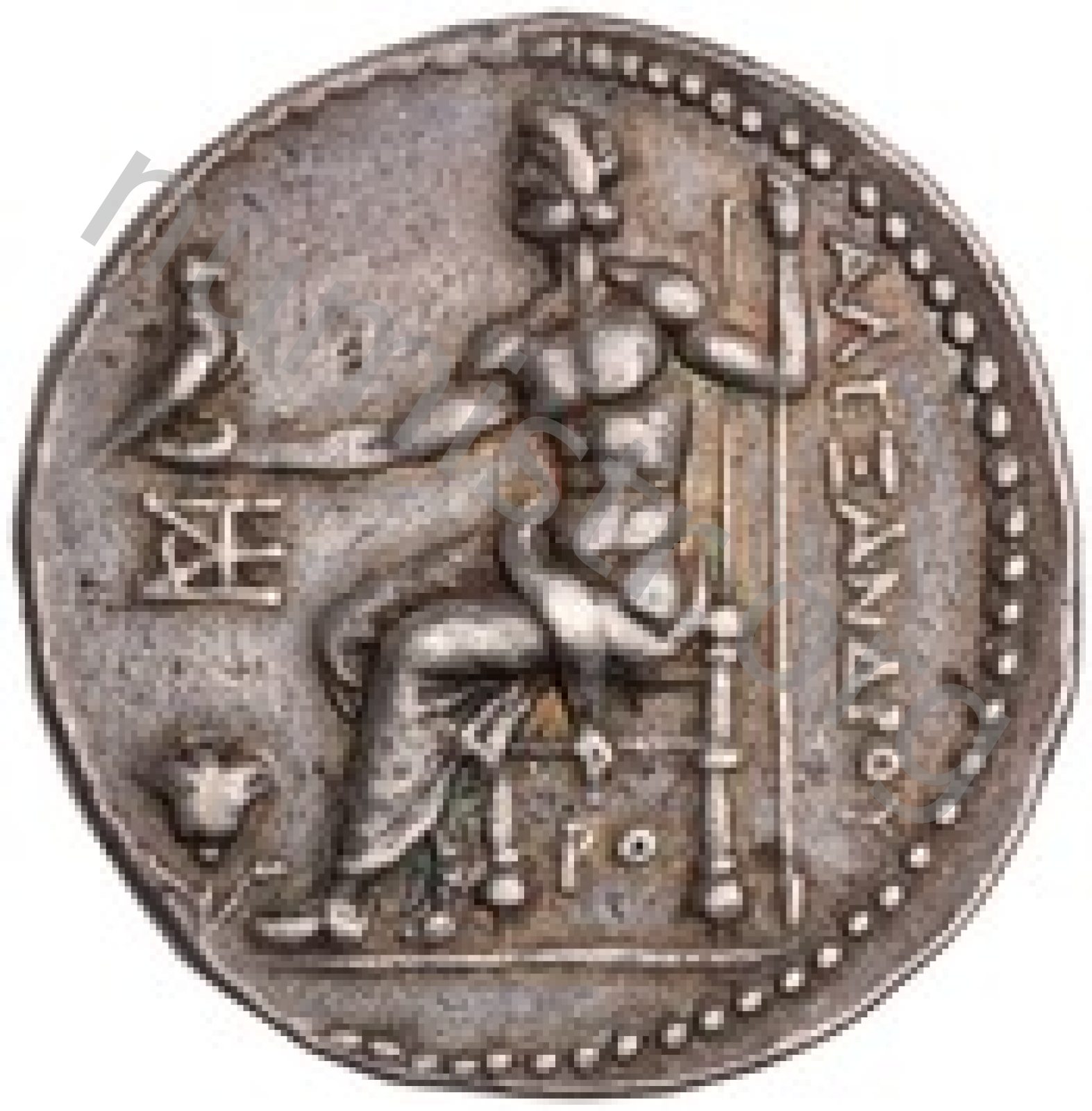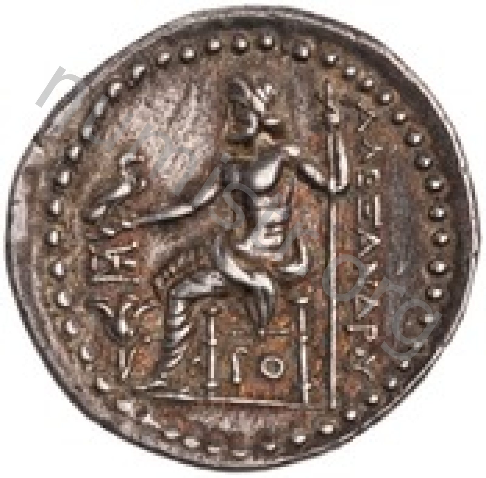 Zeus tabure-tahtta oturuyor sol elinde kartal sağ elinde asa var.