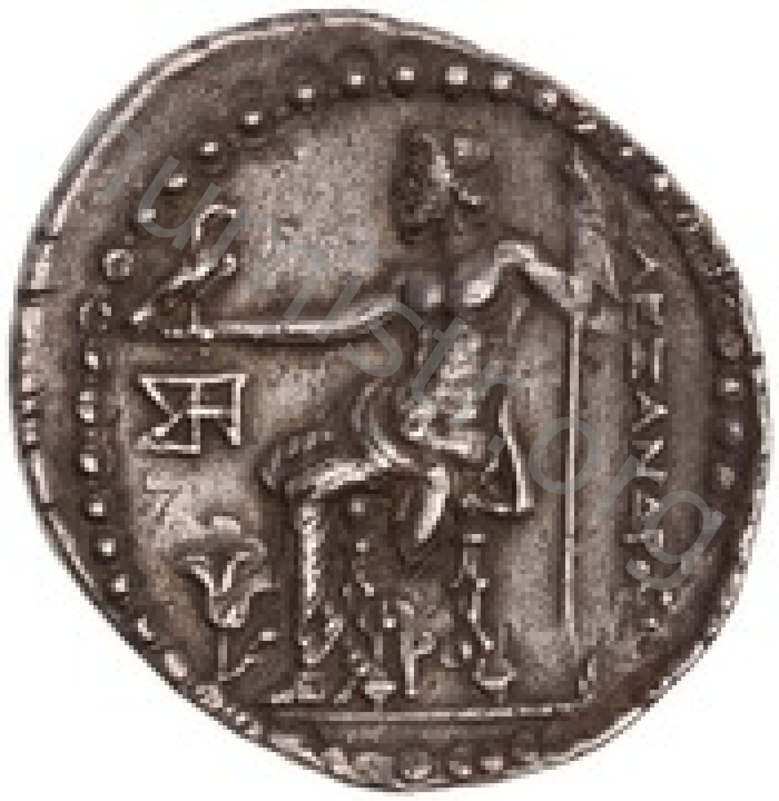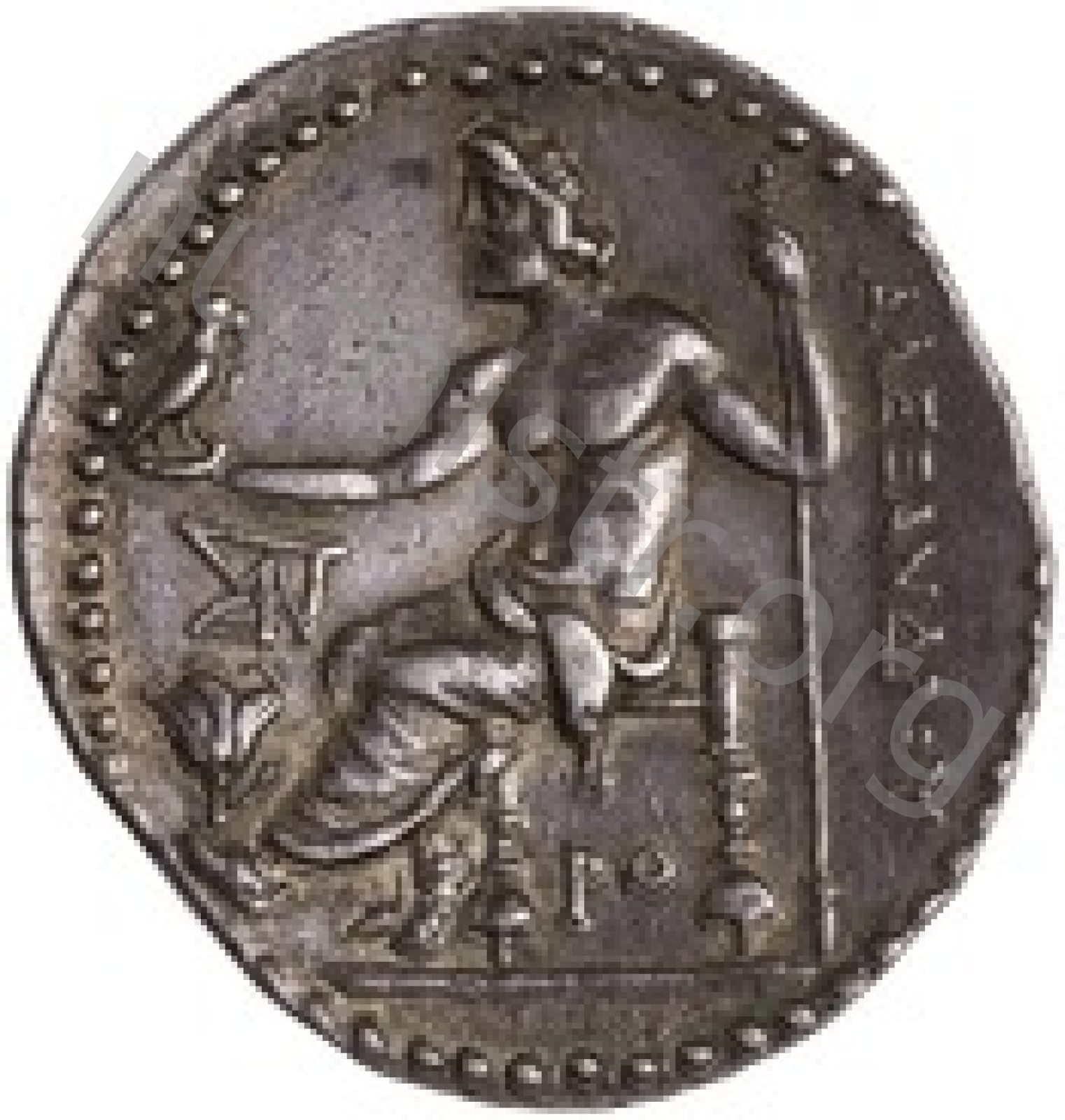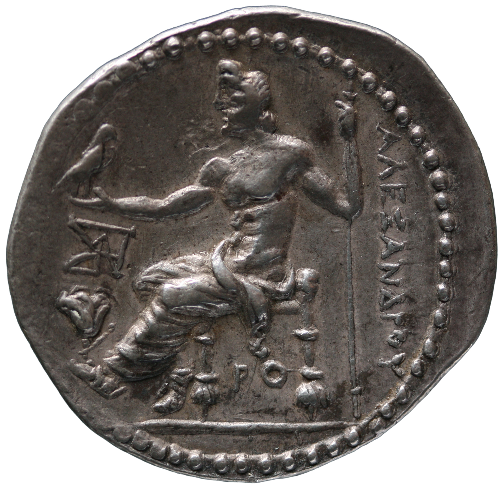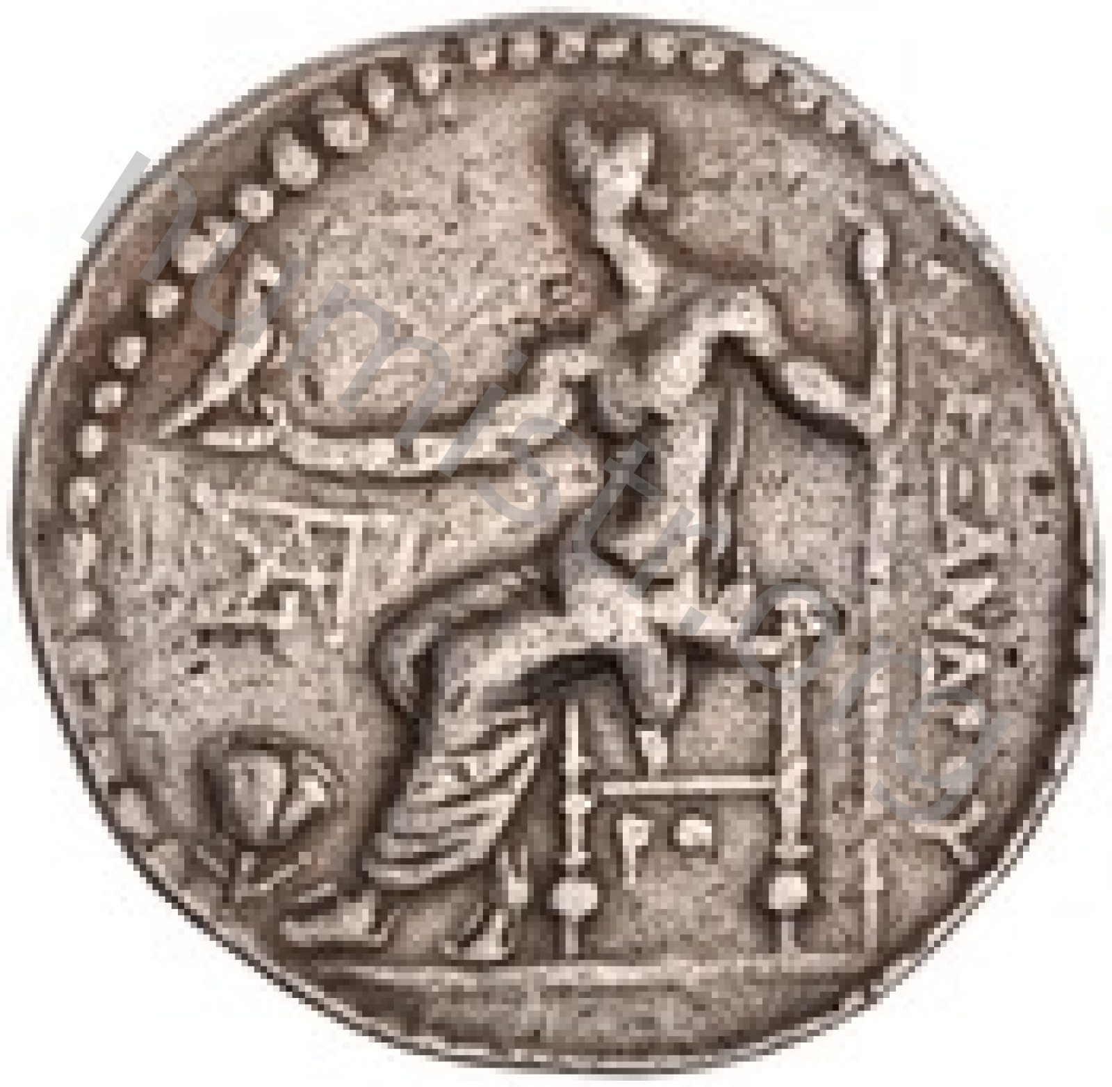 Zeus tabure-tahtta oturuyor sol elinde kartal sağ elinde asa var.