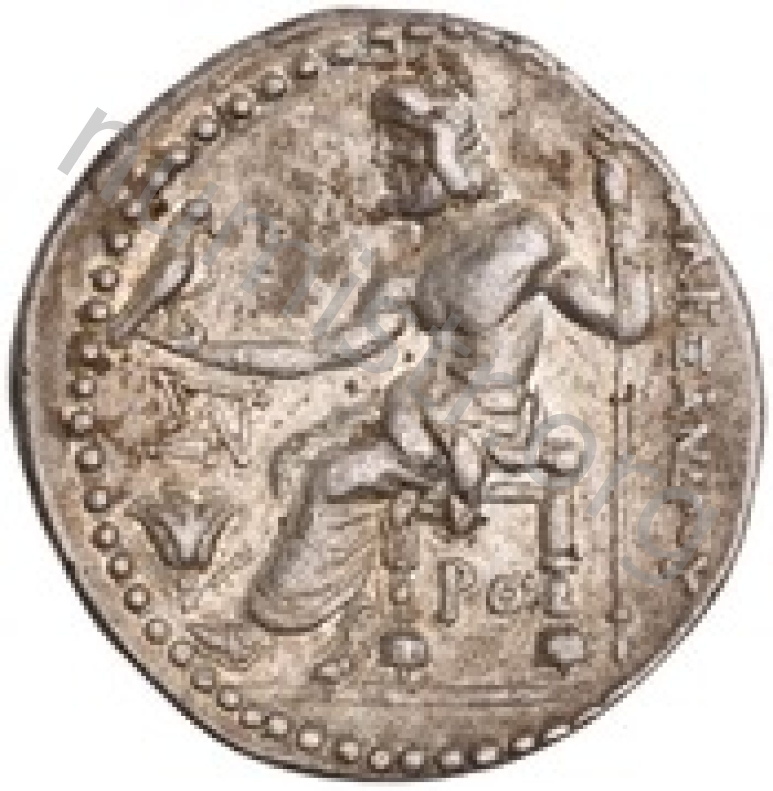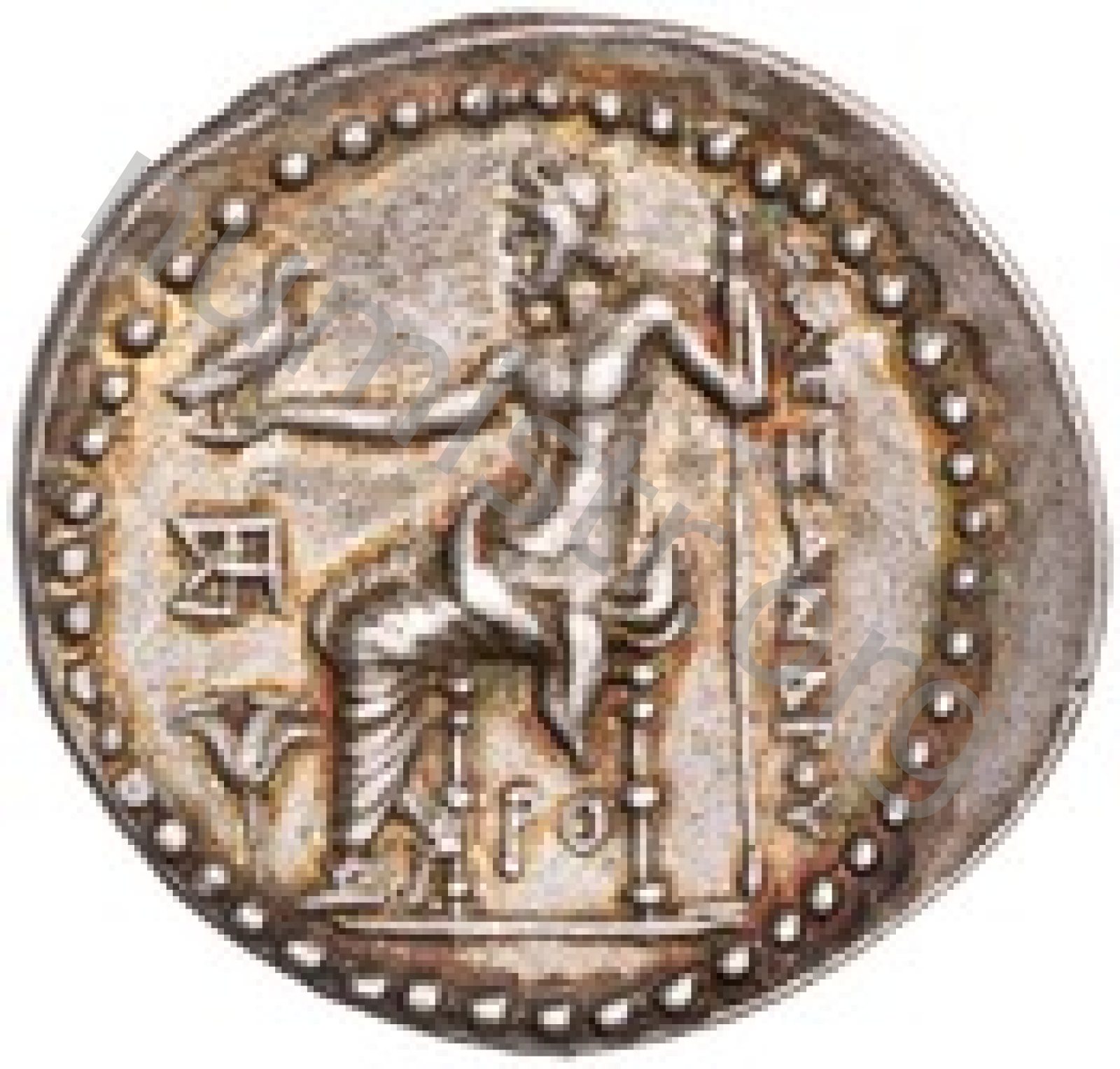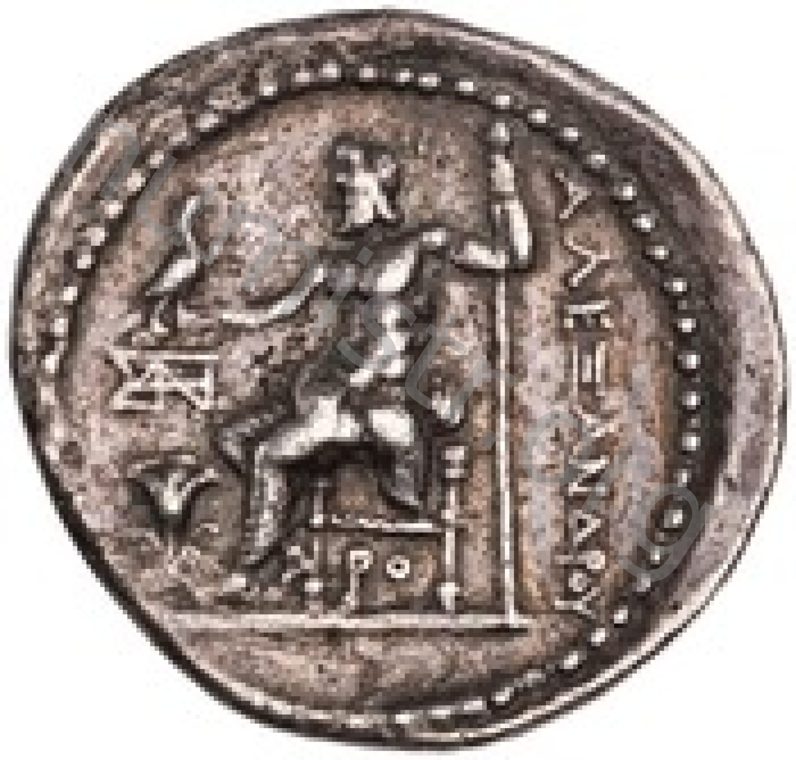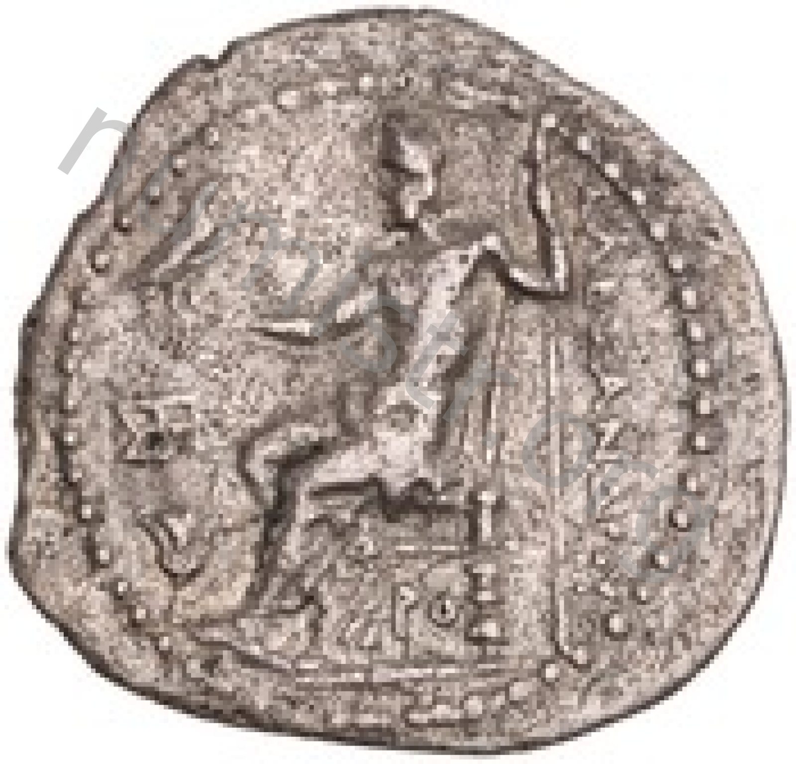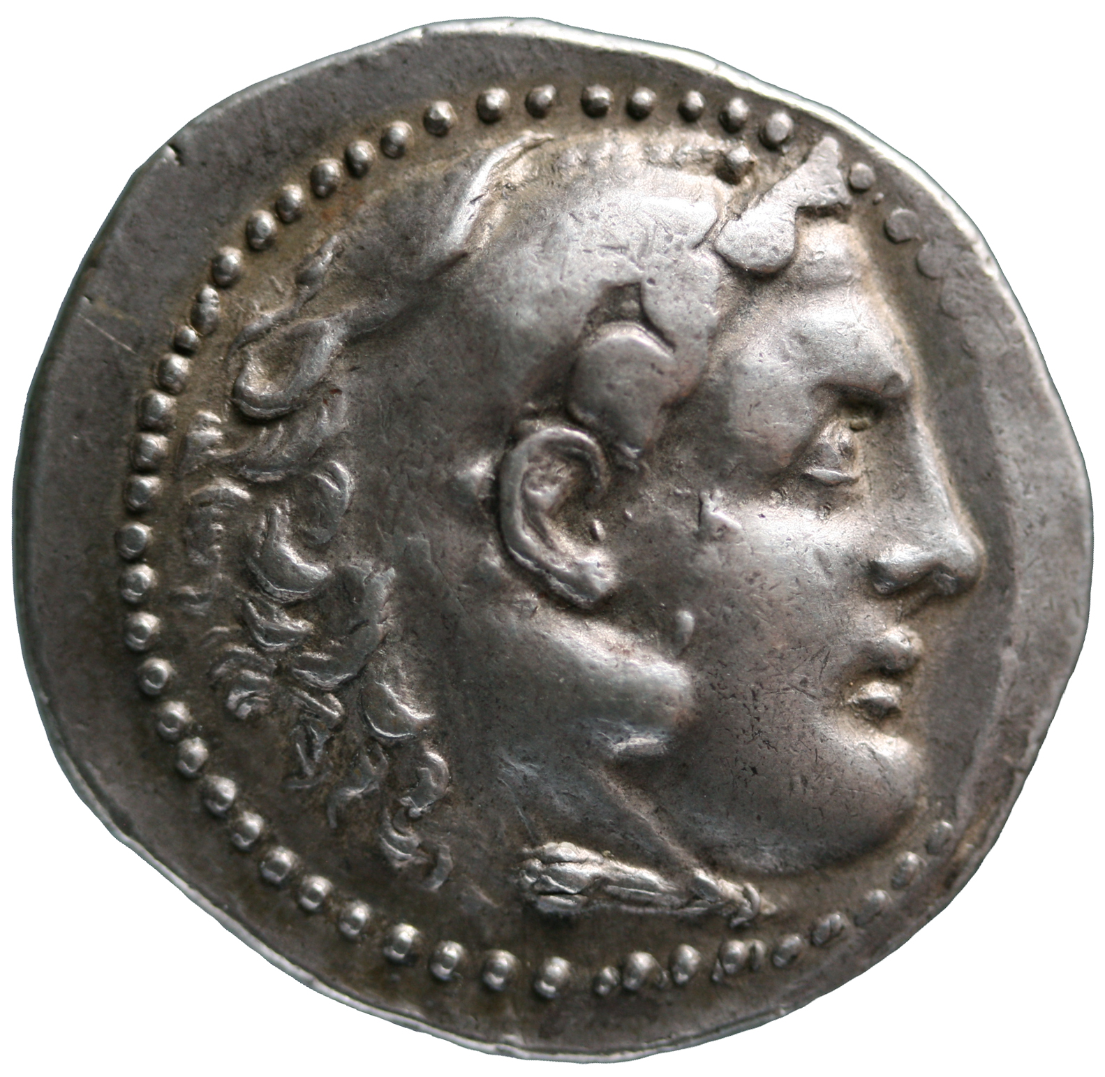 Head of beardless Heracles right wearing lion skin headdress -[en]