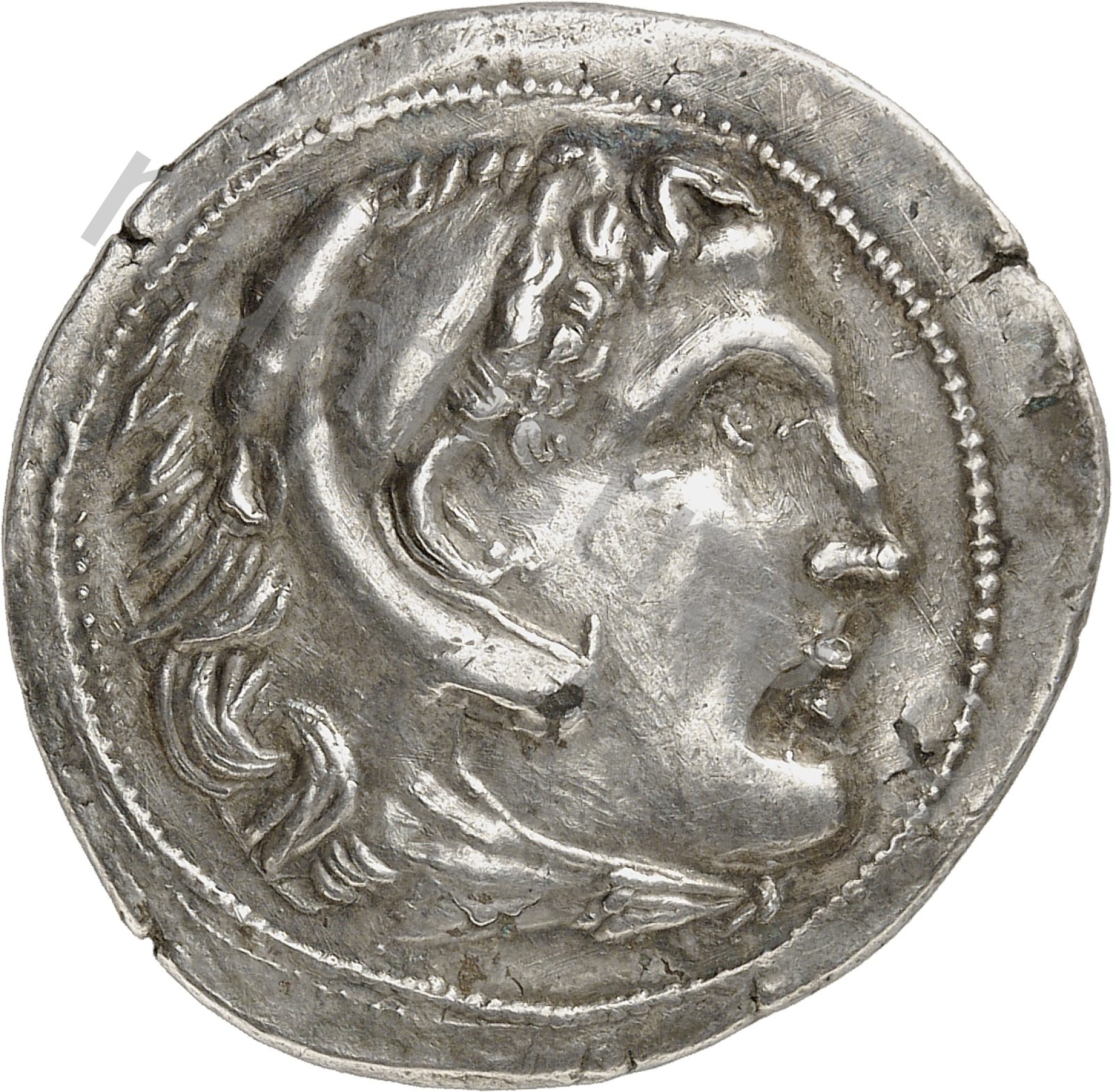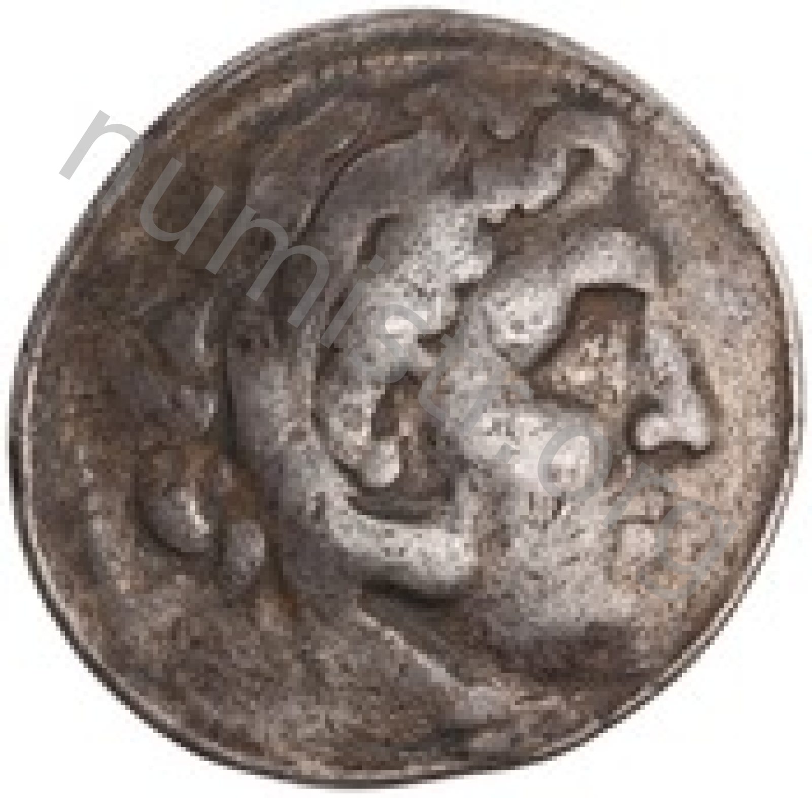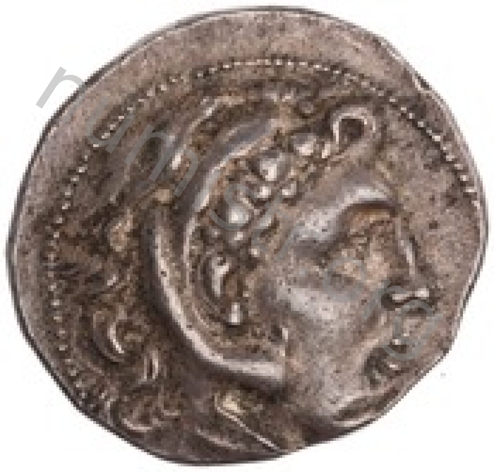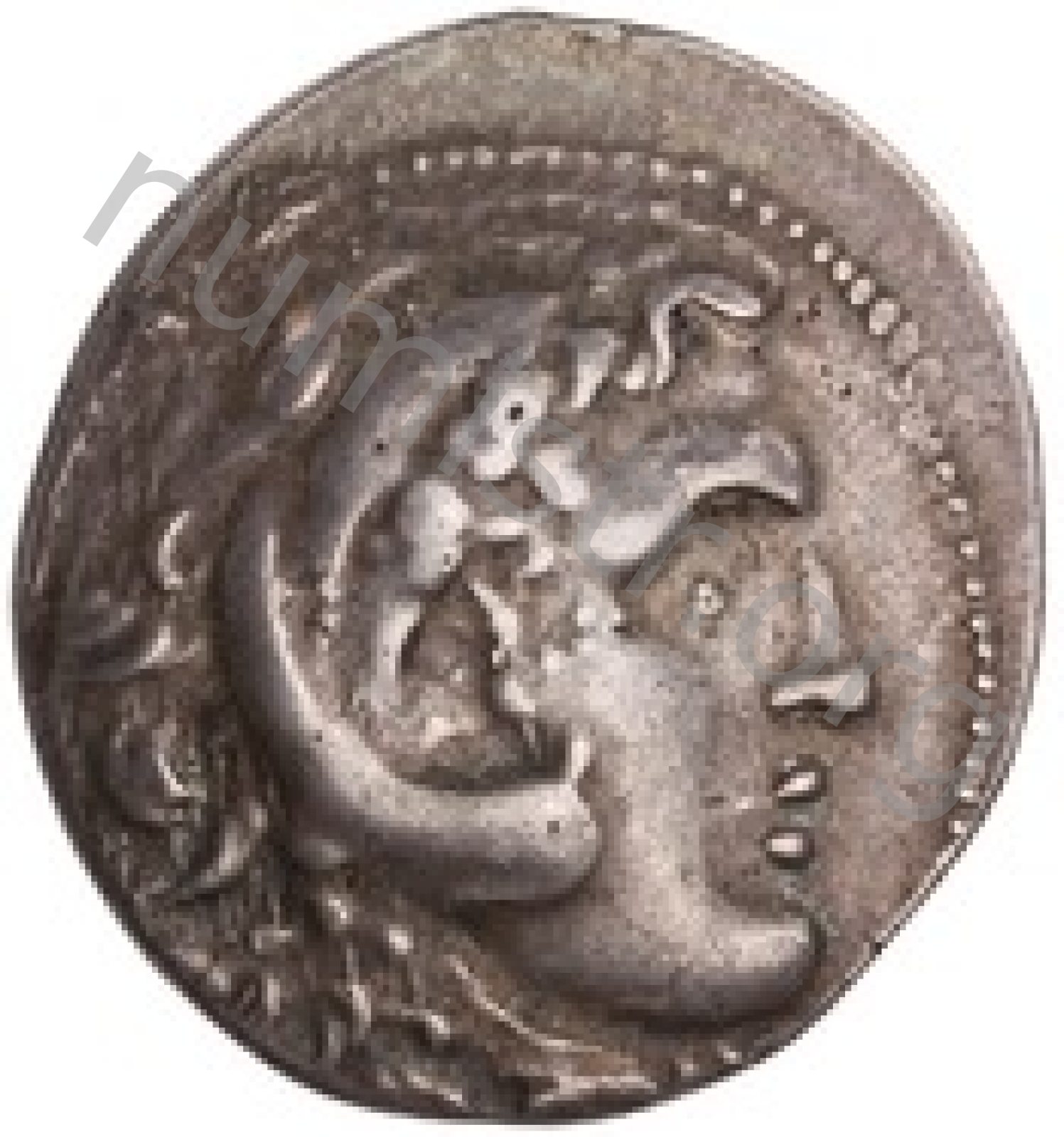 Head of beardless Heracles right wearing lion skin headdress -[en]