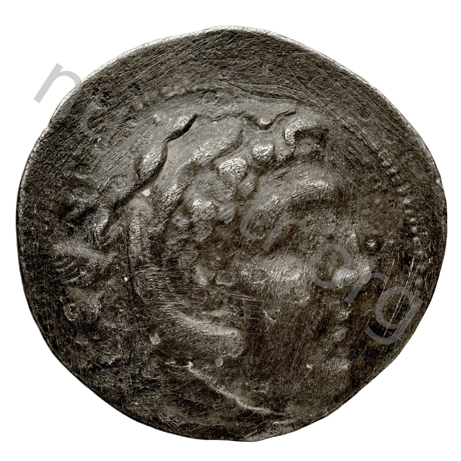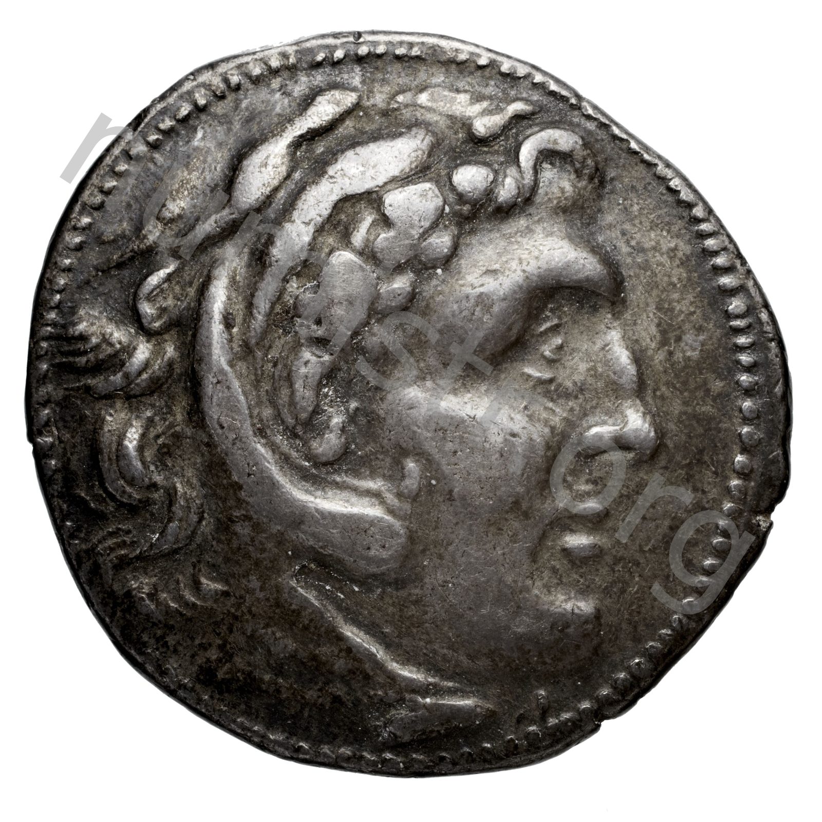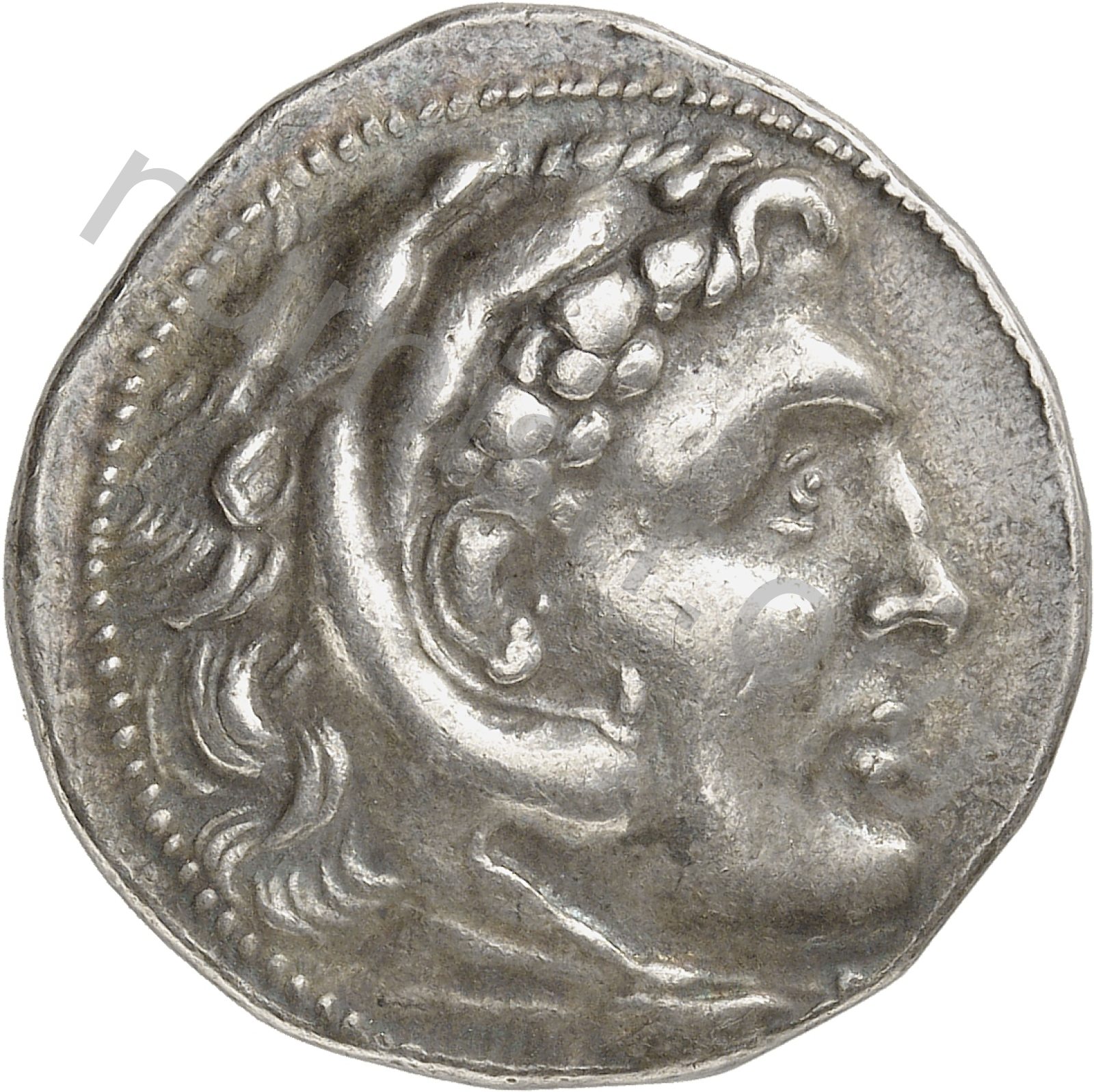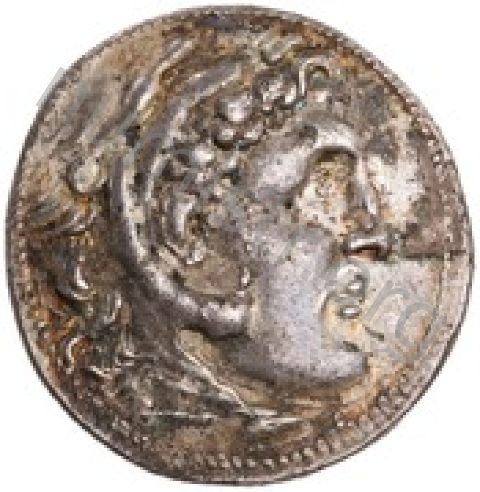 Head of beardless Heracles right wearing lion skin headdress -[en]