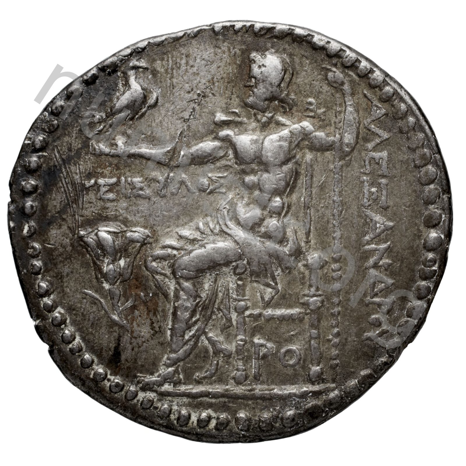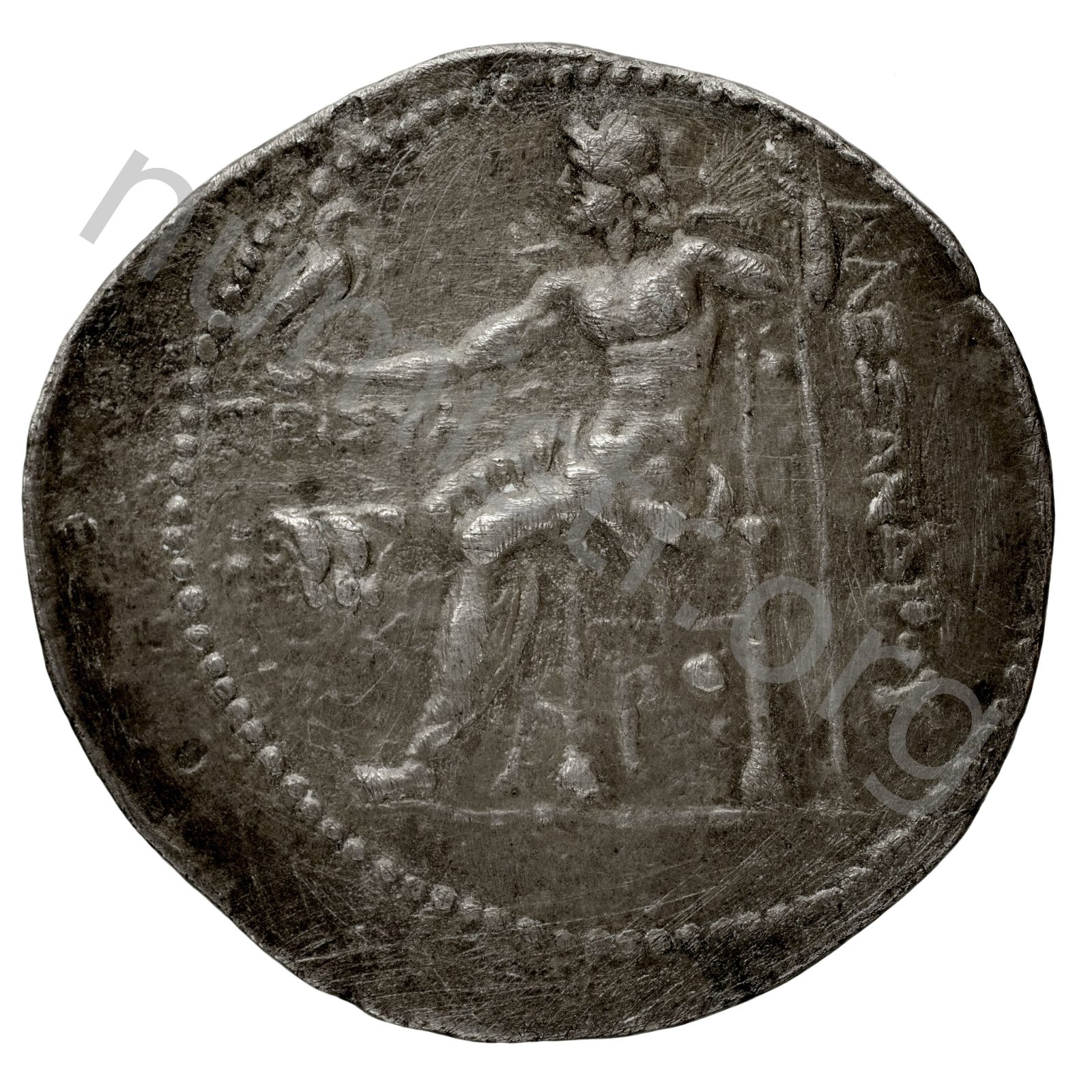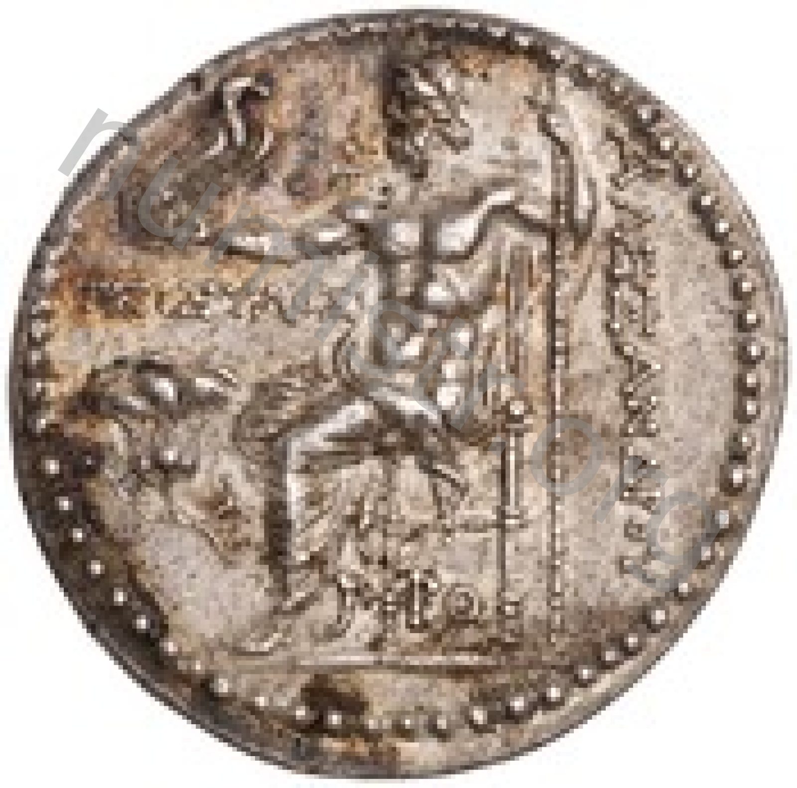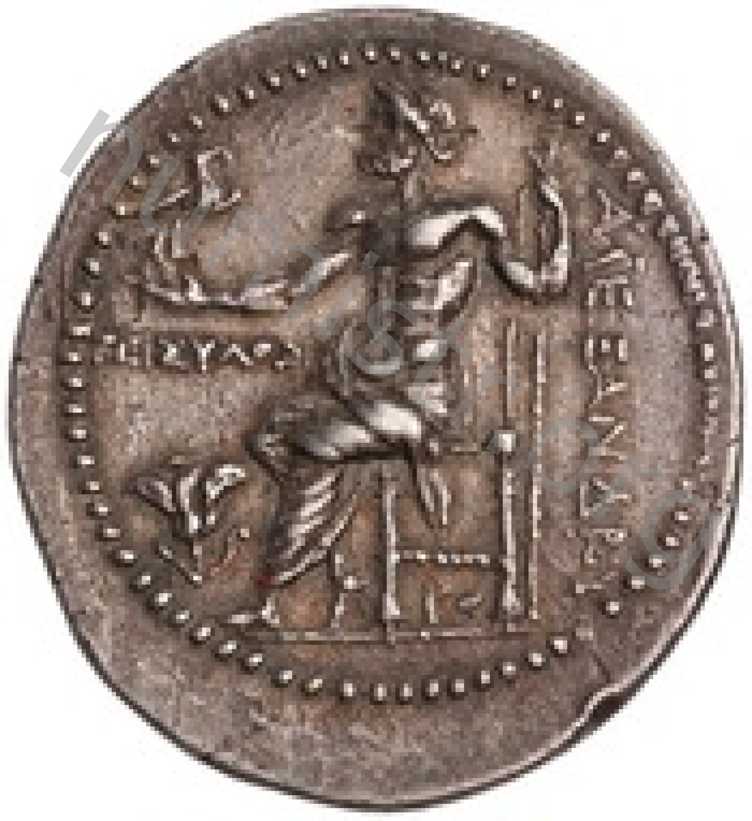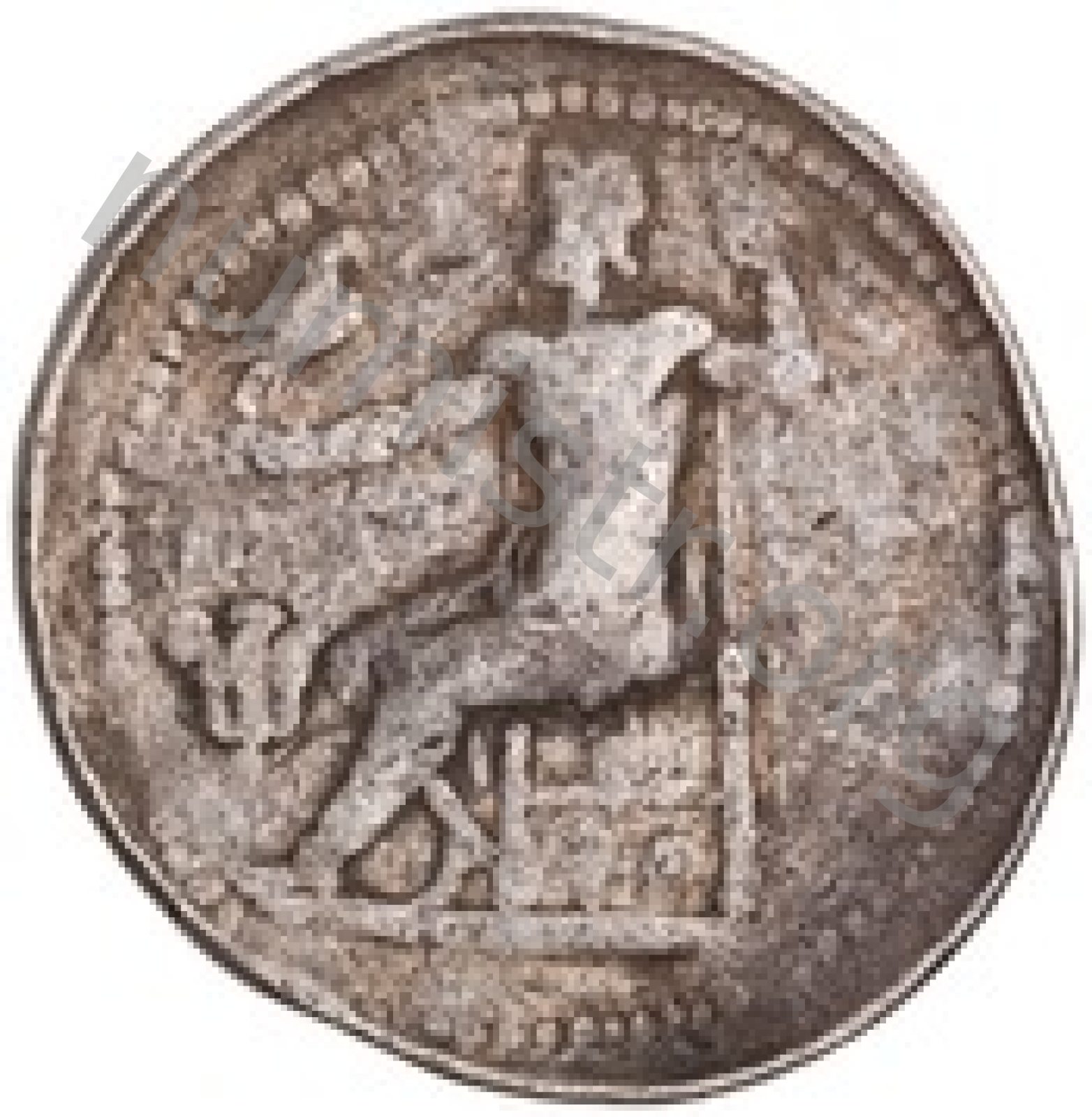 Zeus tabure-tahtta oturuyor sol elinde kartal sağ elinde asa var.