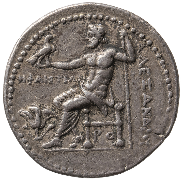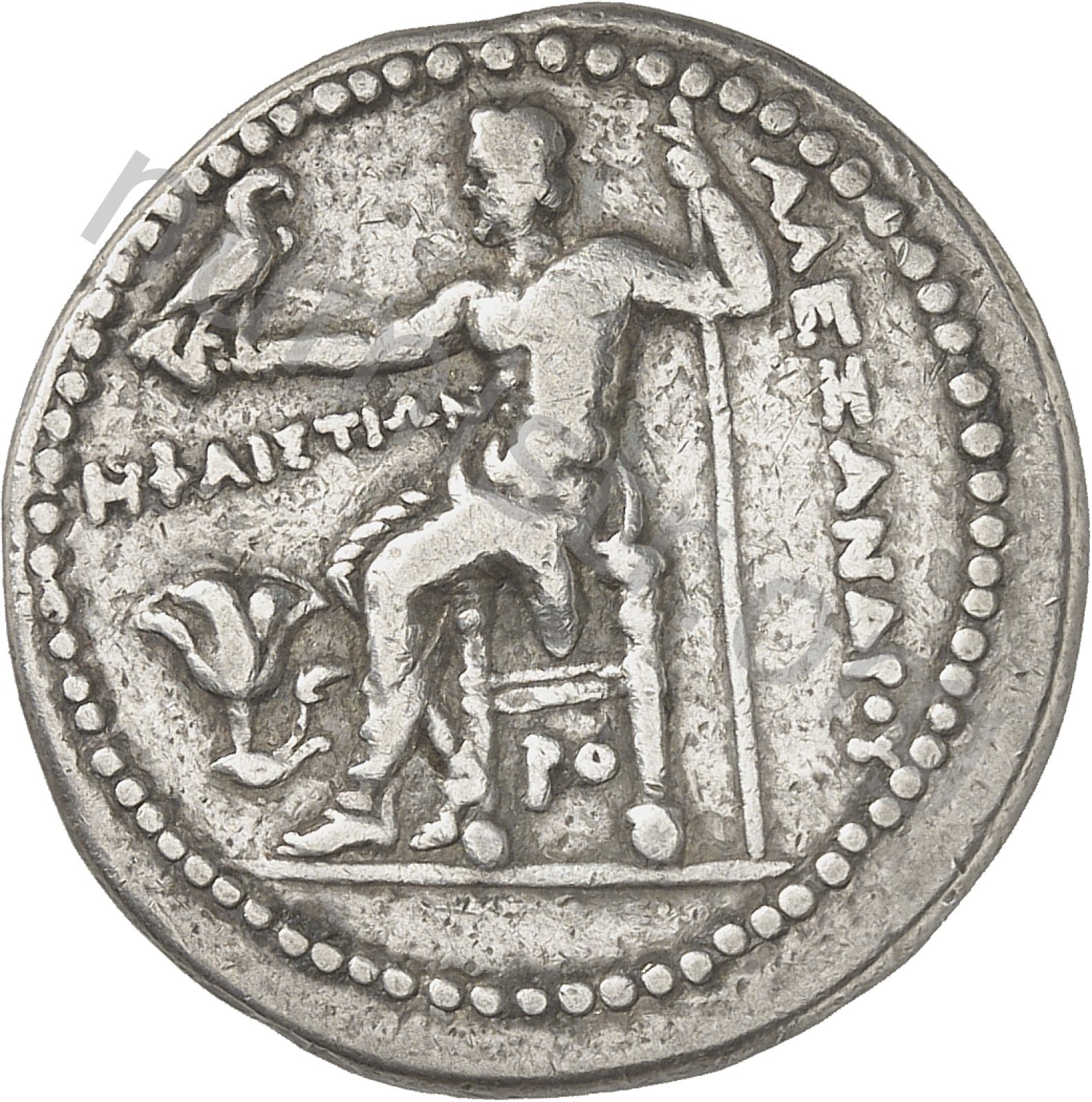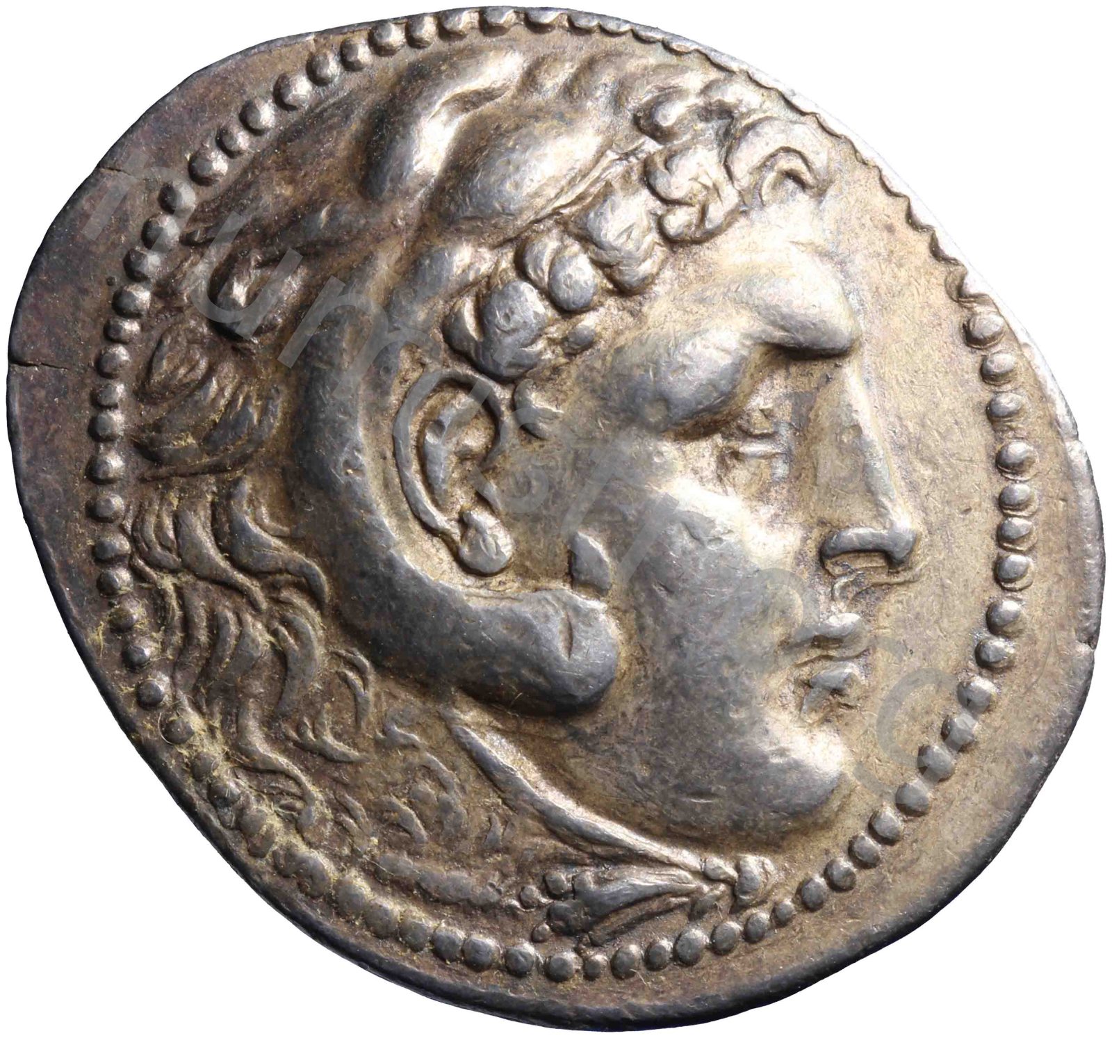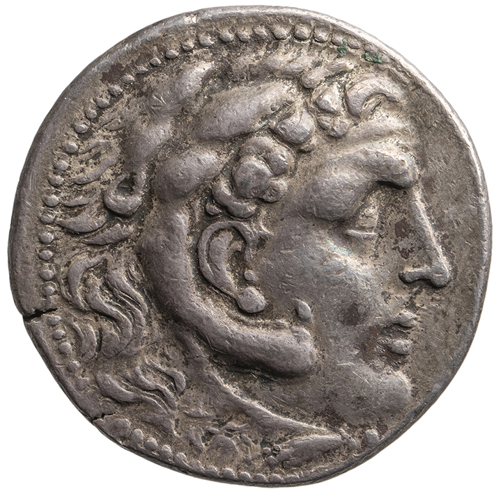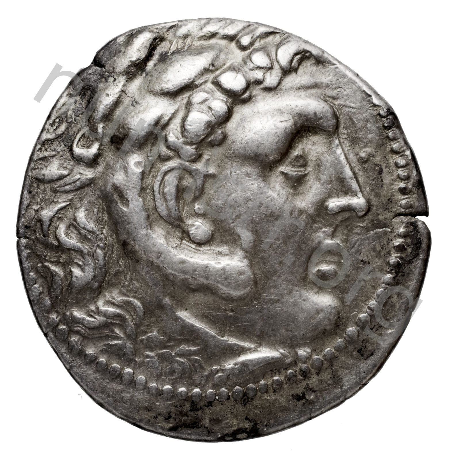 Head of beardless Heracles right wearing lion skin headdress -[en]