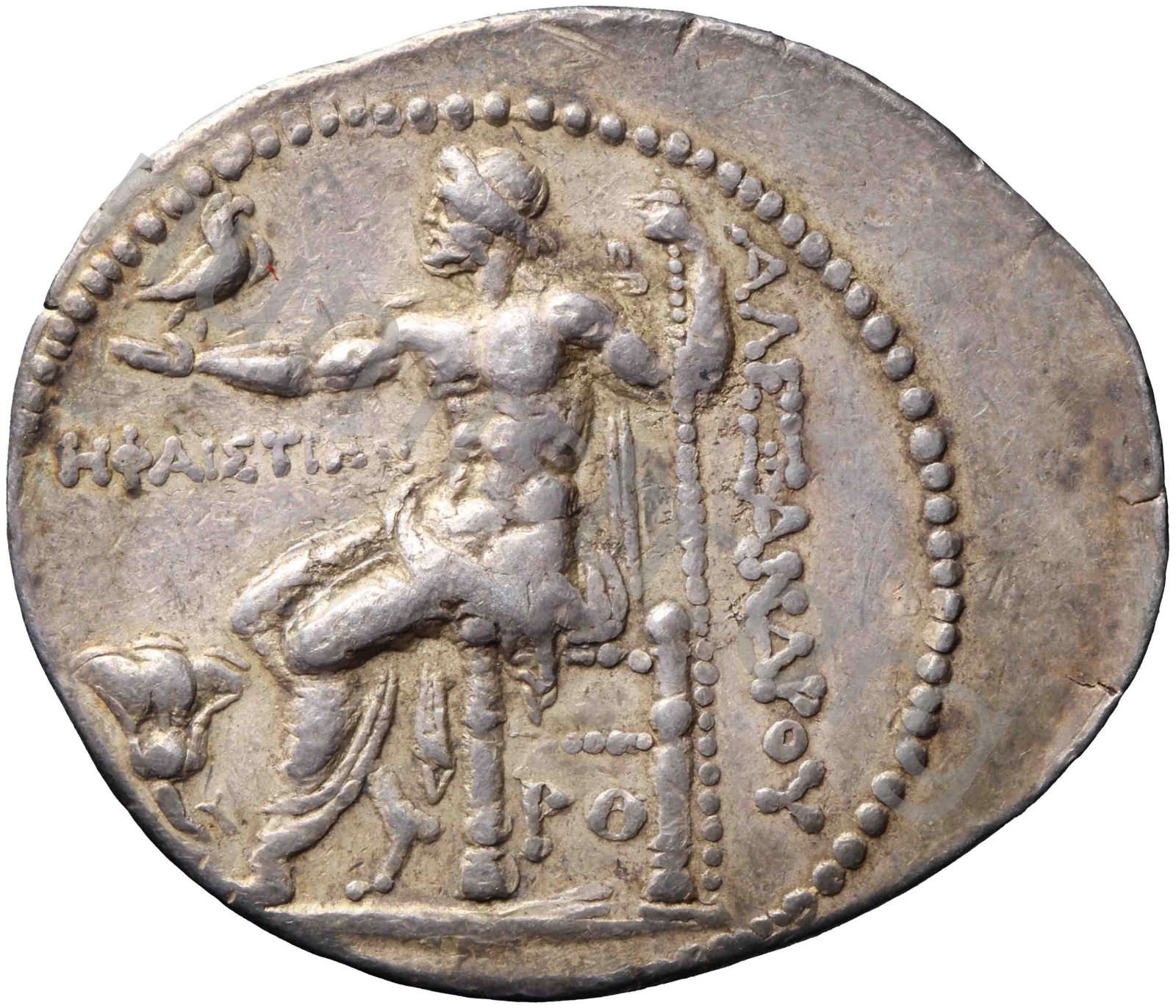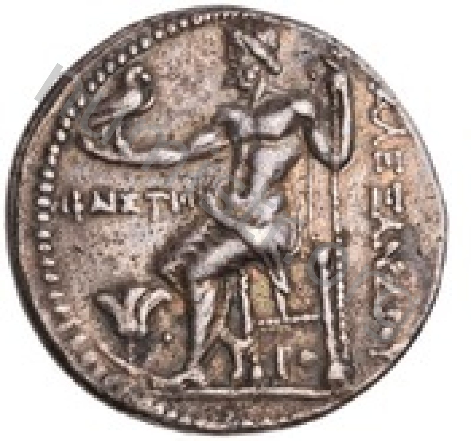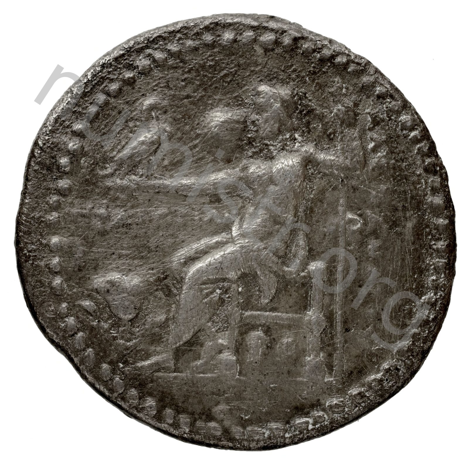 Zeus tabure-tahtta oturuyor sol elinde kartal sağ elinde asa var.