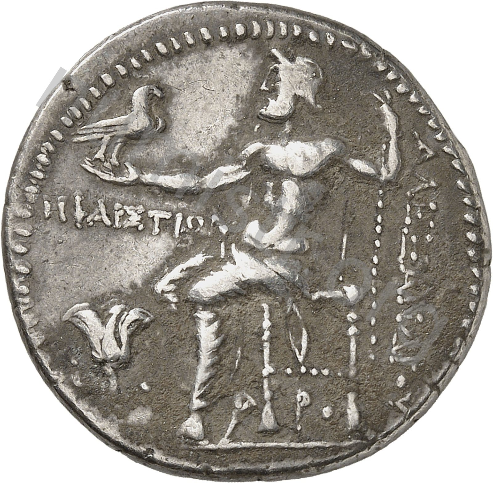 Zeus seated on stool-throne left eagle on outstretched right hand sceptre in left hand -[en]