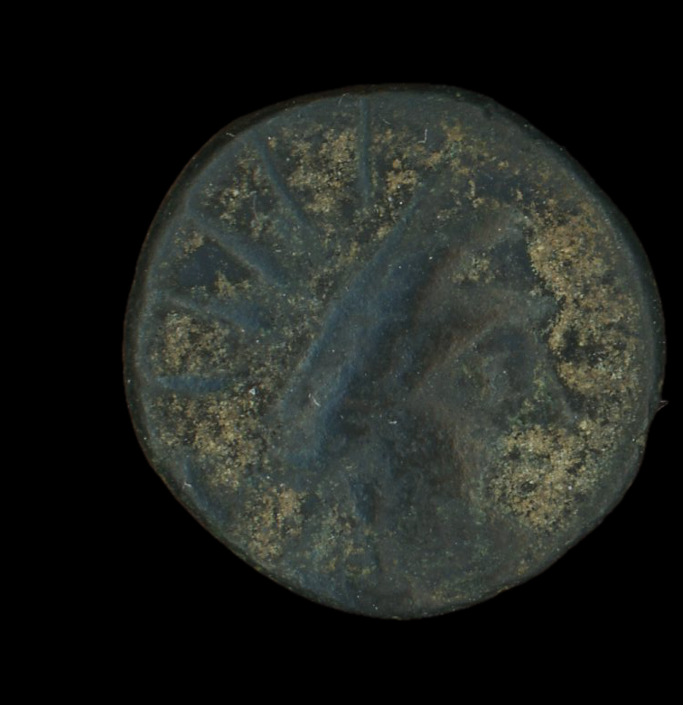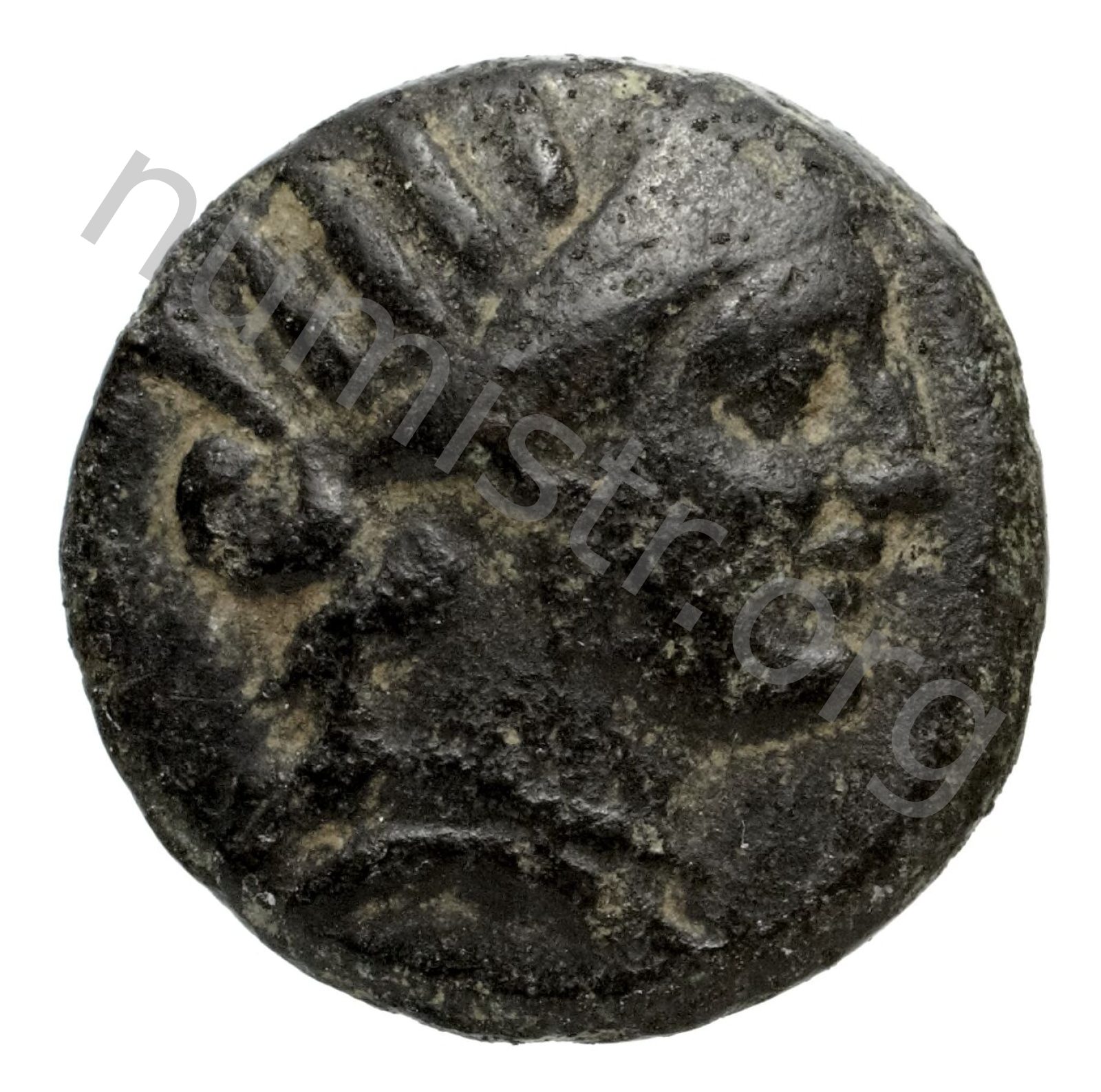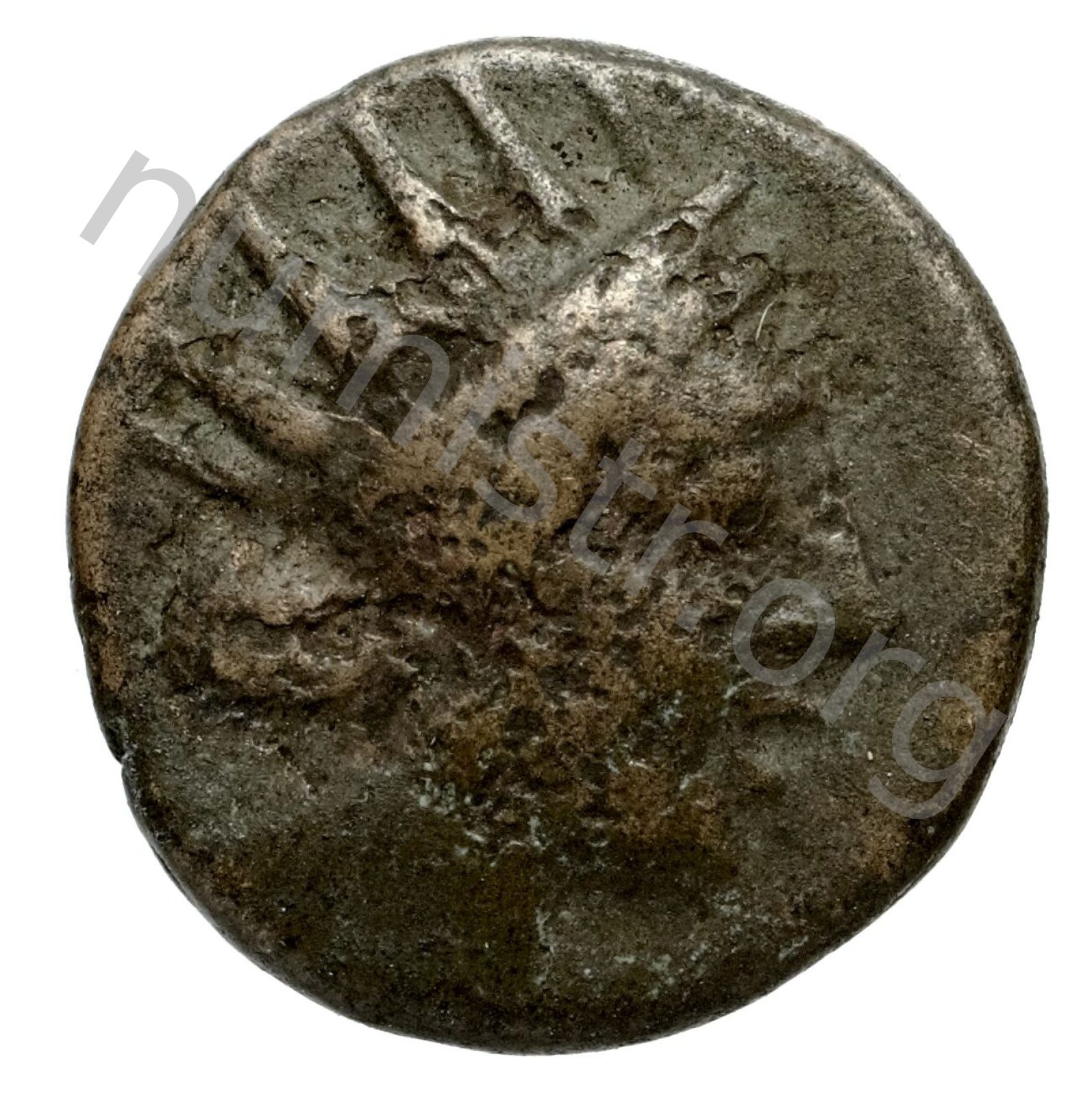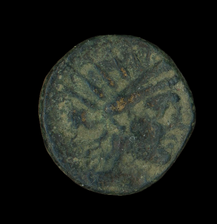 Head of Helios wearing a radiate crown and a stephane (crown) -[en]