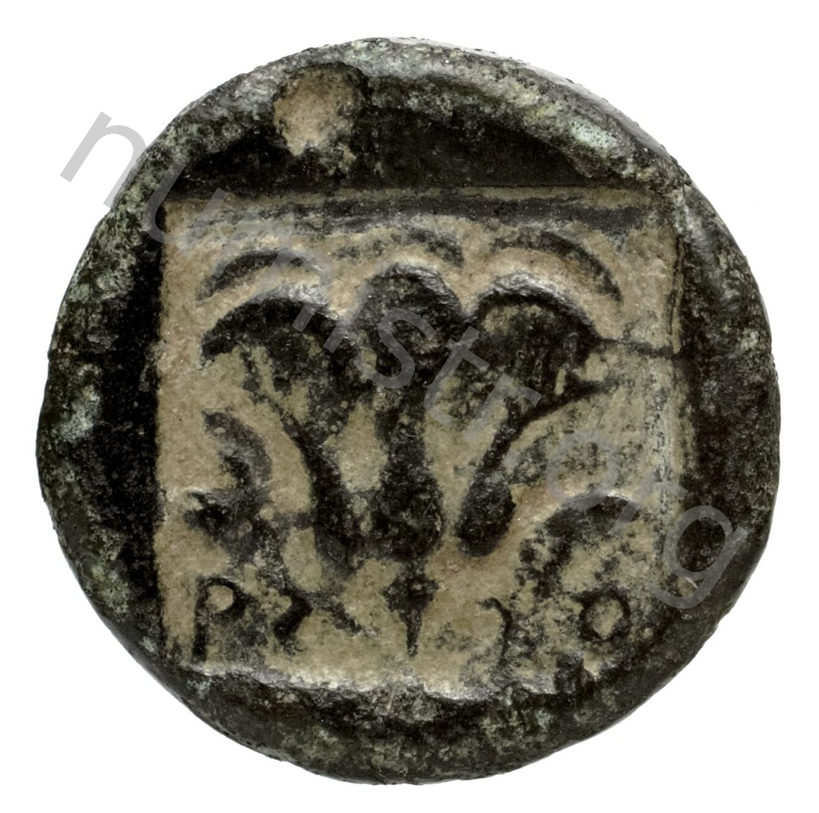 Rose between two buds in an incuse square -[en]