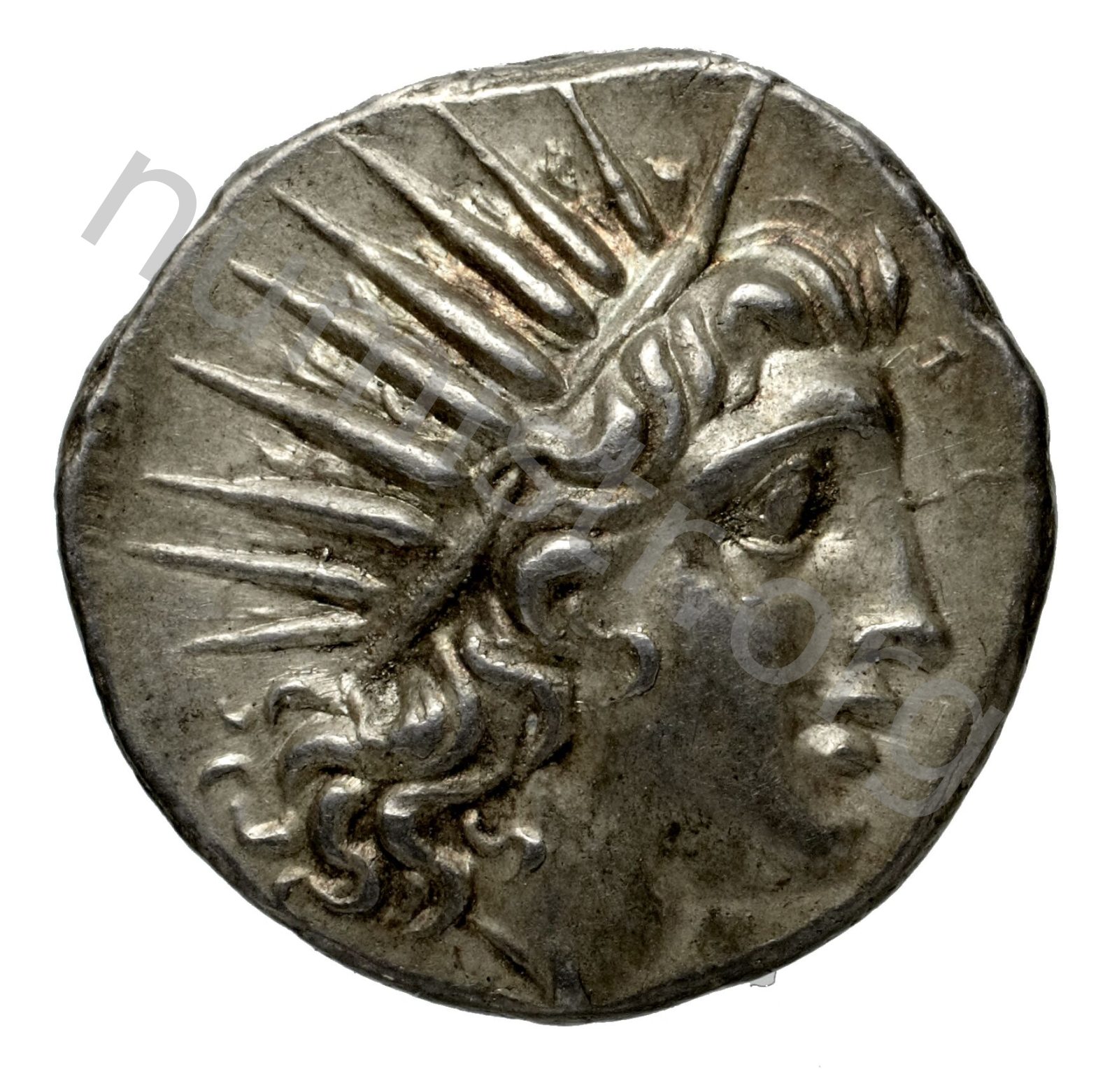 Head of Helios wearing a radiate crown -[en]