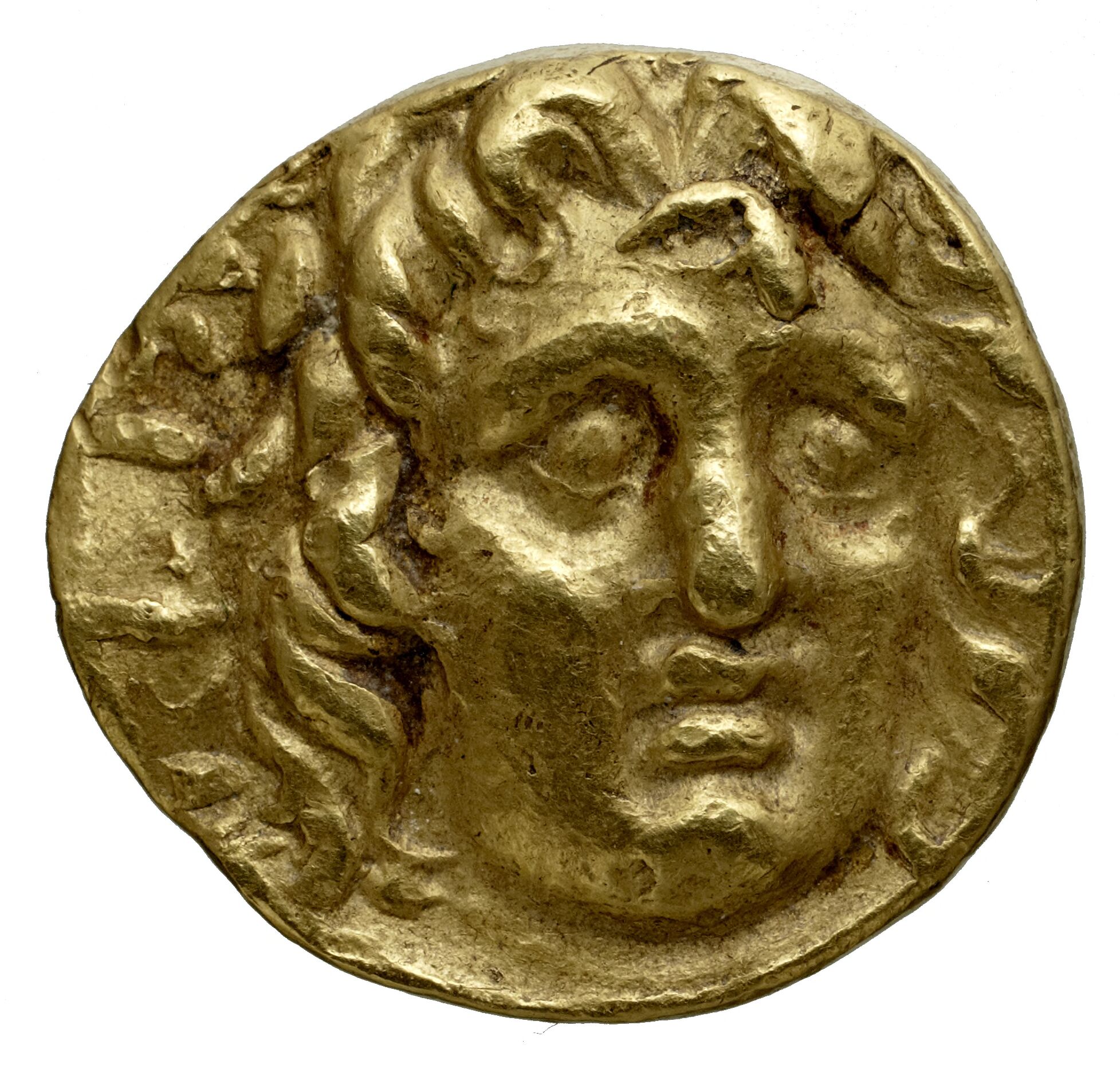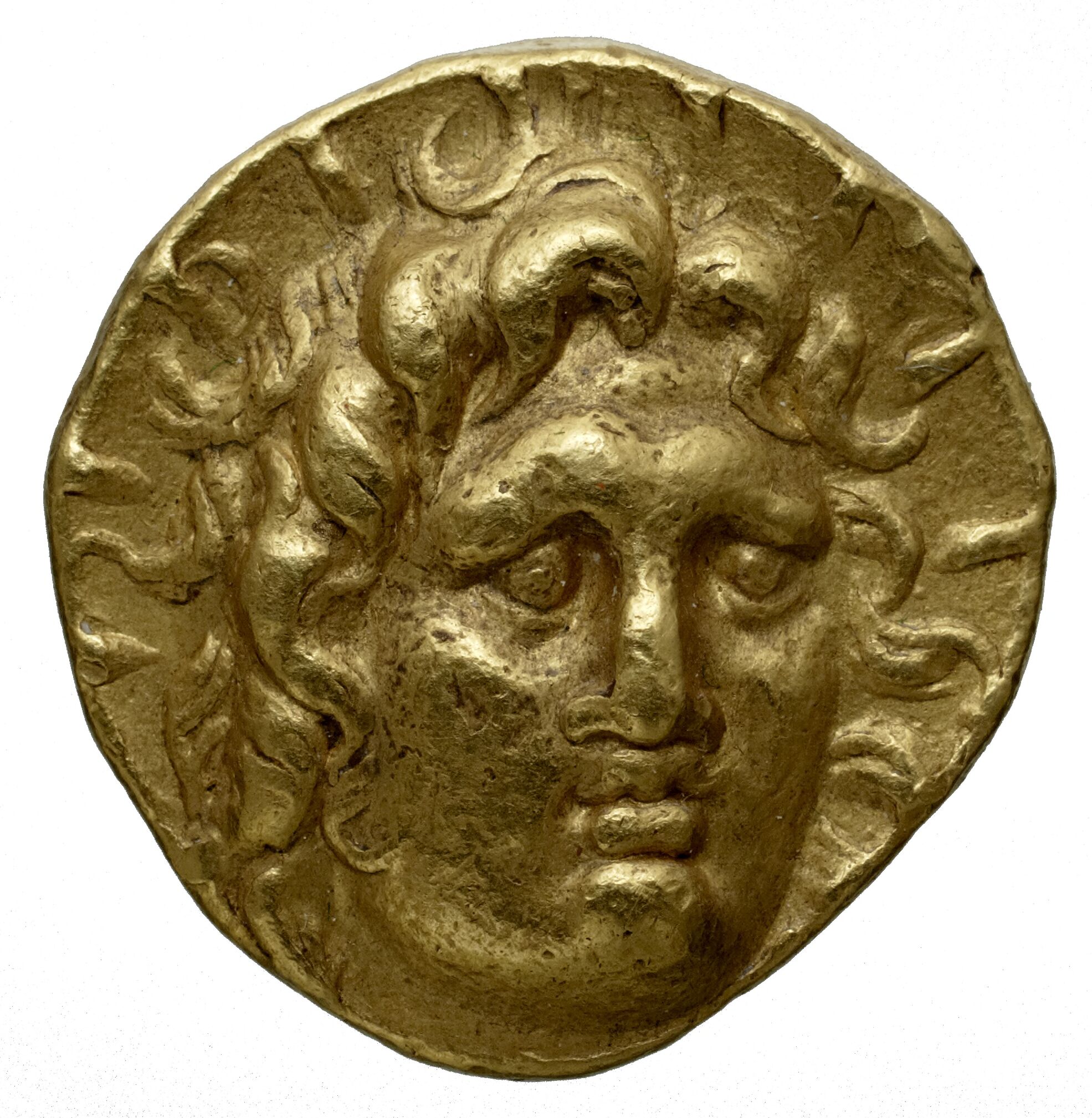Head of Helios three-quarters facing wearing a radiate crown -[en]