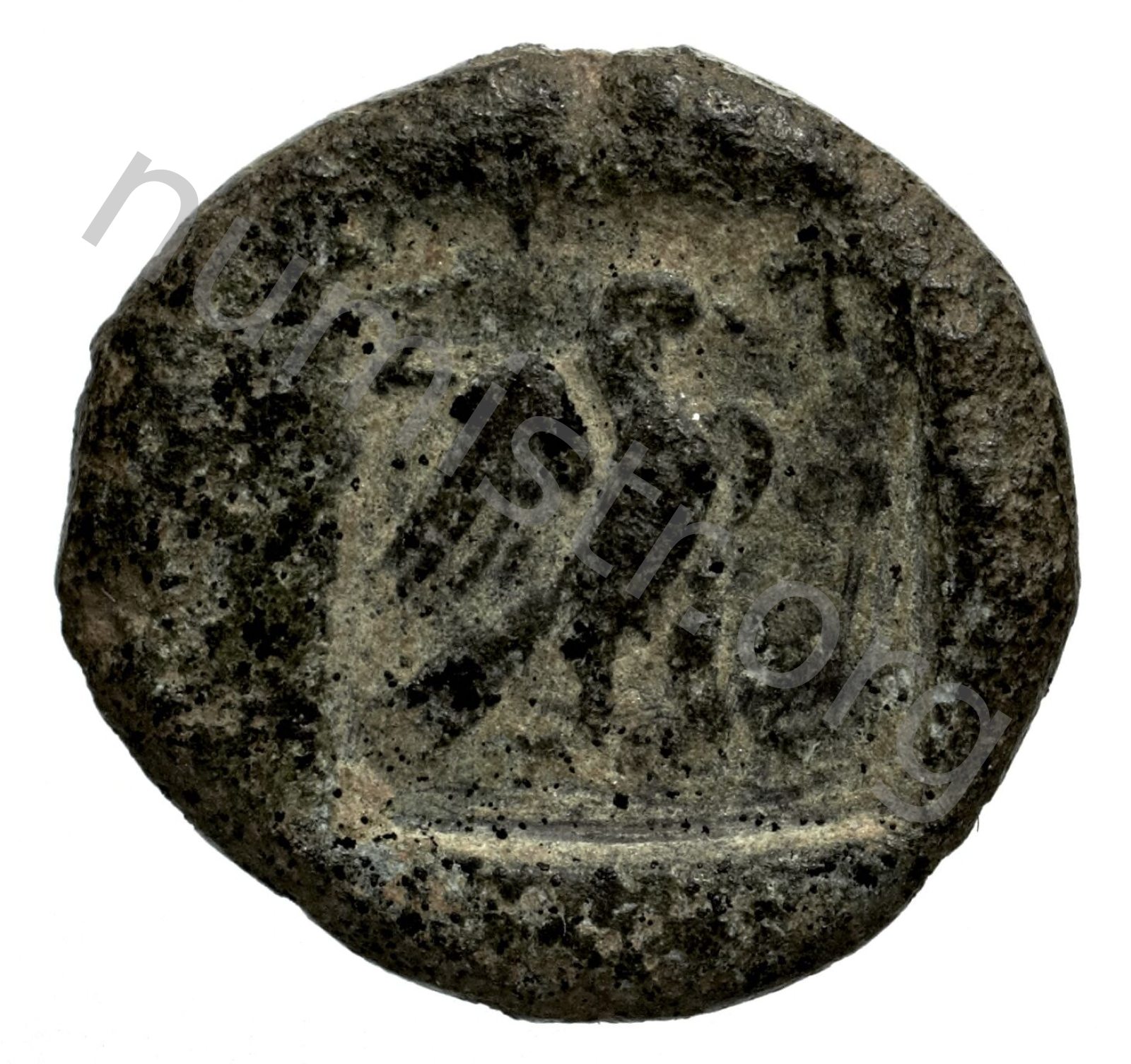 Eagle on a torch wings outstretched in an incuse square -[en]