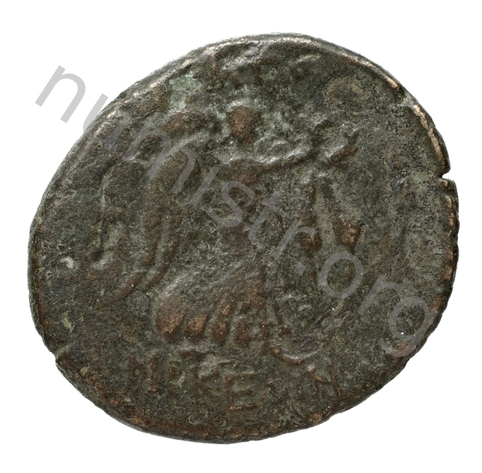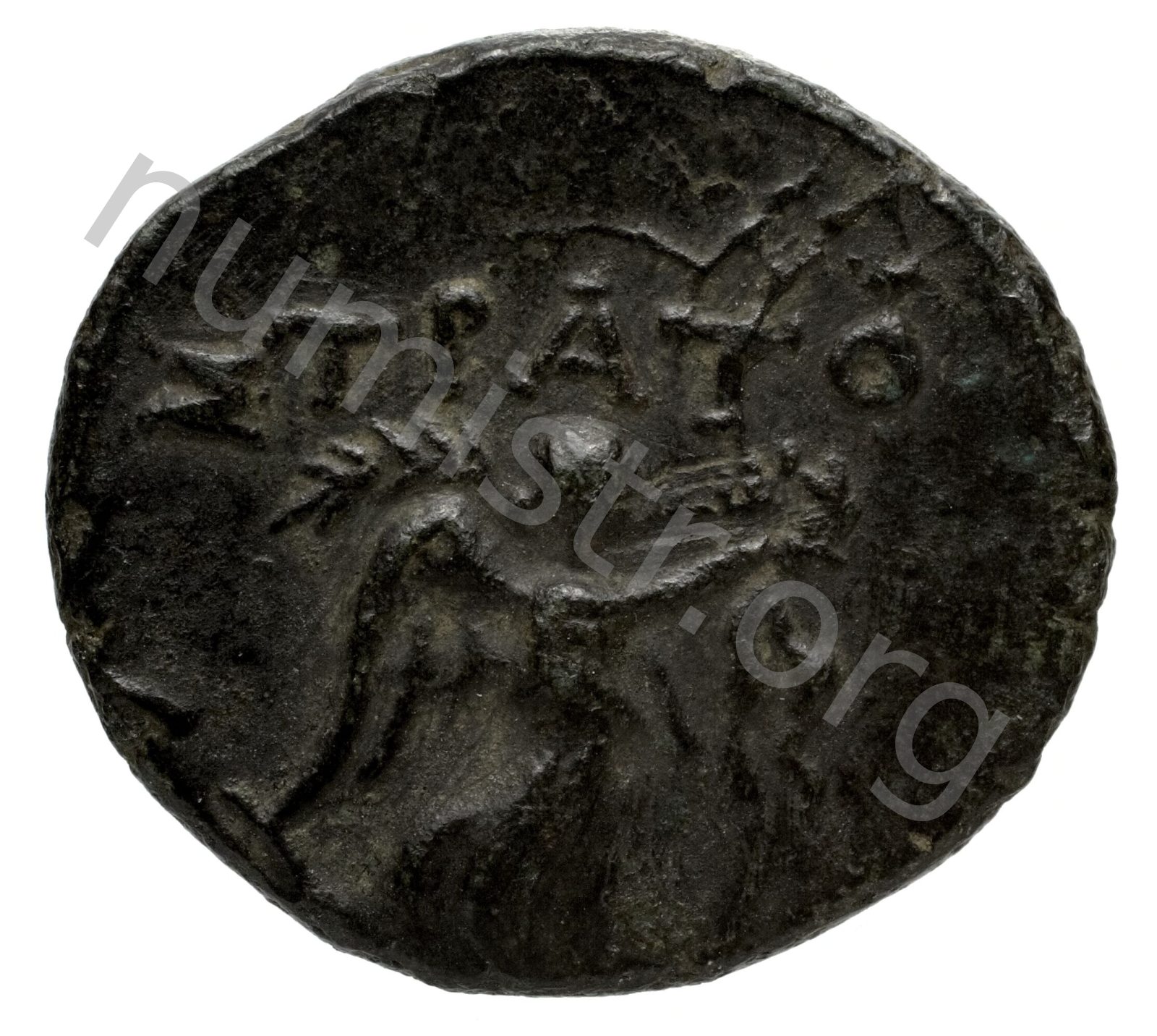 Nike advancing holding a wreath and a palm over her shoulder -[en]