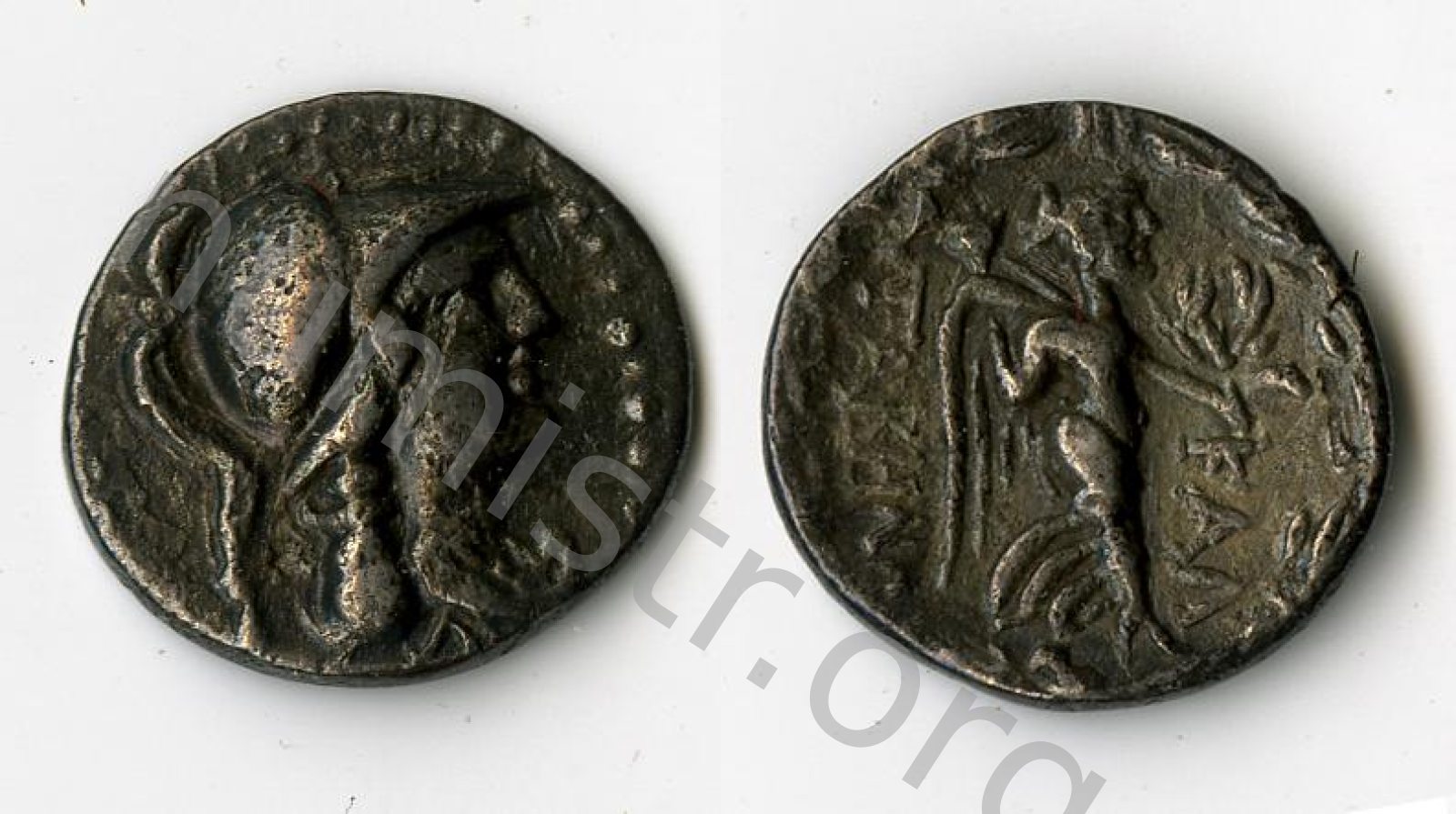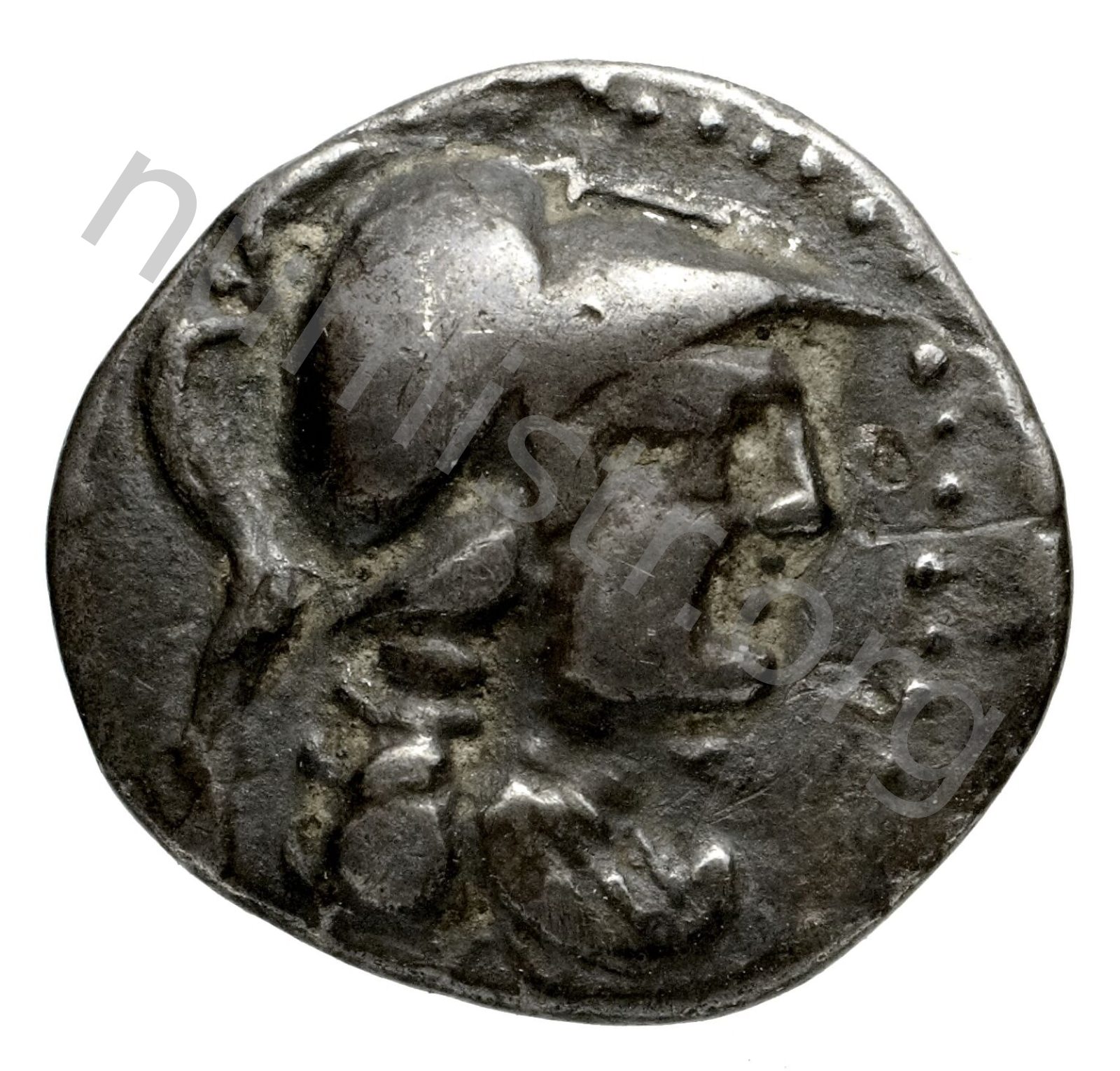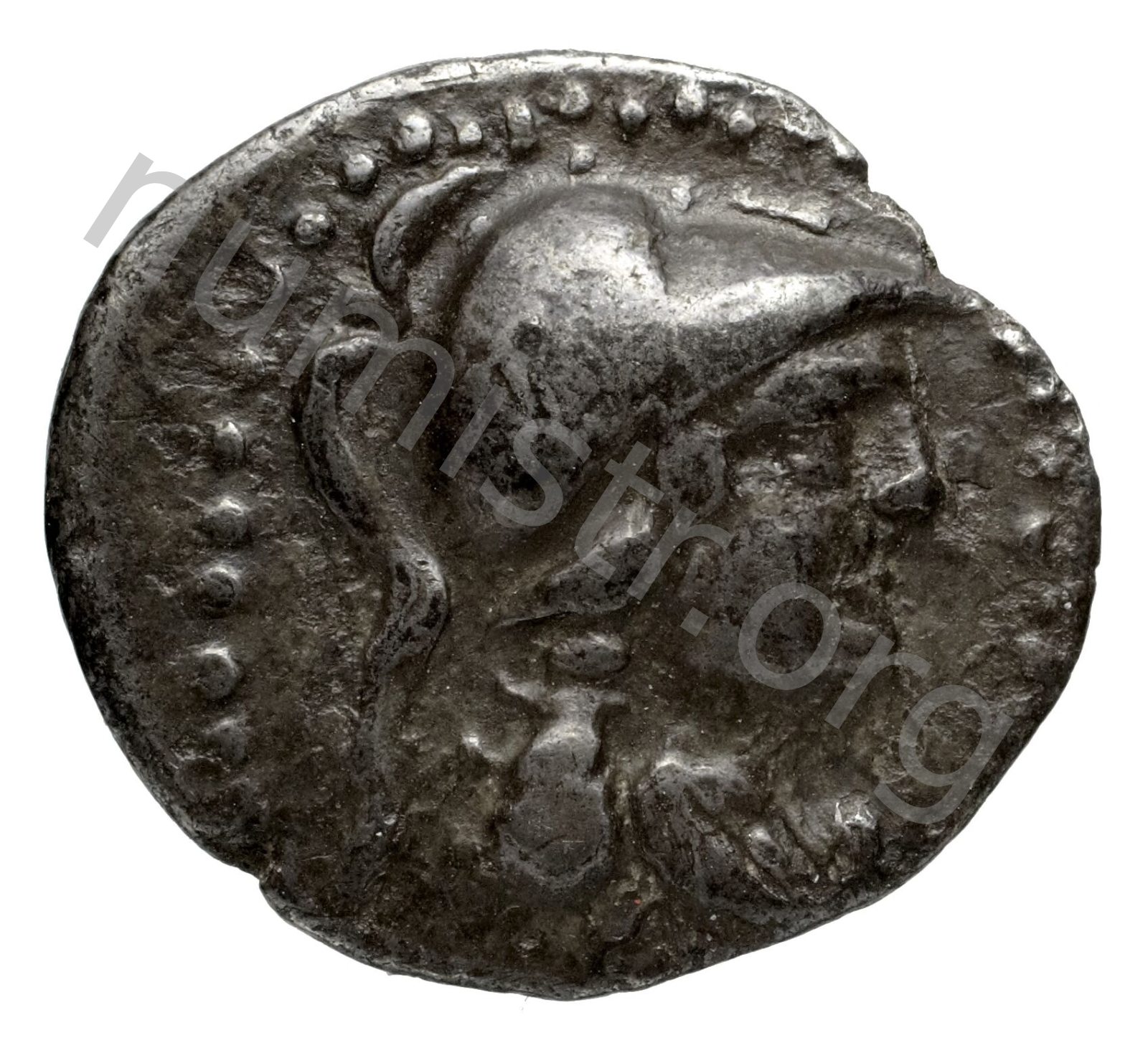 Head of Athena wearing a crested Corinthian helmet -[en]