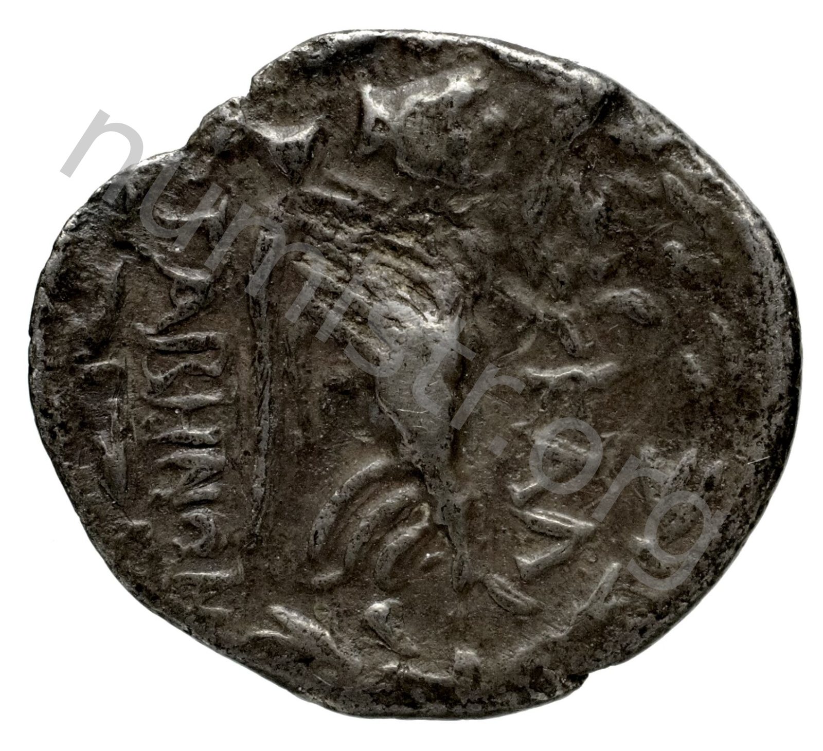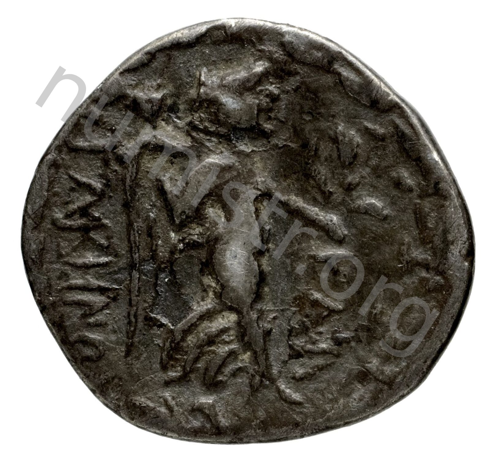 Nike advancing holding a wreath and a trophy over her shoulder -[en]