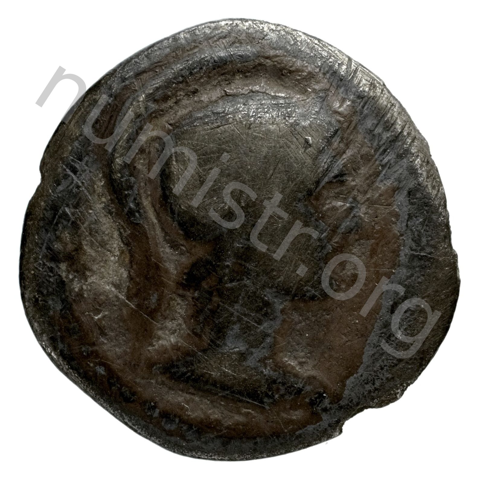 Head of Athena wearing a crested Corinthian helmet -[en]