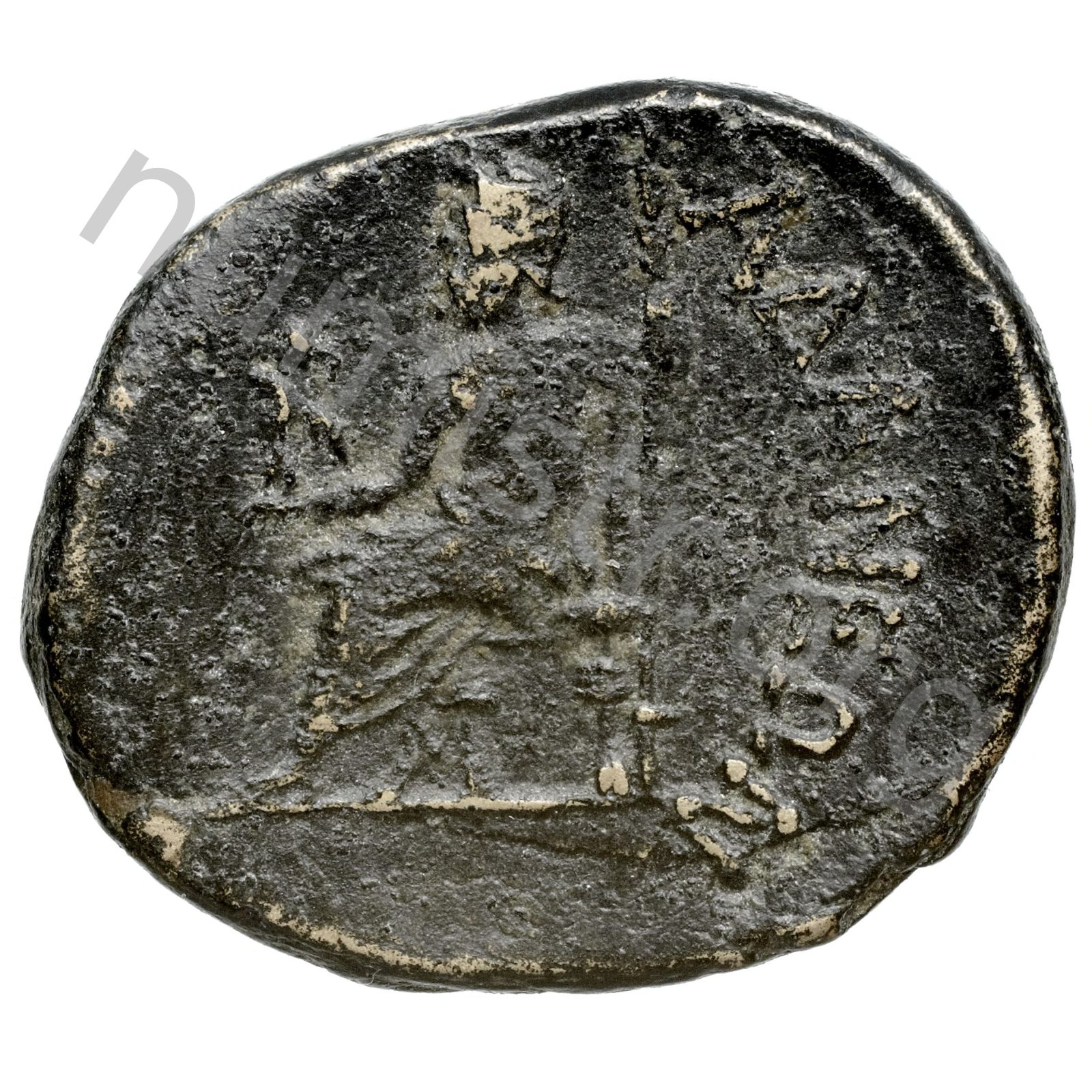 Zeus Nikephoros seated dressed in a chiton (tunic) holding a Nike and leaning on a sceptre -[en]