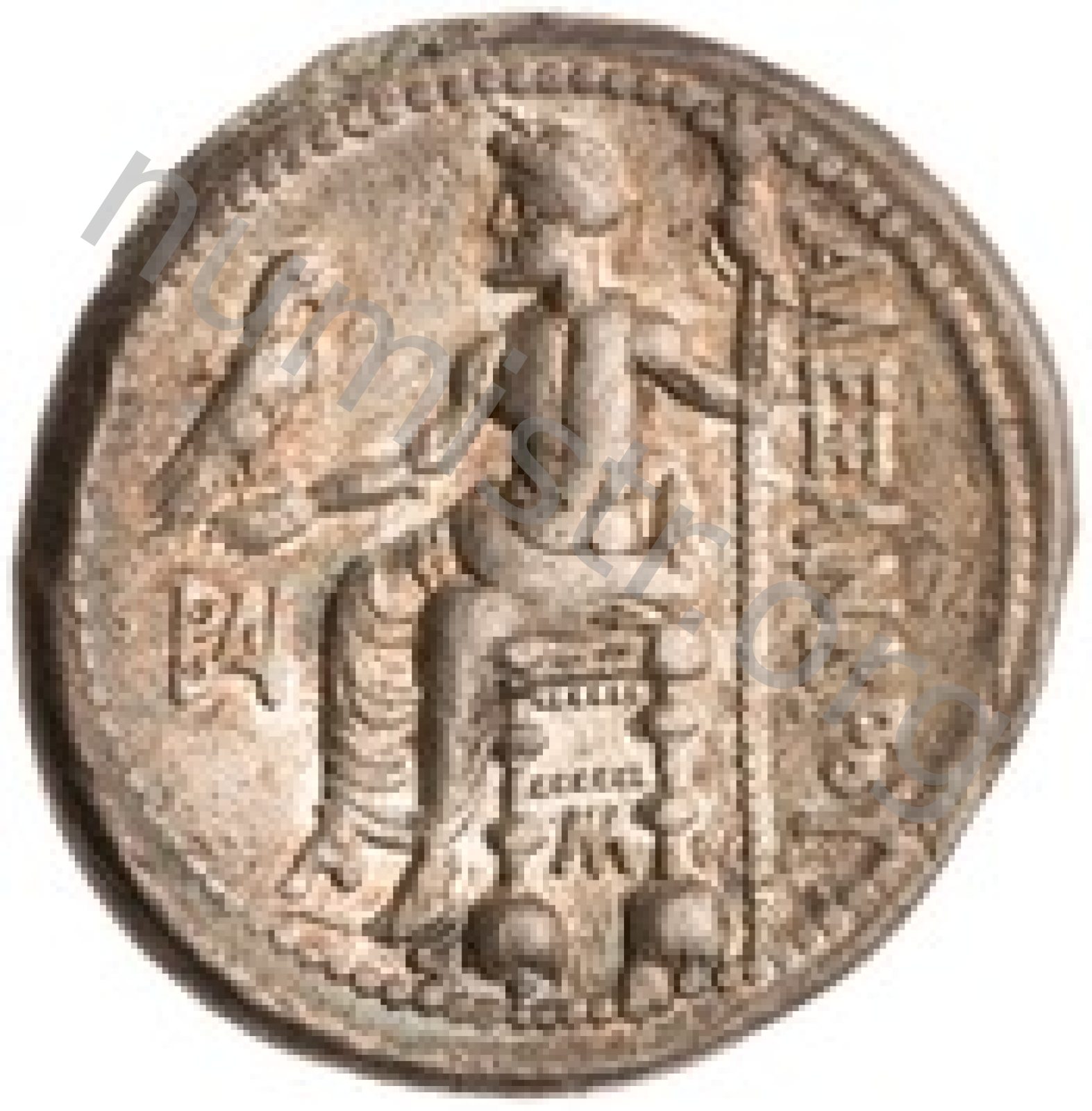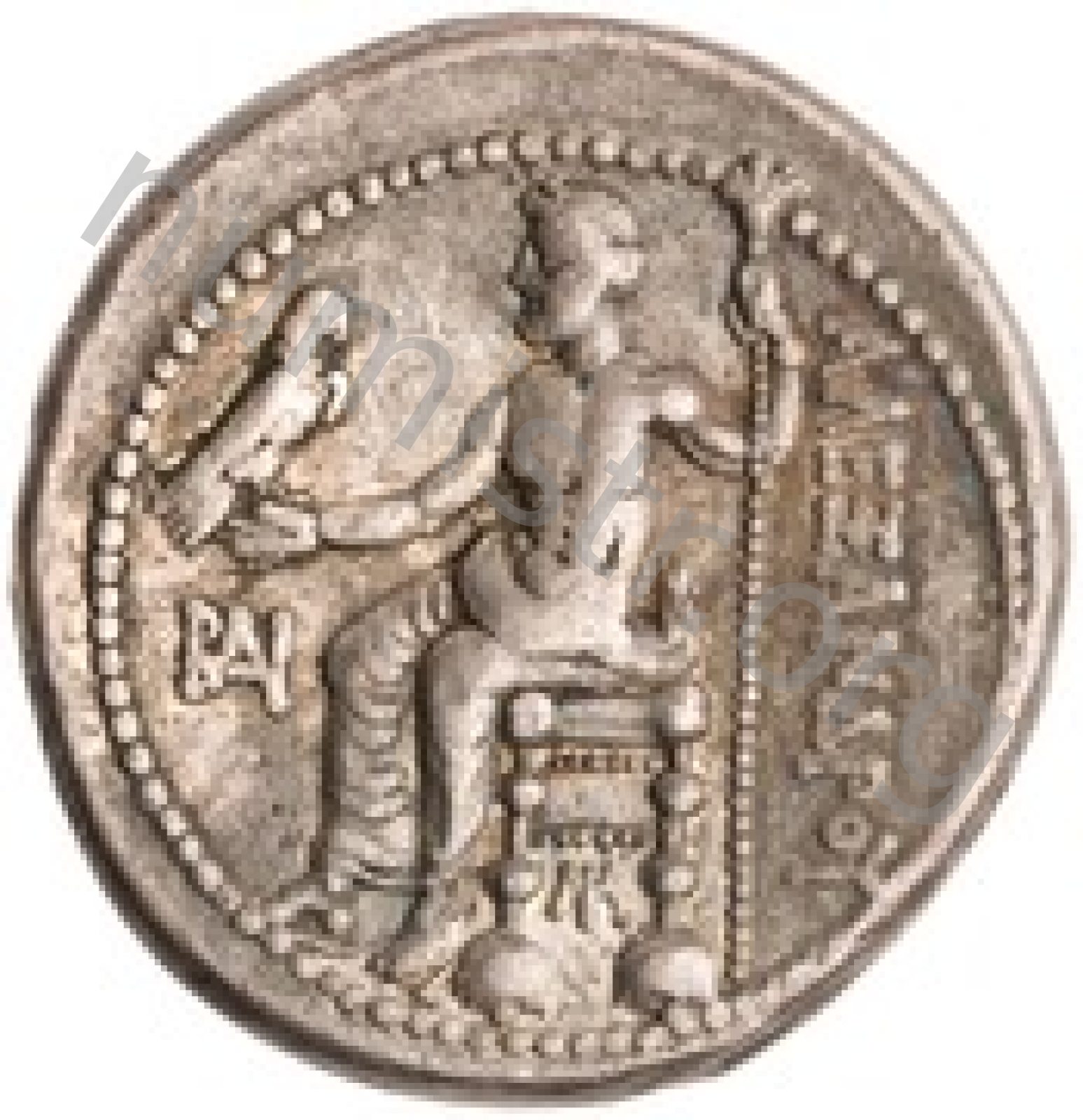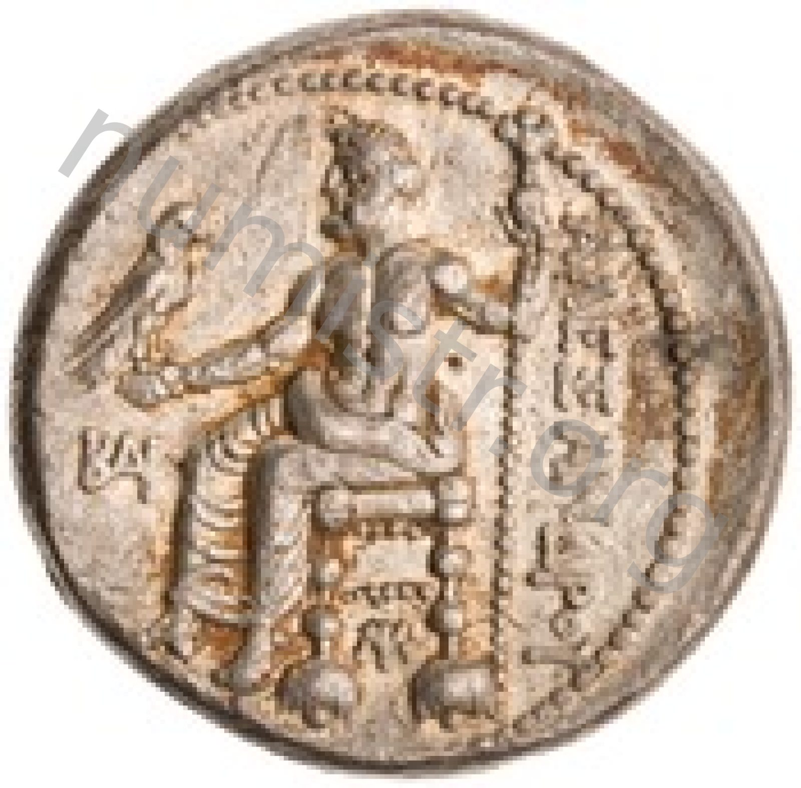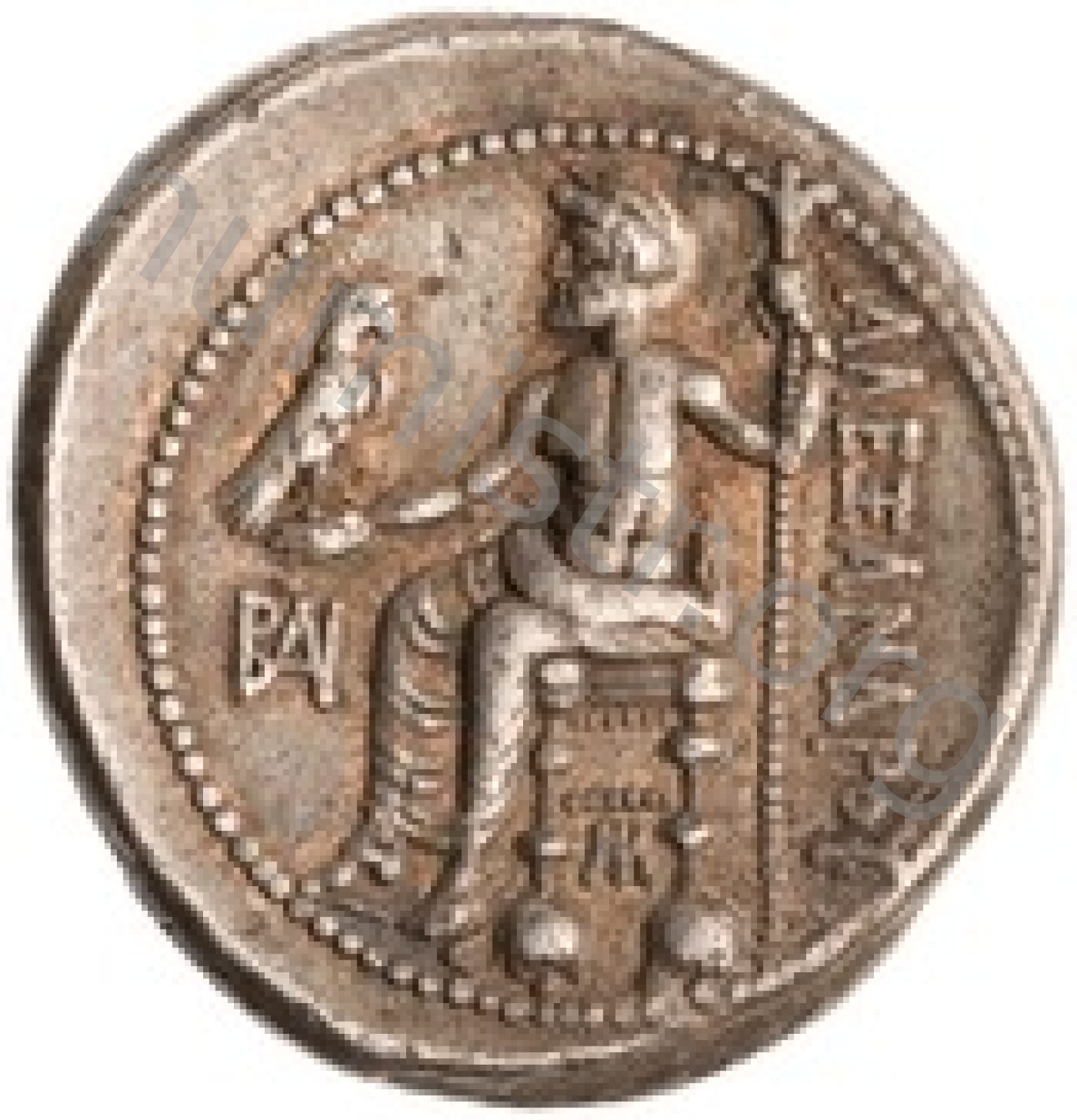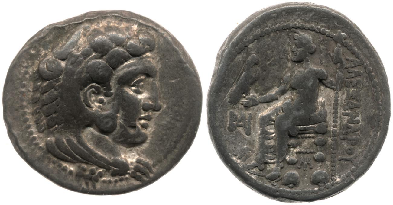 Head of beardless Heracles right wearing lion skin headdress -[en]