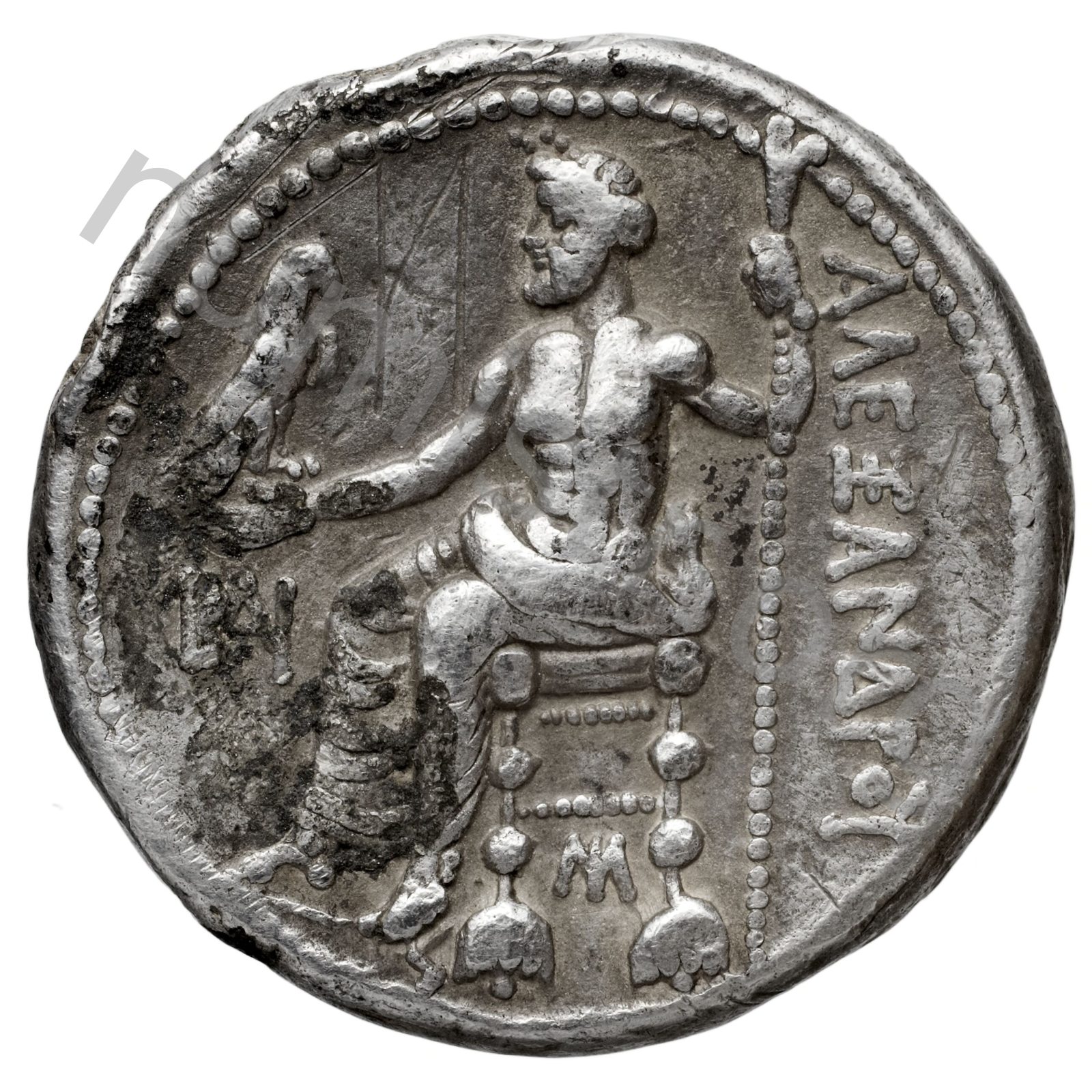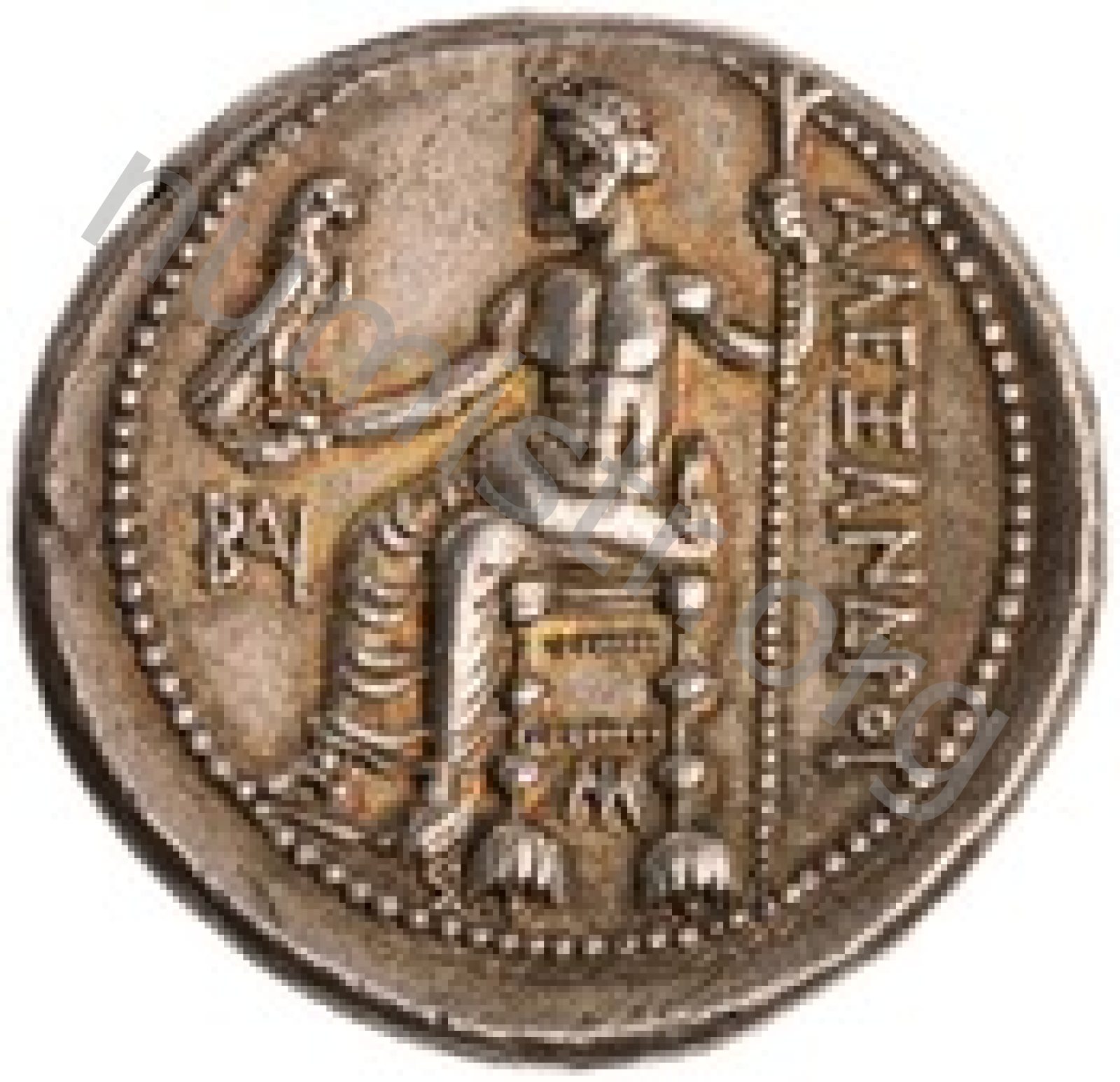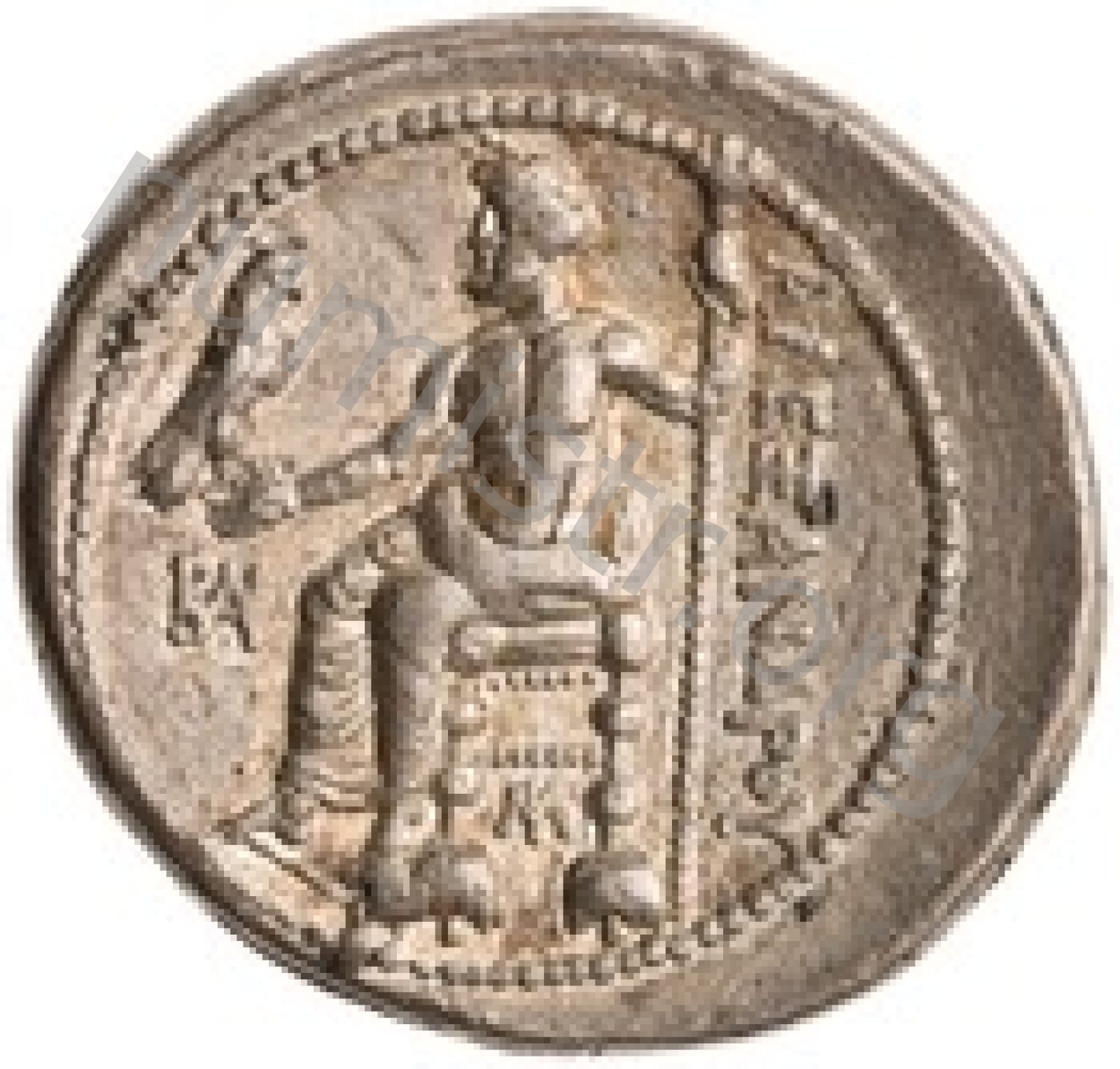 Zeus tabure-tahtta oturuyor sol elinde kartal sağ elinde asa var.
