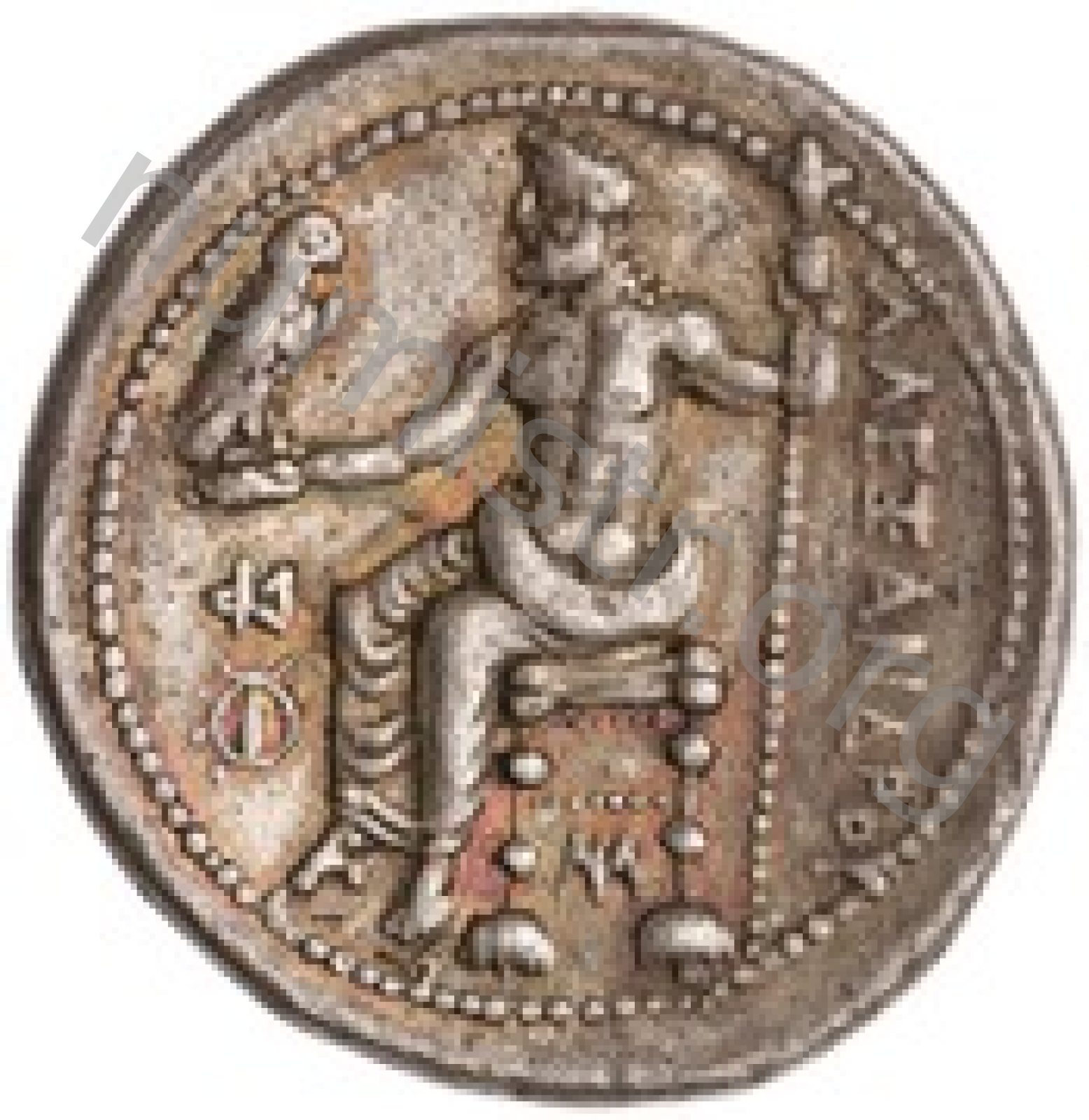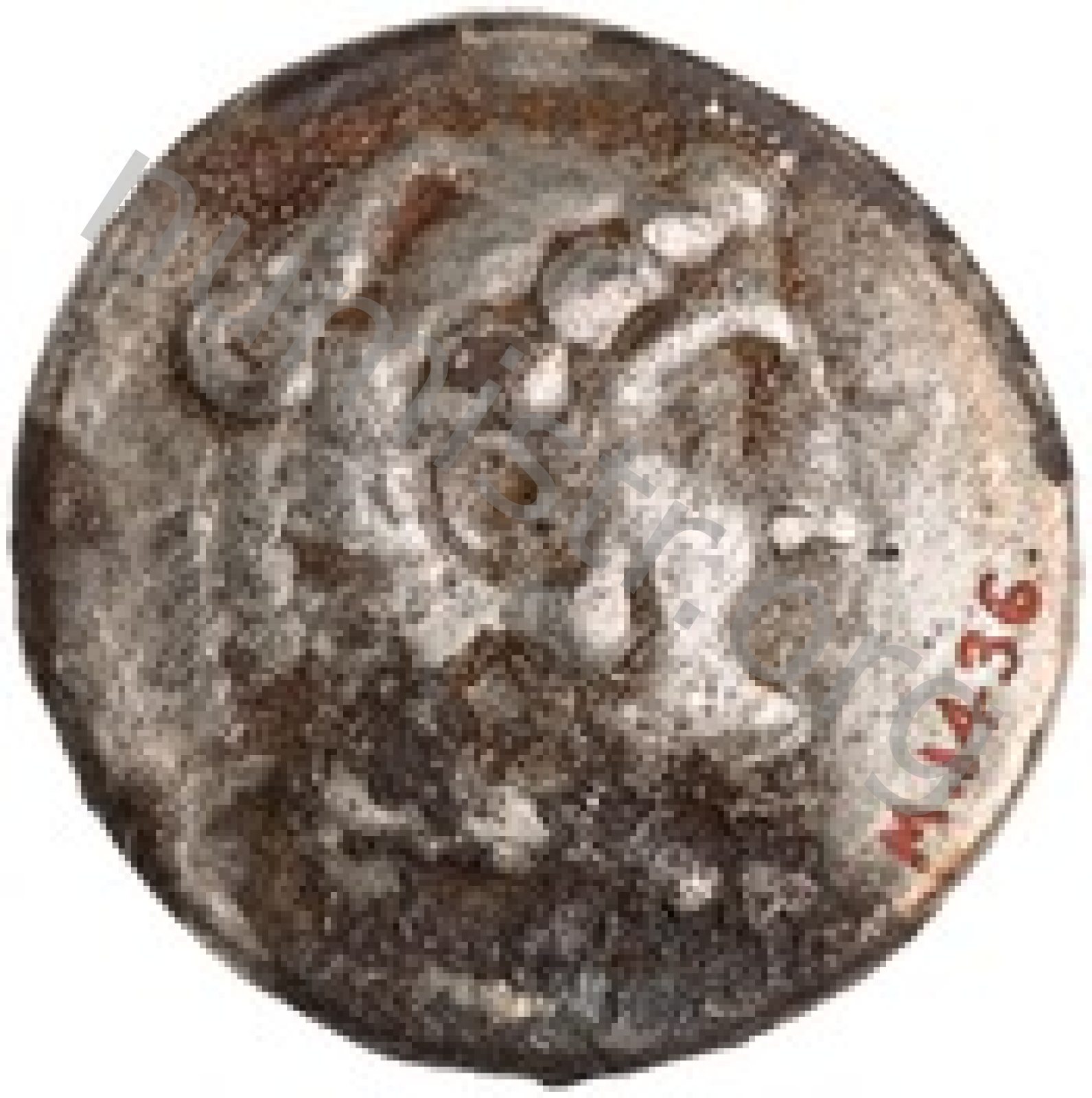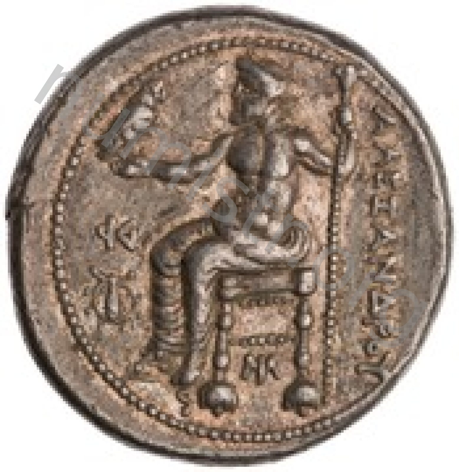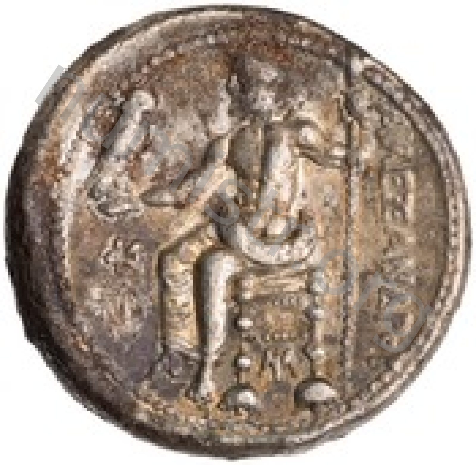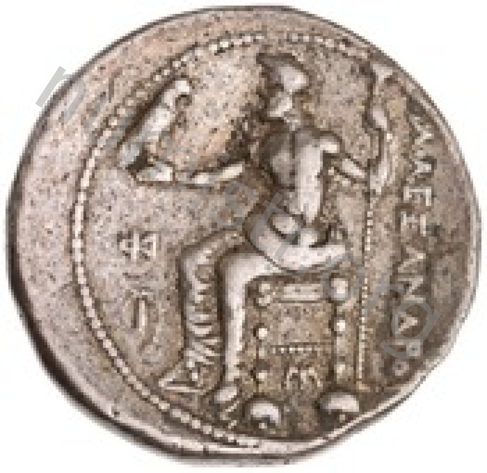 Head of beardless Heracles right wearing lion skin headdress -[en]