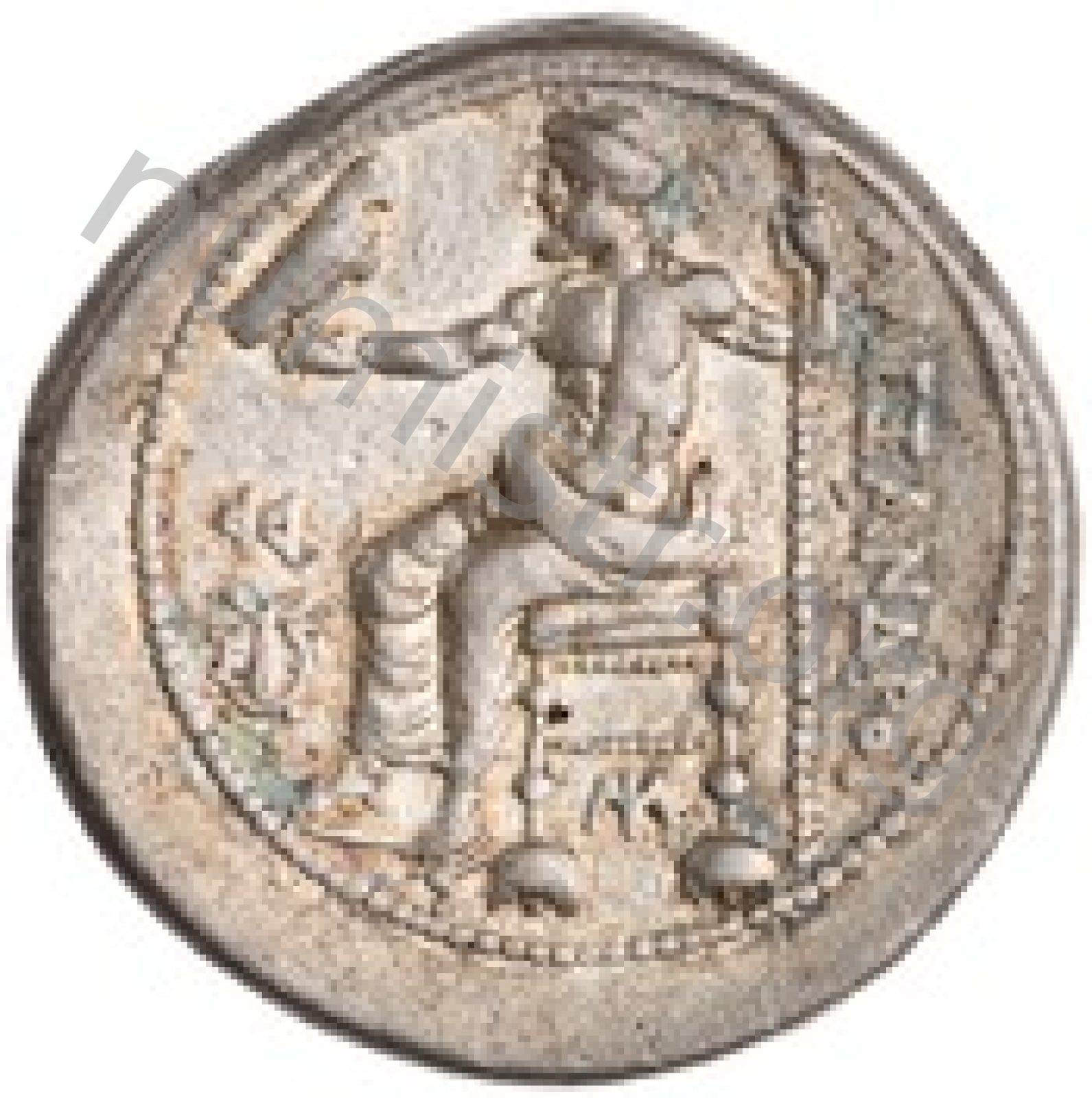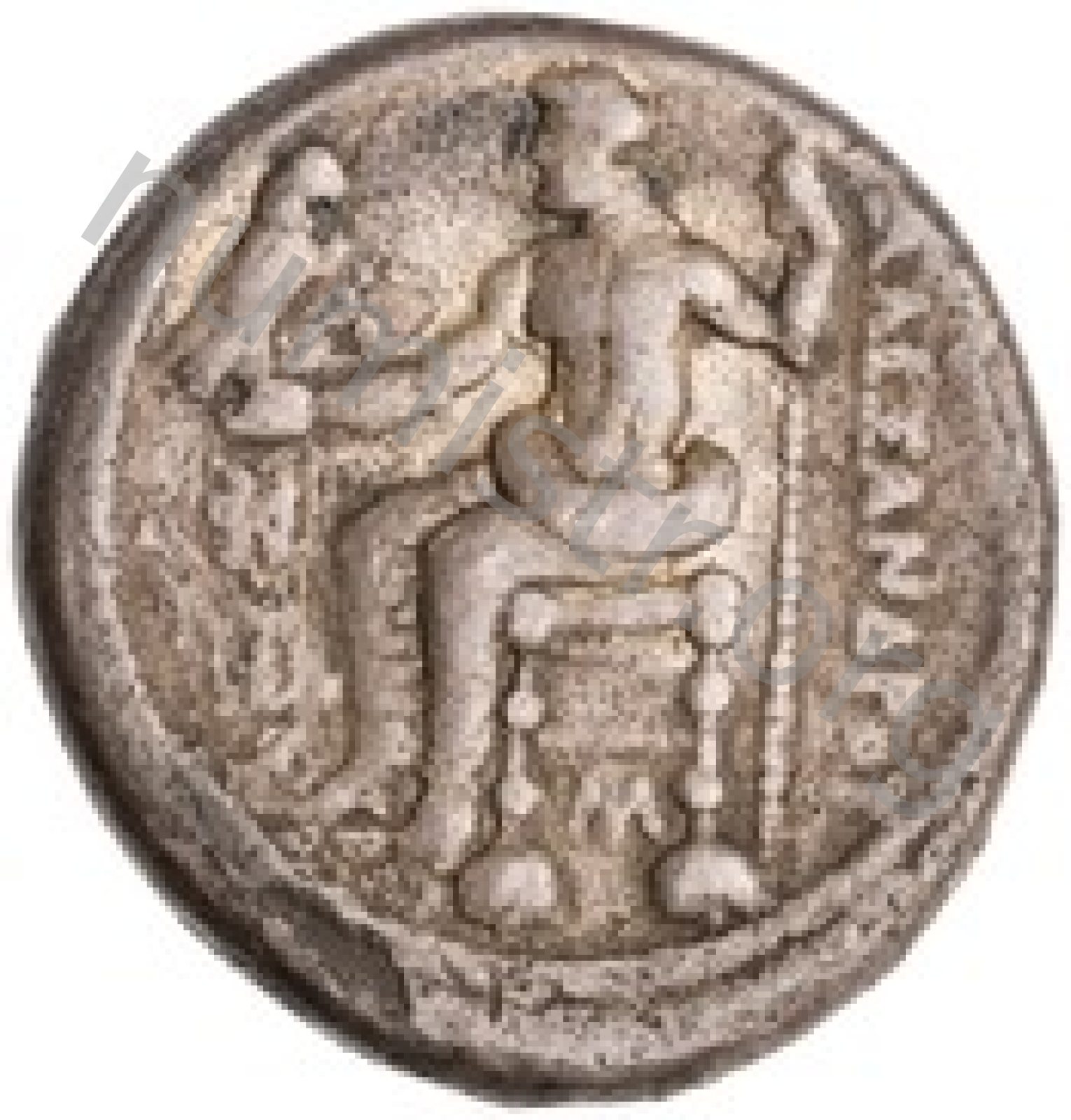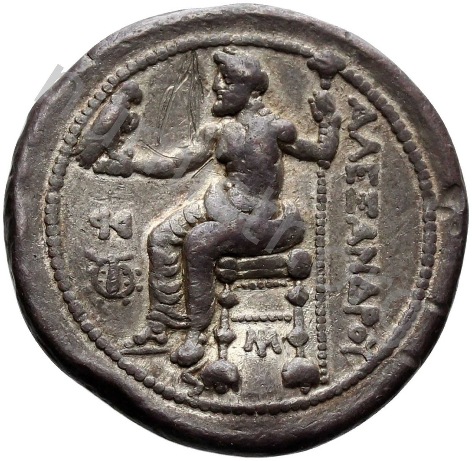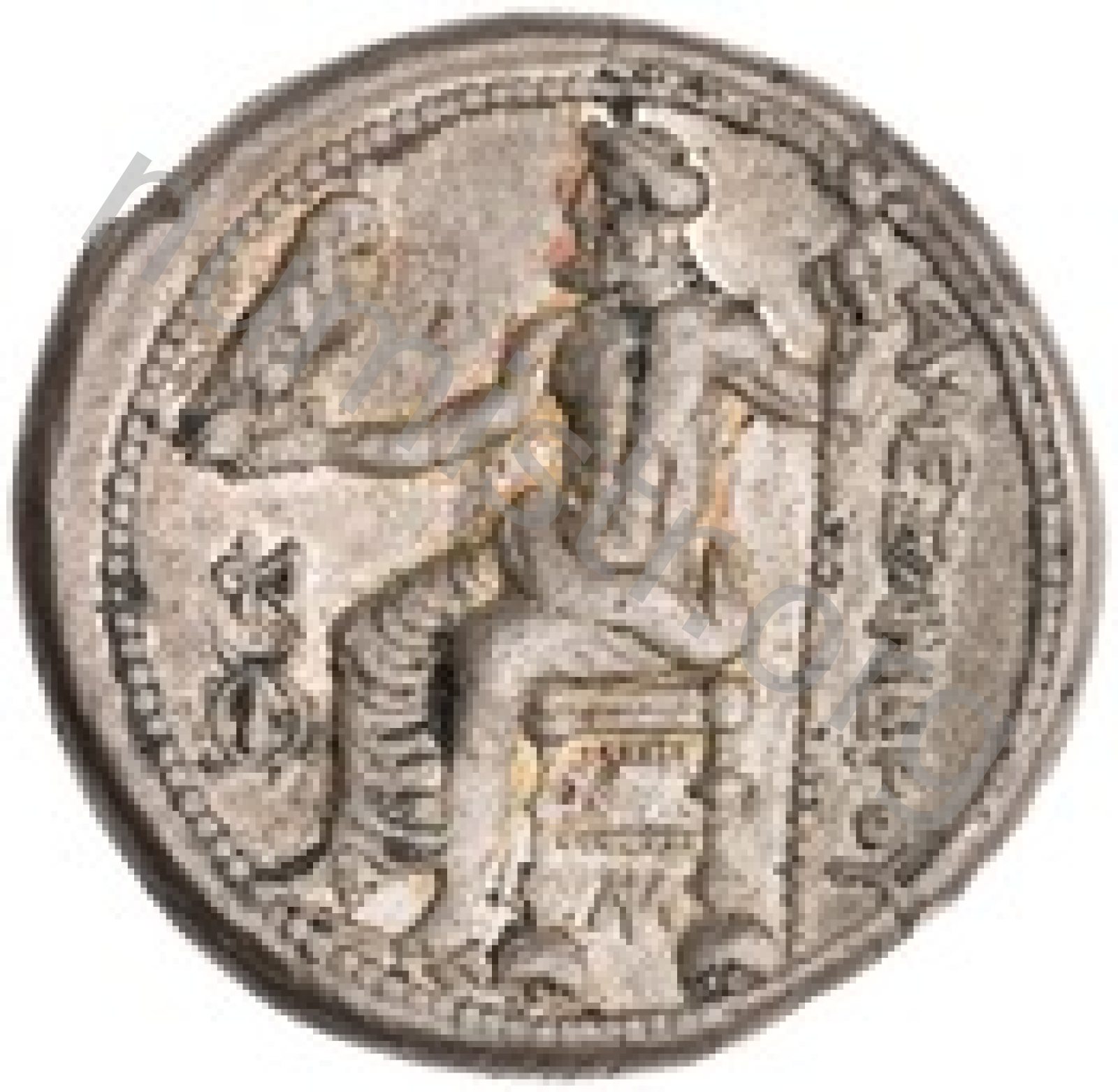 Zeus tabure-tahtta oturuyor sol elinde kartal sağ elinde asa var.