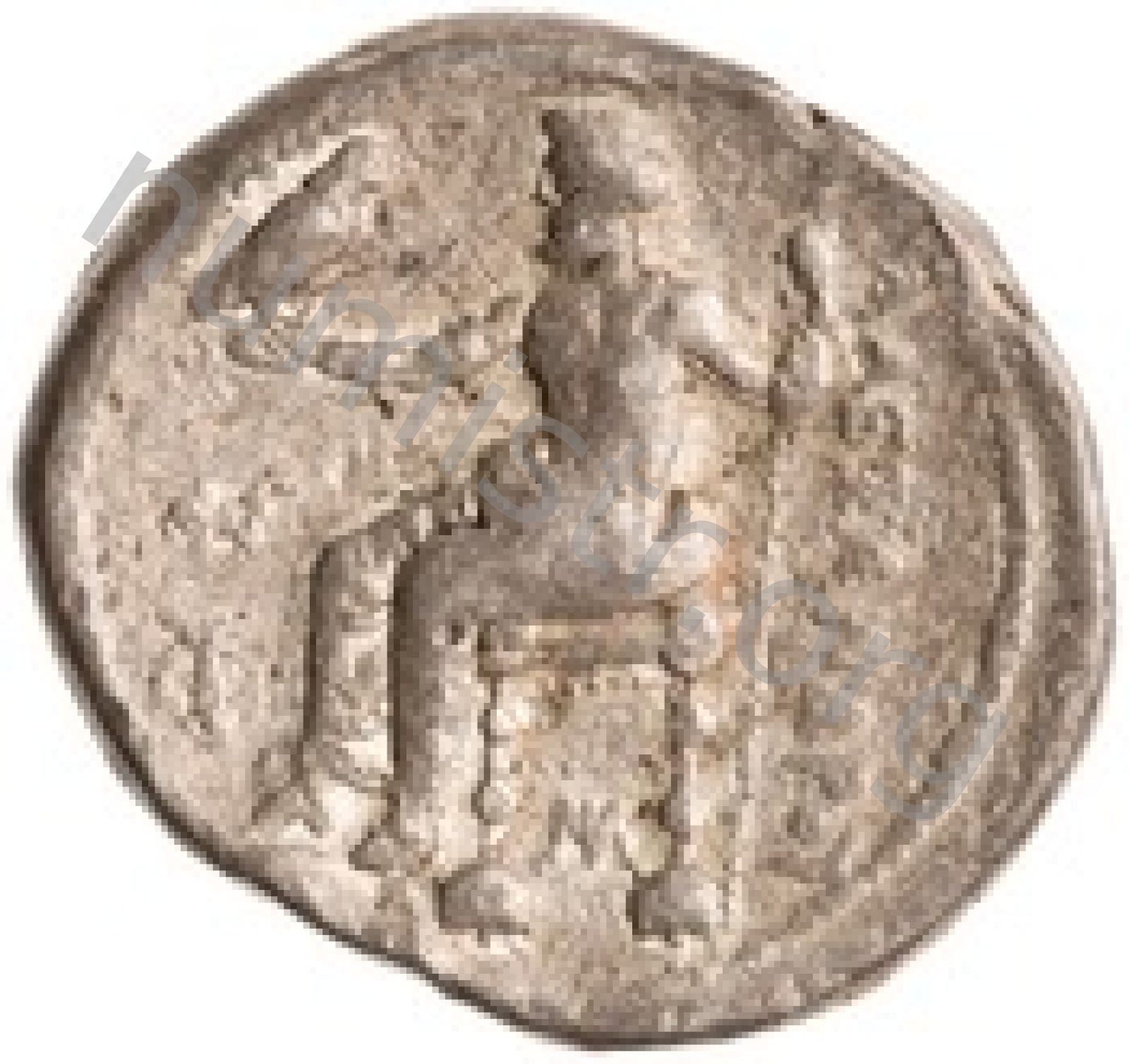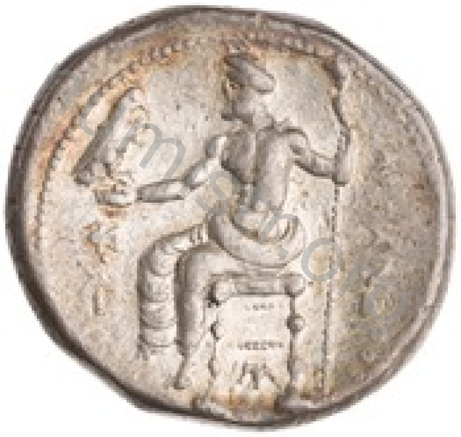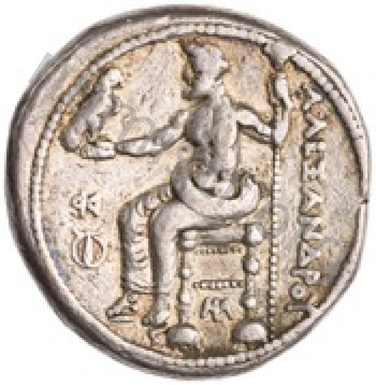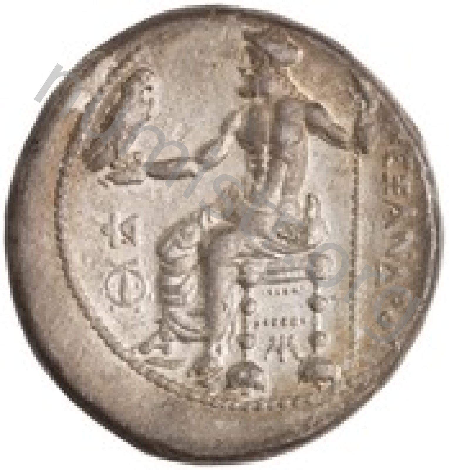 Zeus tabure-tahtta oturuyor sol elinde kartal sağ elinde asa var.