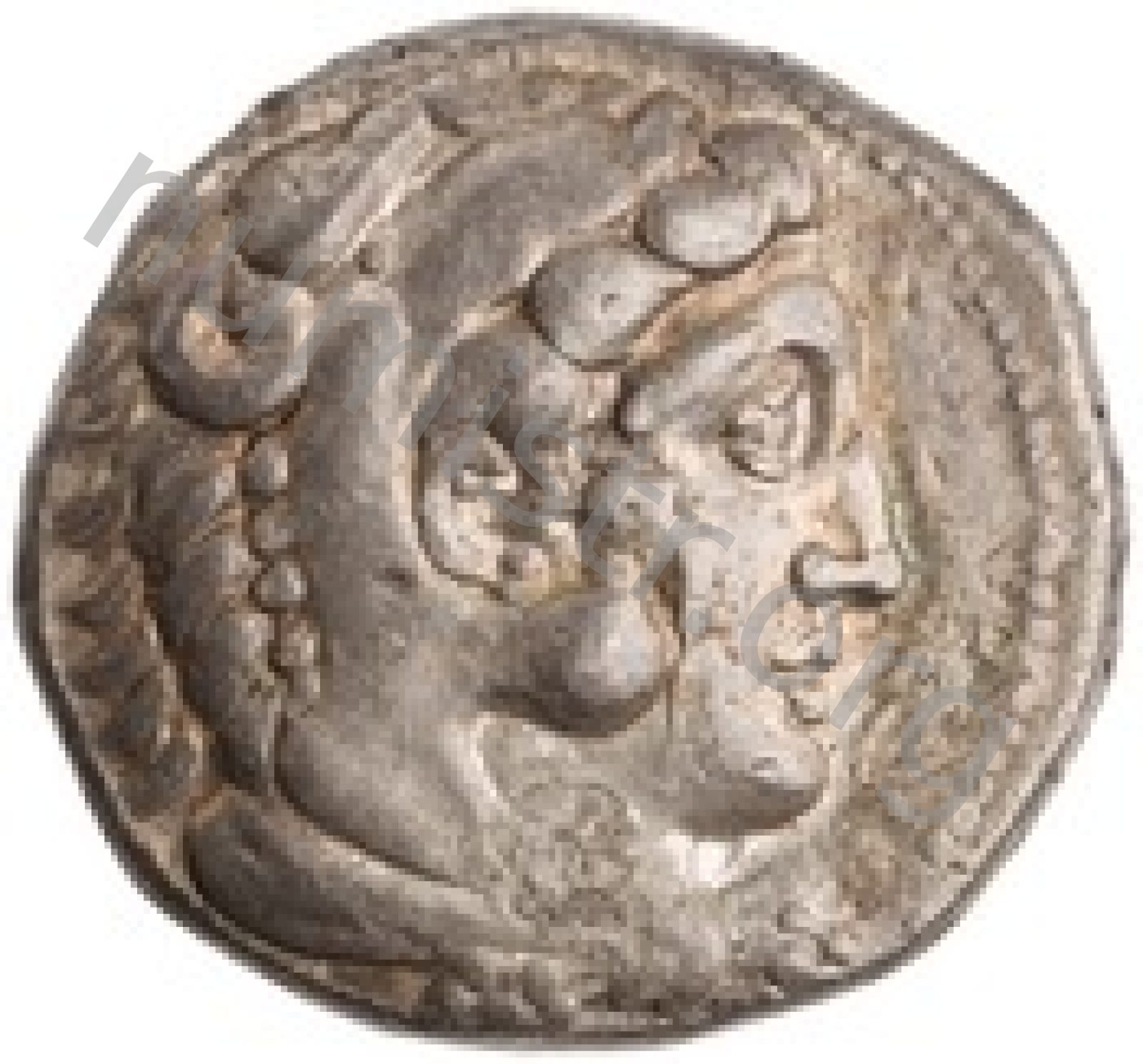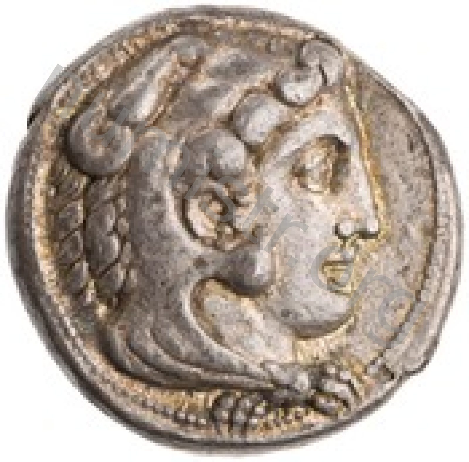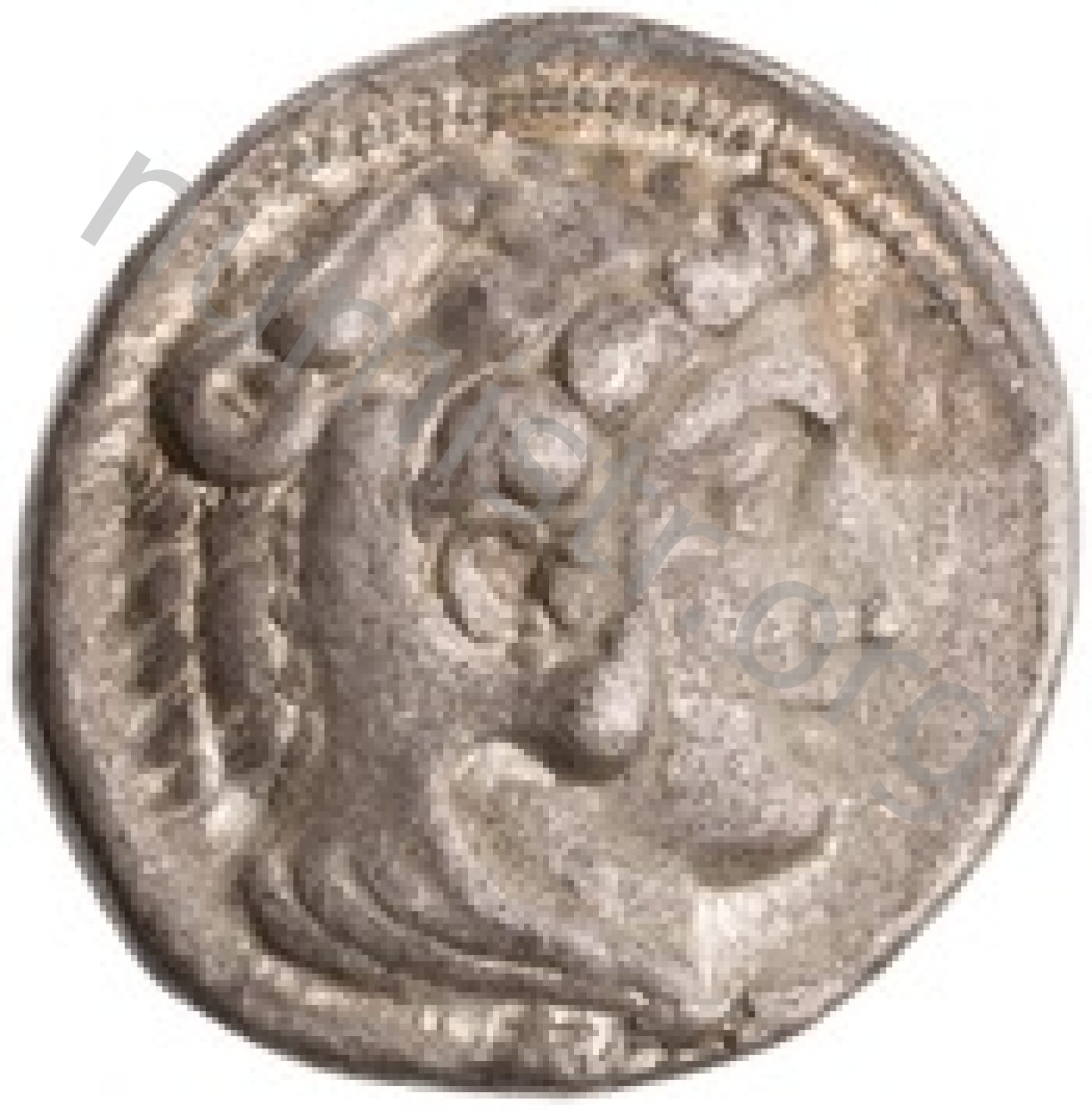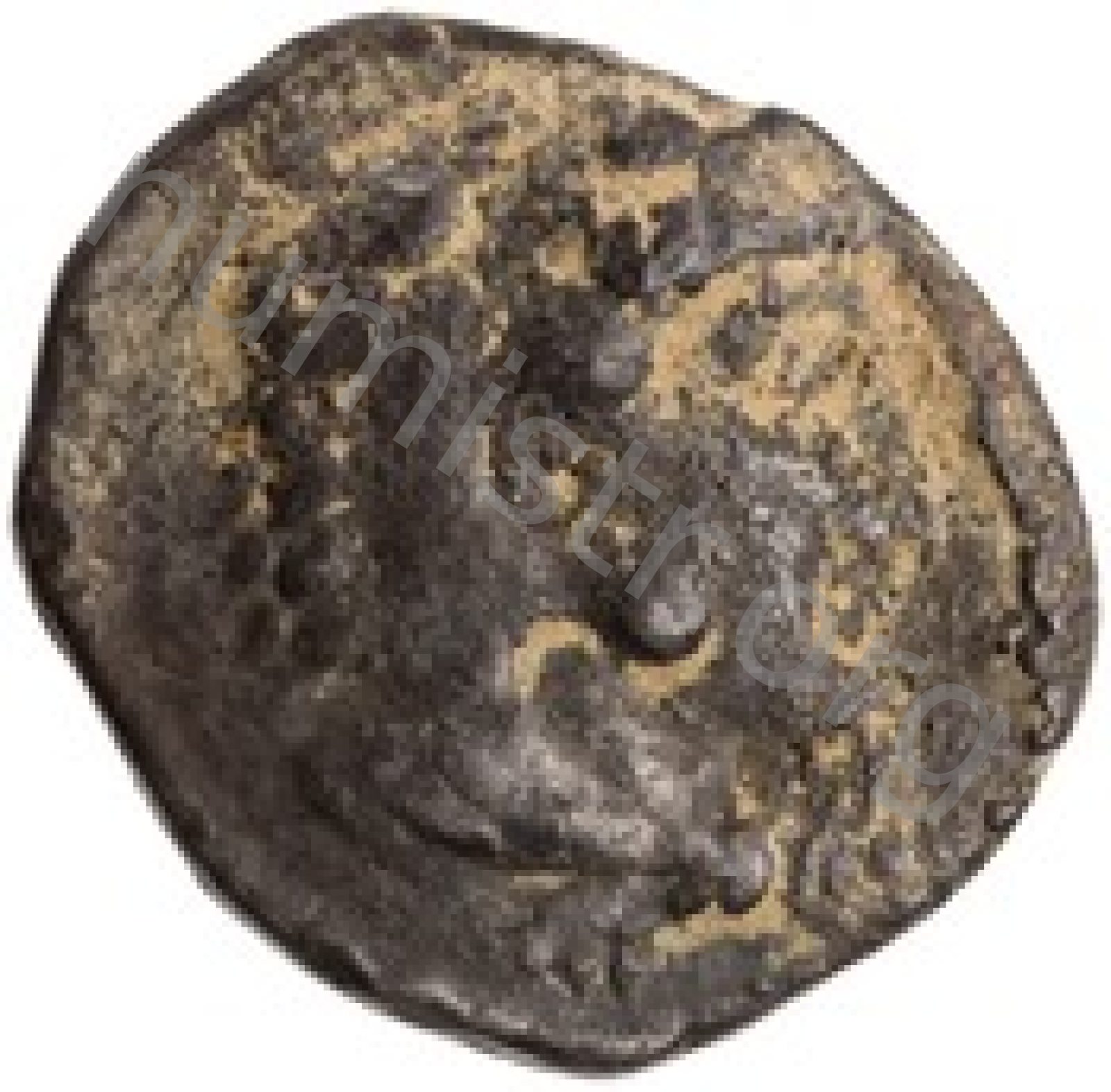 Head of beardless Heracles right wearing lion skin headdress -[en]